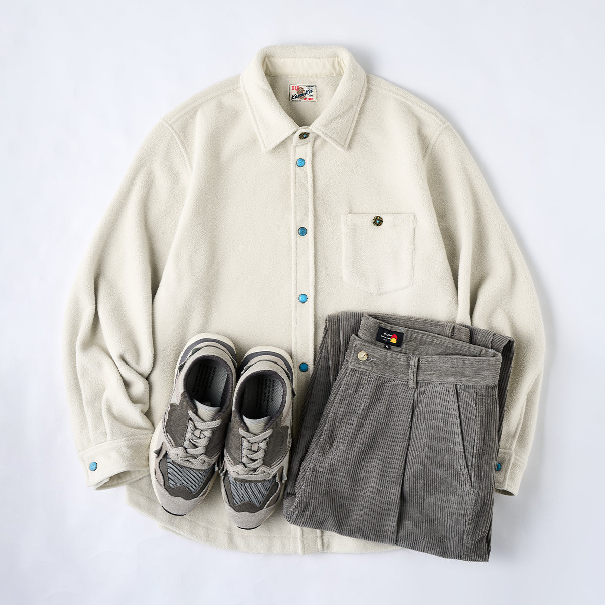 【사전예약】「STAY TRUE」자수 와펜 코듀로이 배색 안감 플리스 스트라이프 셔츠