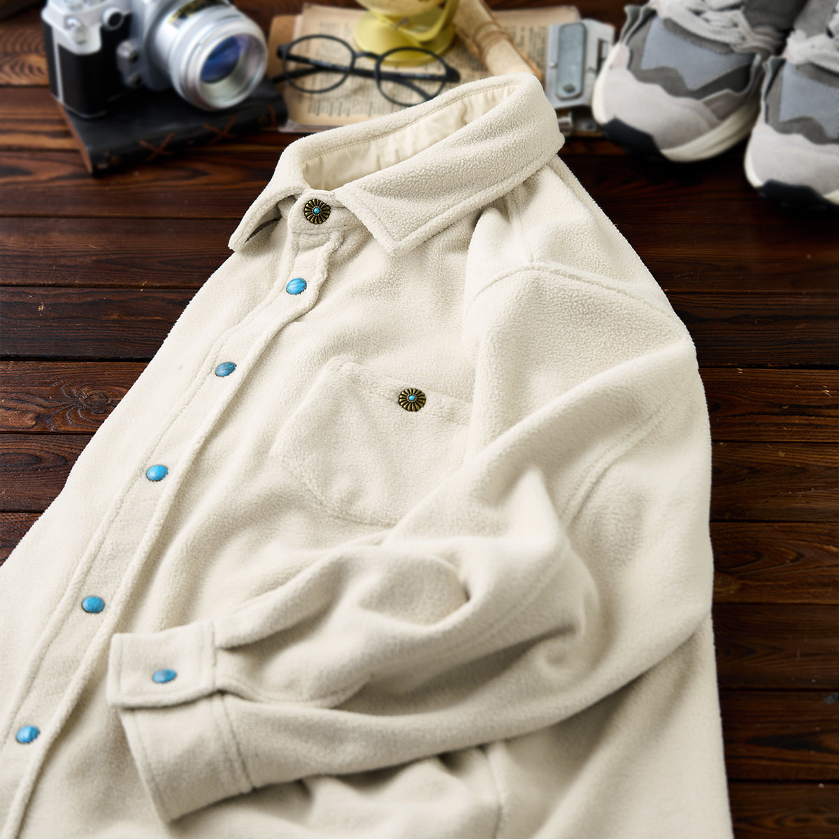 【사전예약】터키석 단추 양면 기모 플리스 긴팔 셔츠