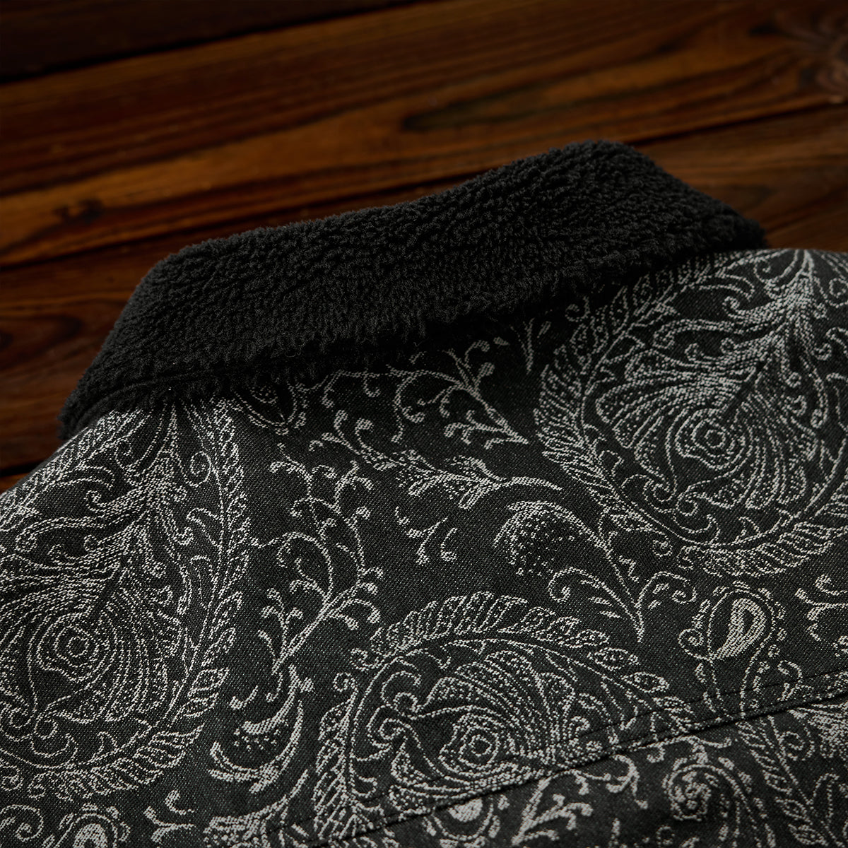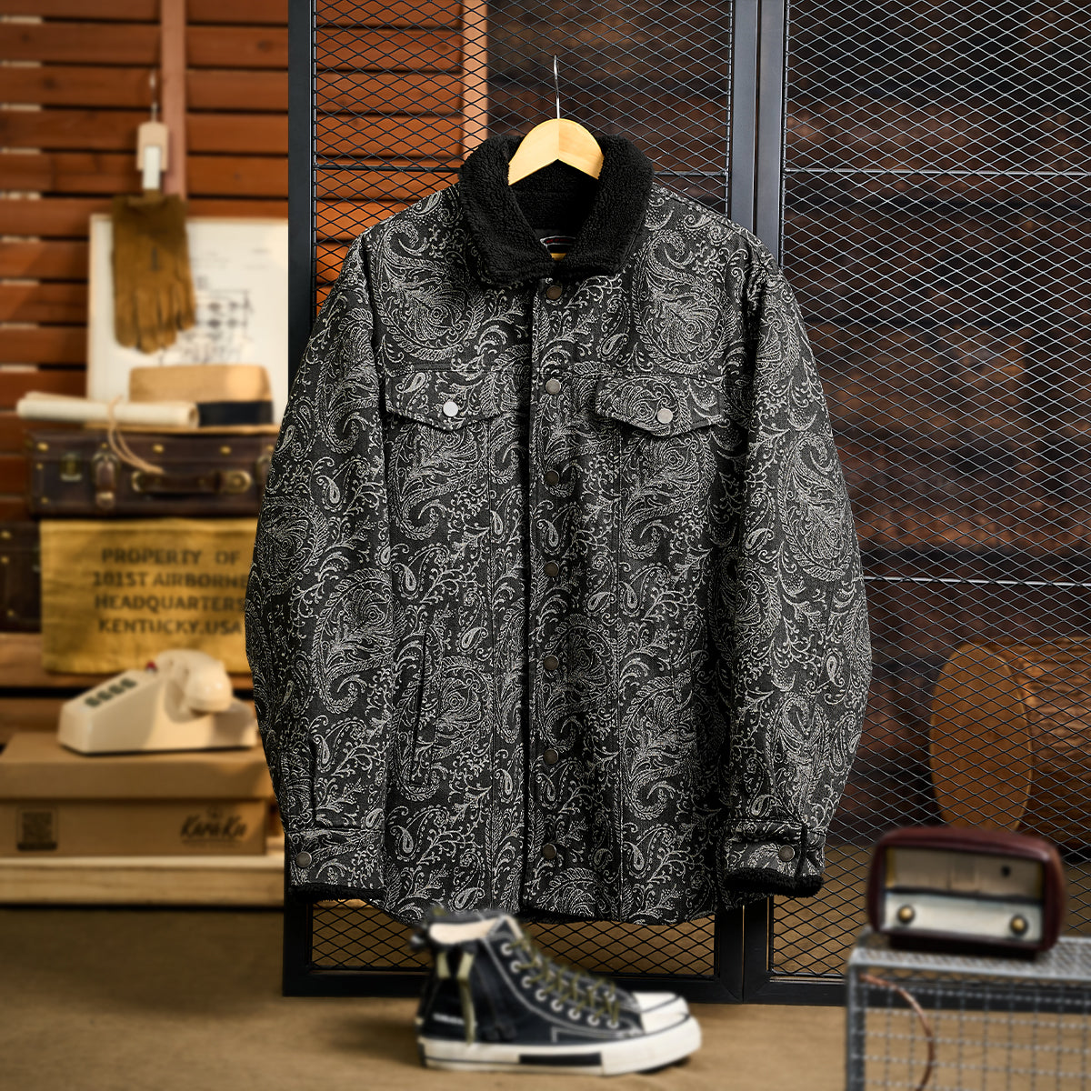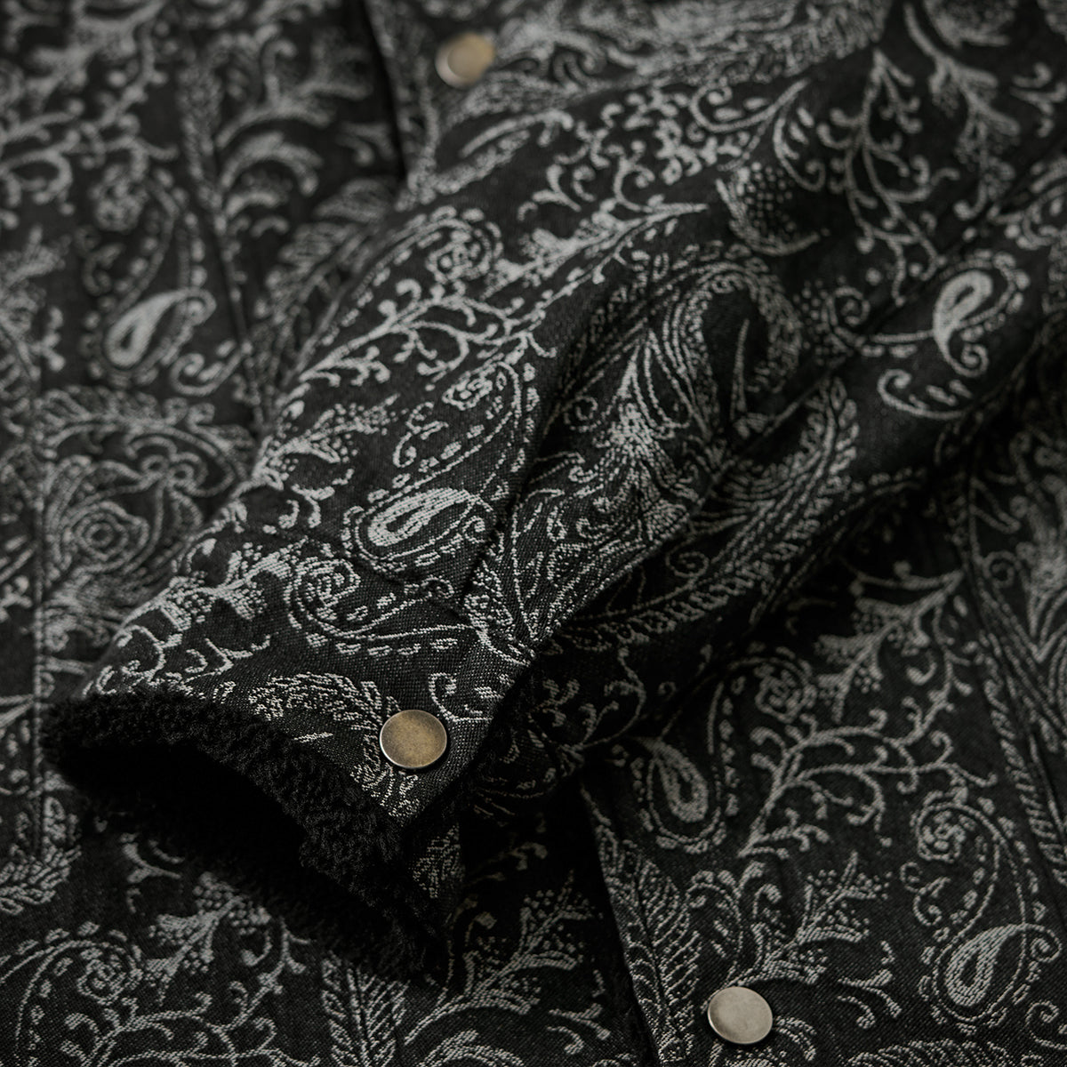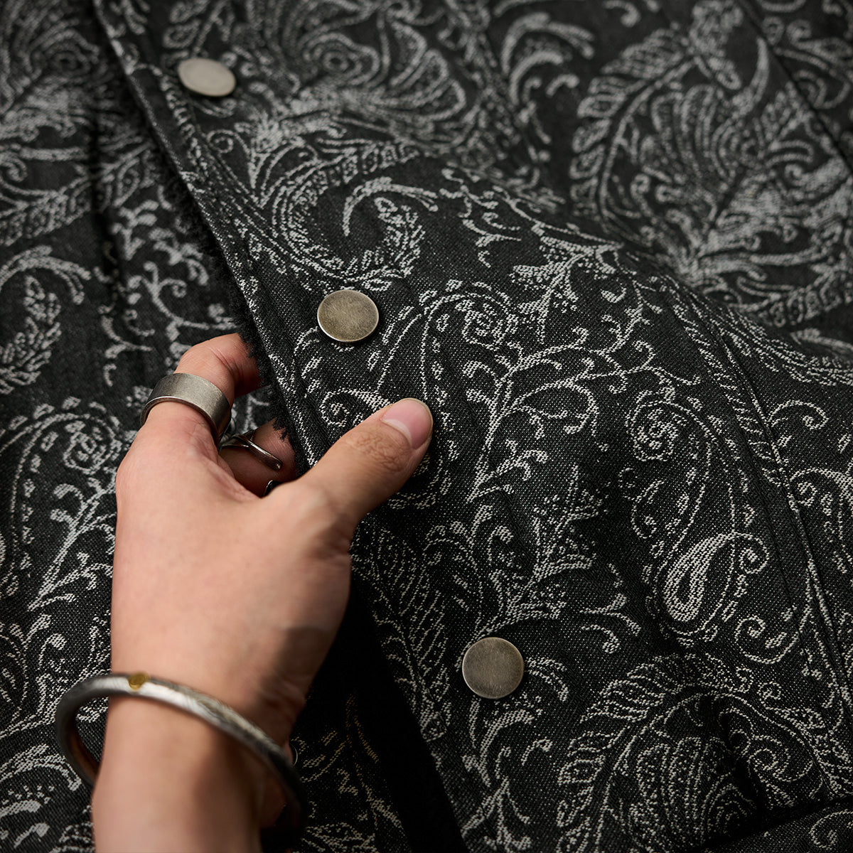 【사전예약】기모 안감 자카드 페이즐리 올오버 패턴 데님 자켓