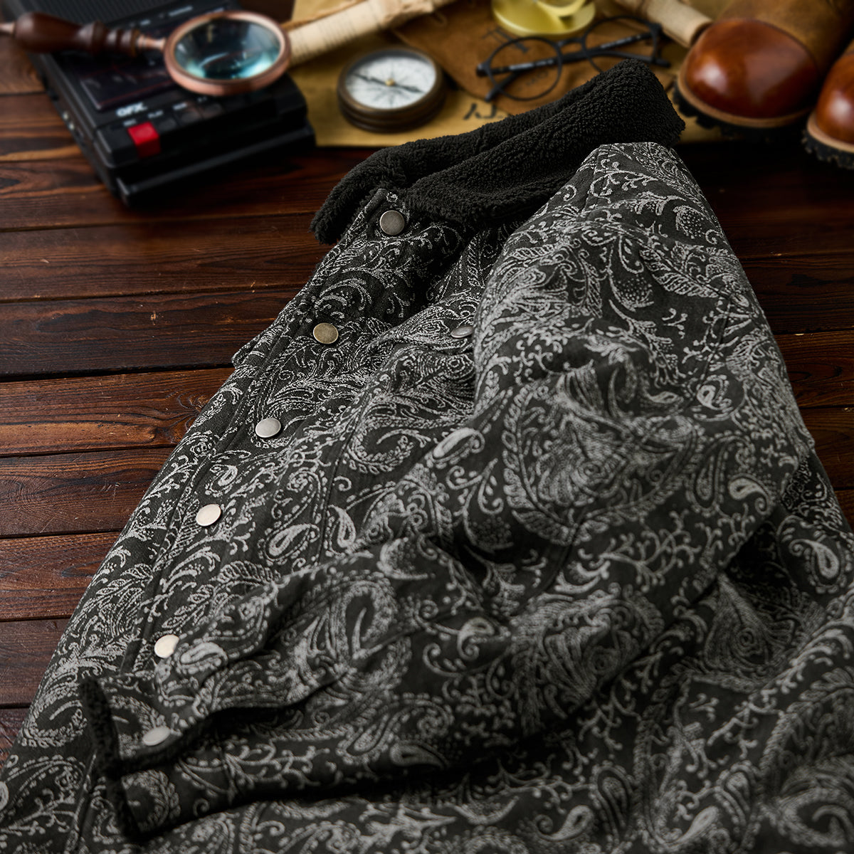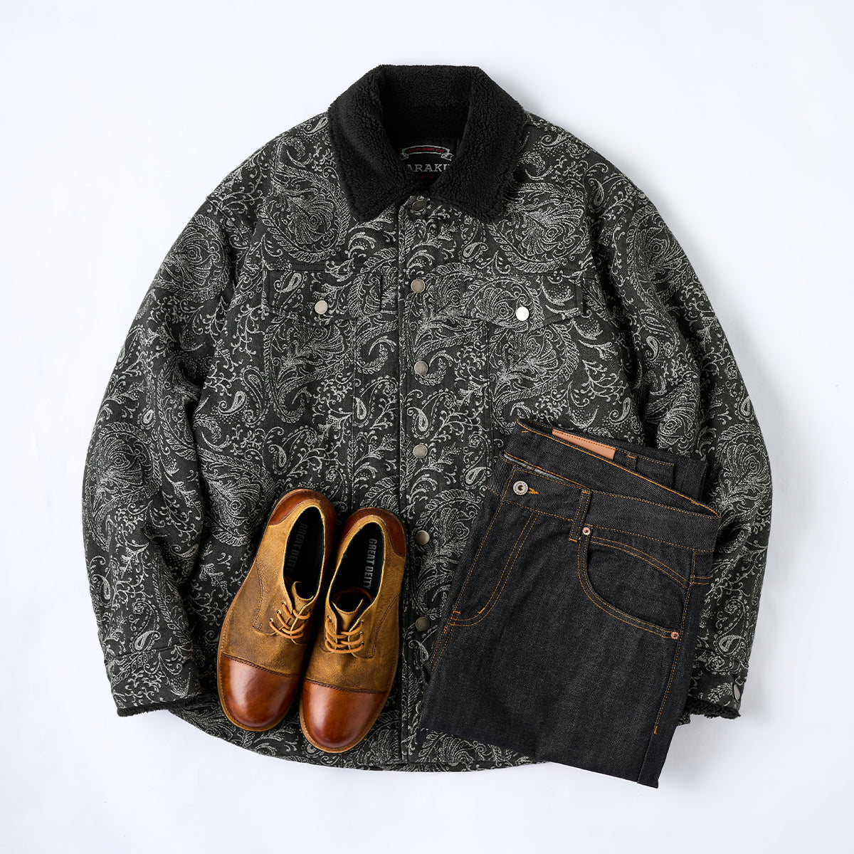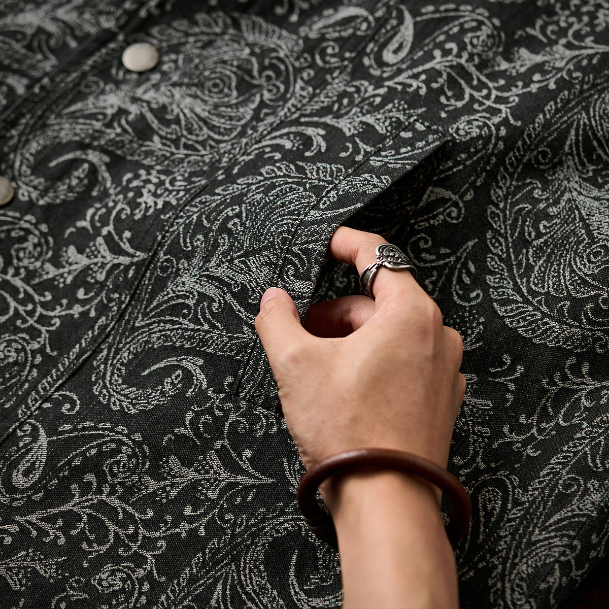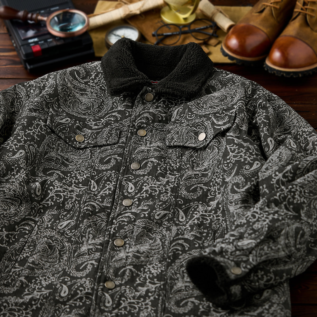 【사전예약】기모 안감 자카드 페이즐리 올오버 패턴 데님 자켓