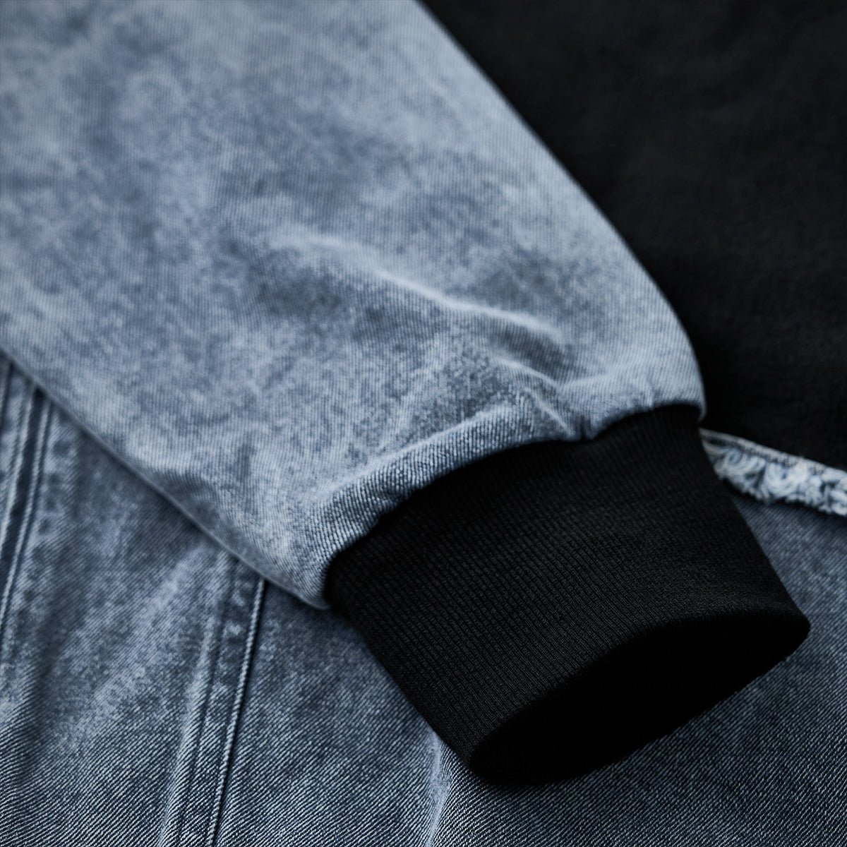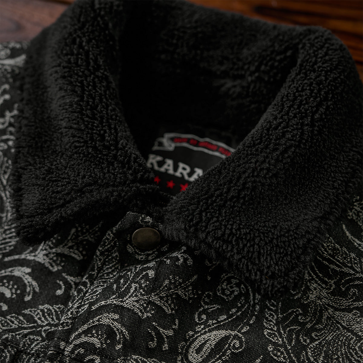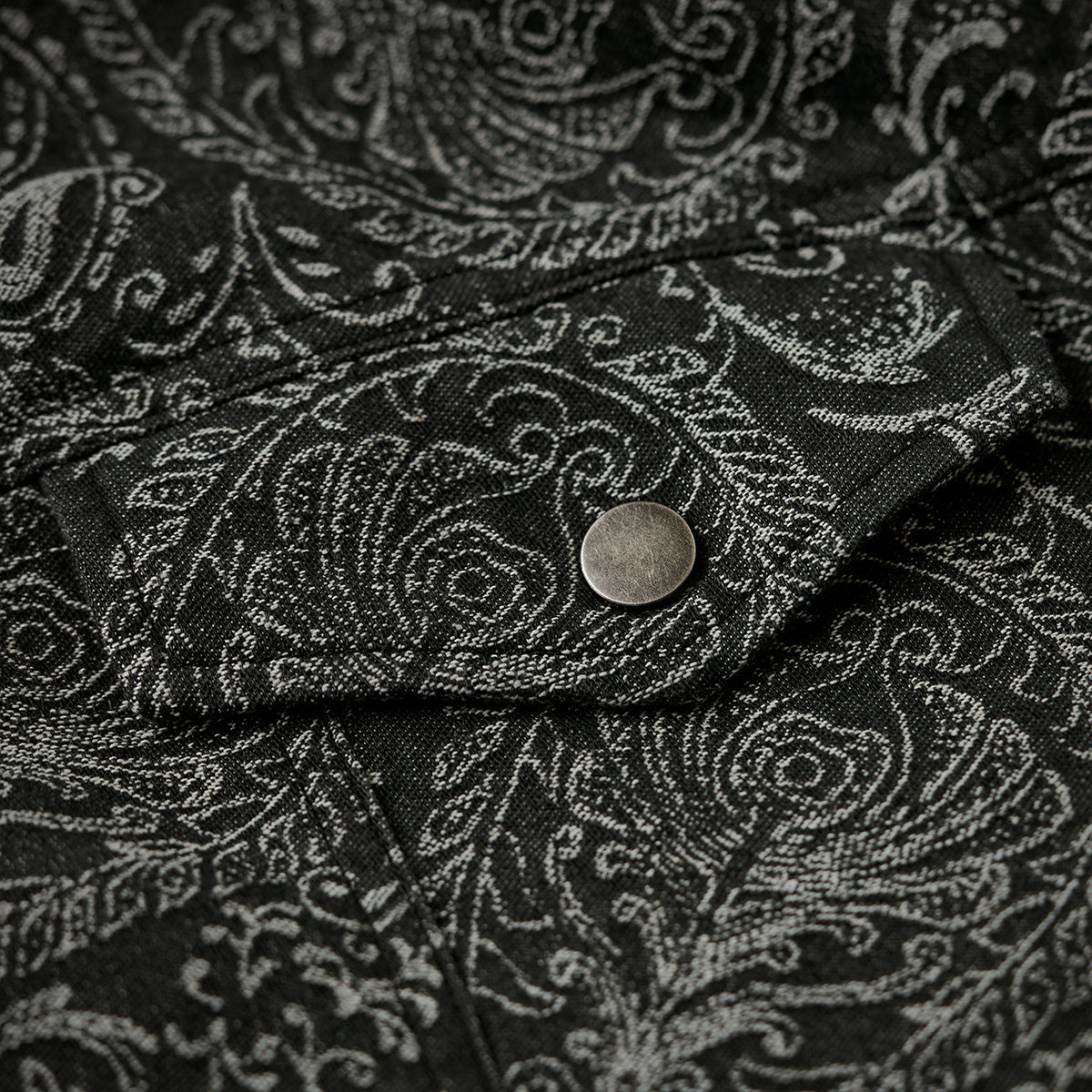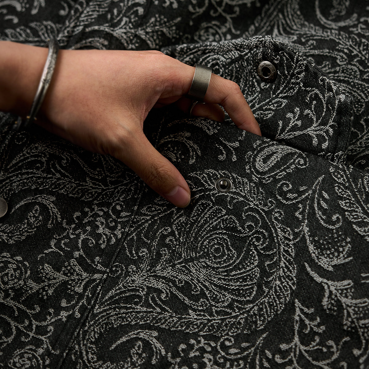 【사전예약】기모 안감 자카드 페이즐리 올오버 패턴 데님 자켓