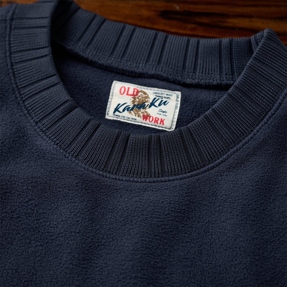 팔꿈치 스웨이드 패치 'KaraKu' 자수 후리스 와플 풀오버 스웨트셔츠