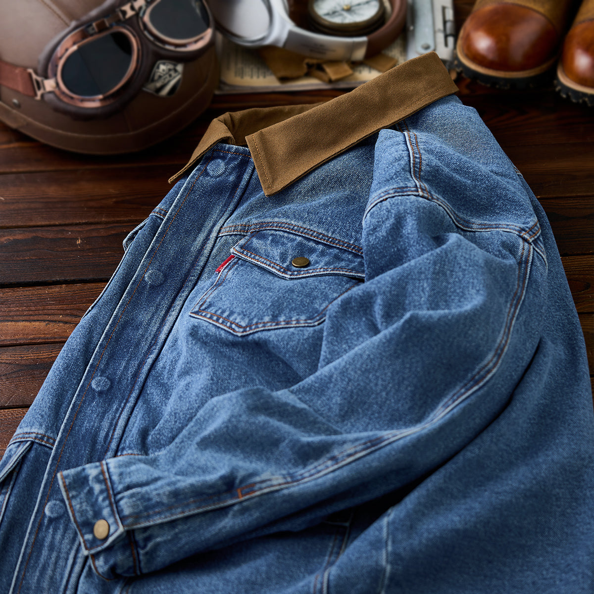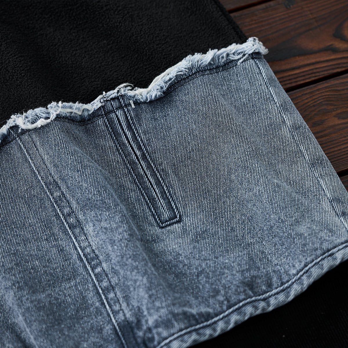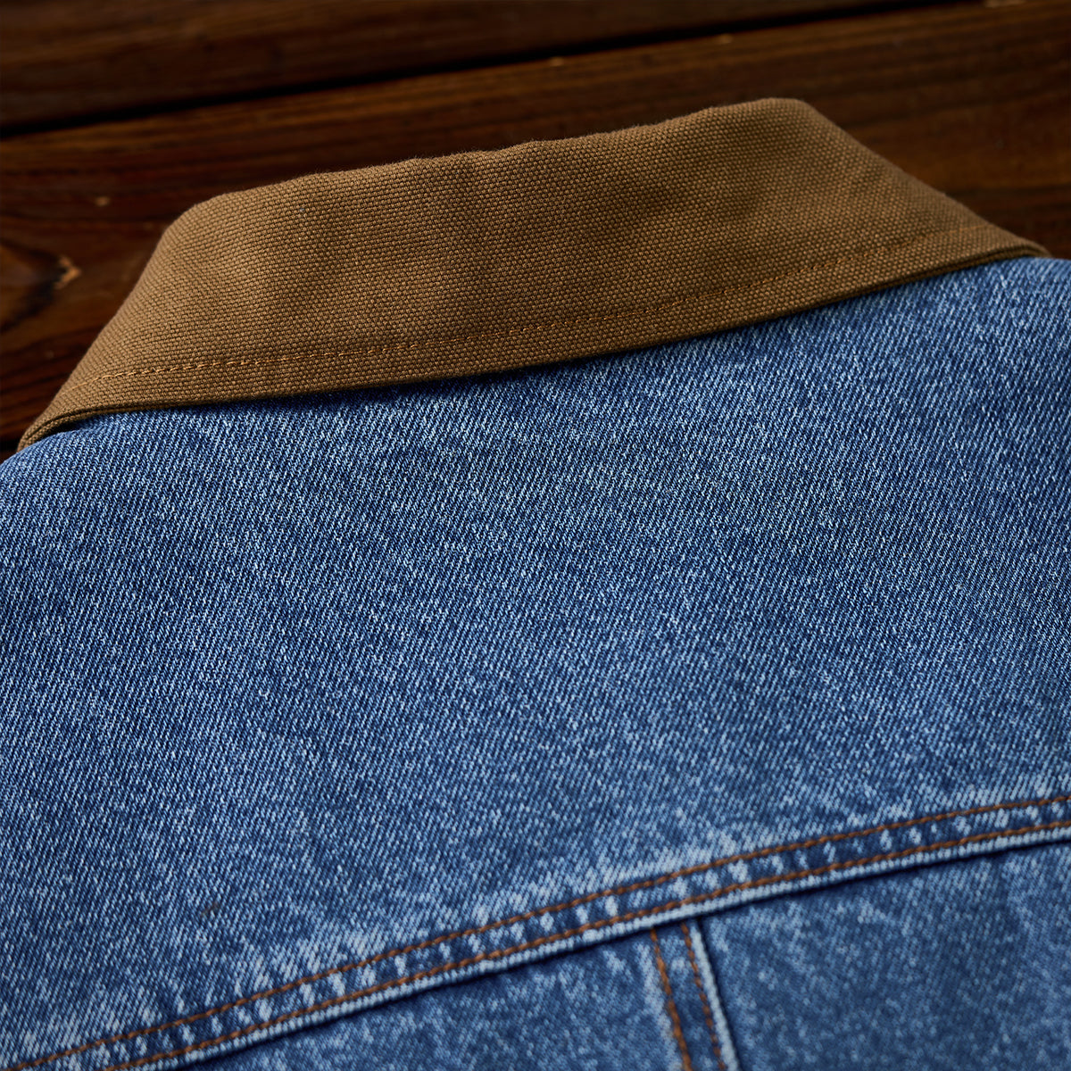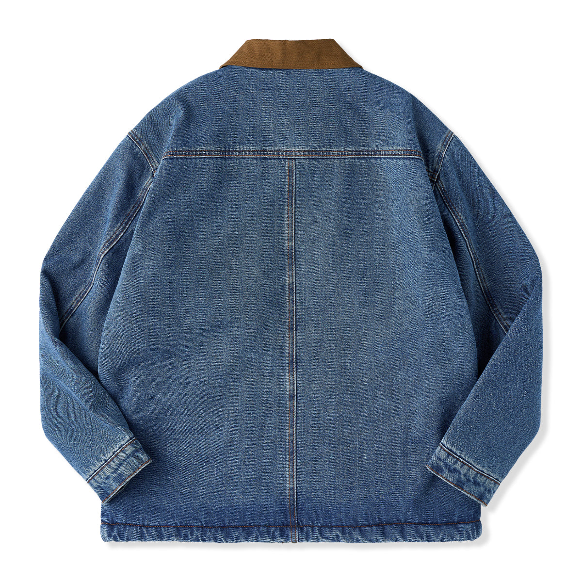 캔버스 칼라 배색 플리스 안감 데님 워크 자켓