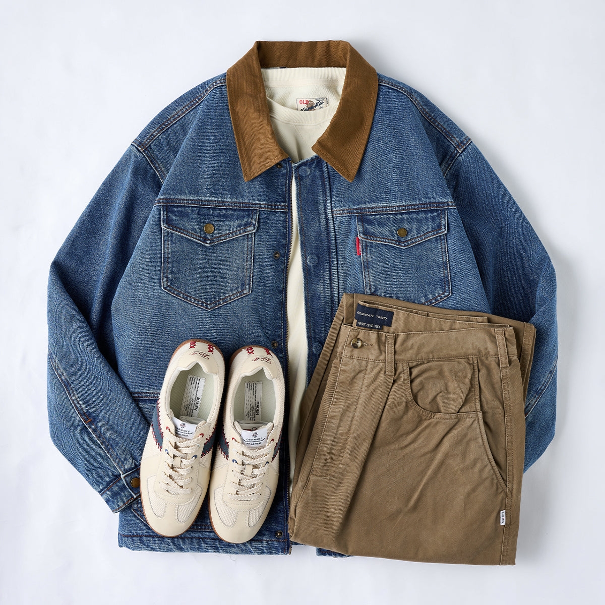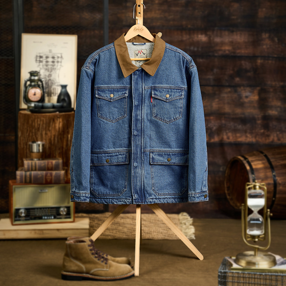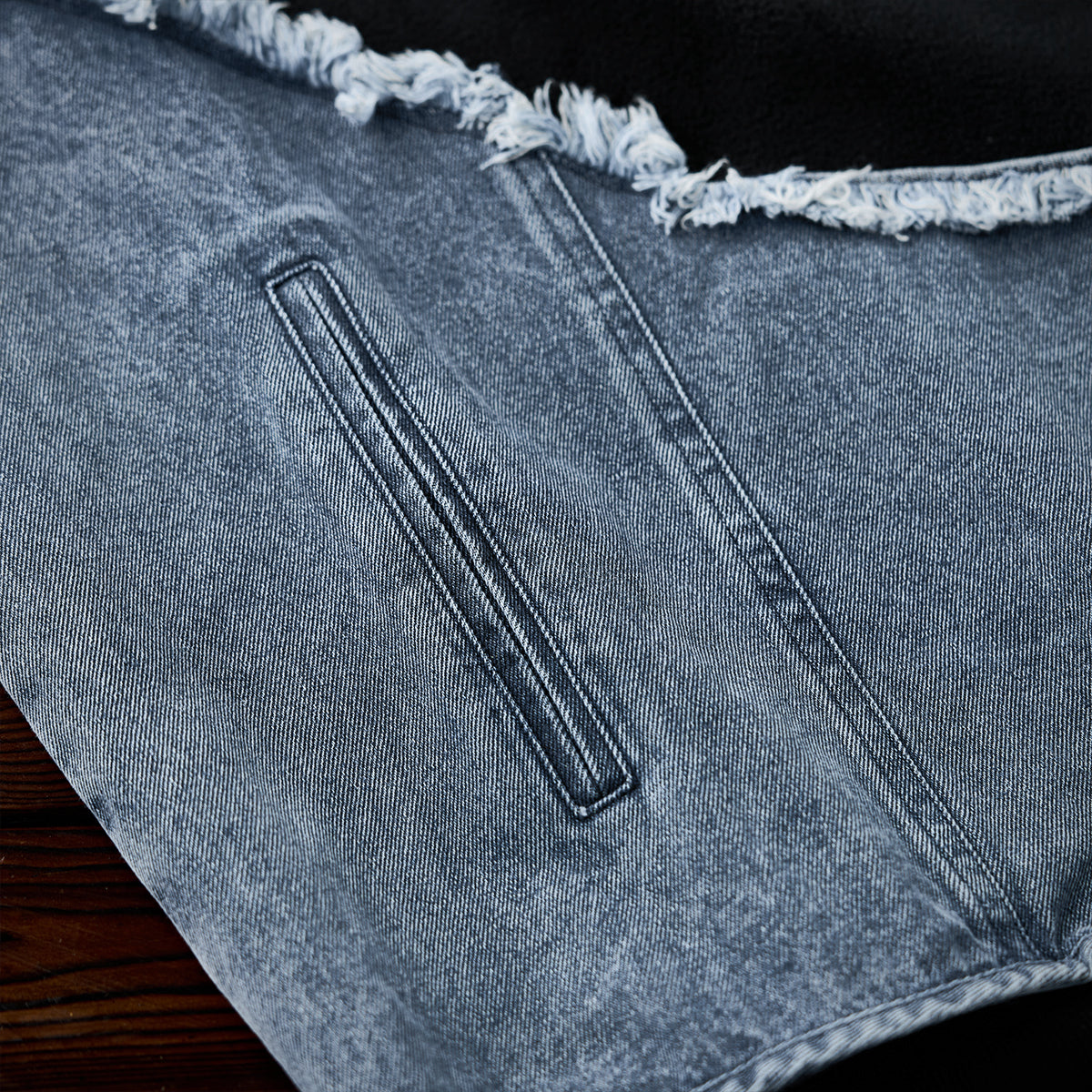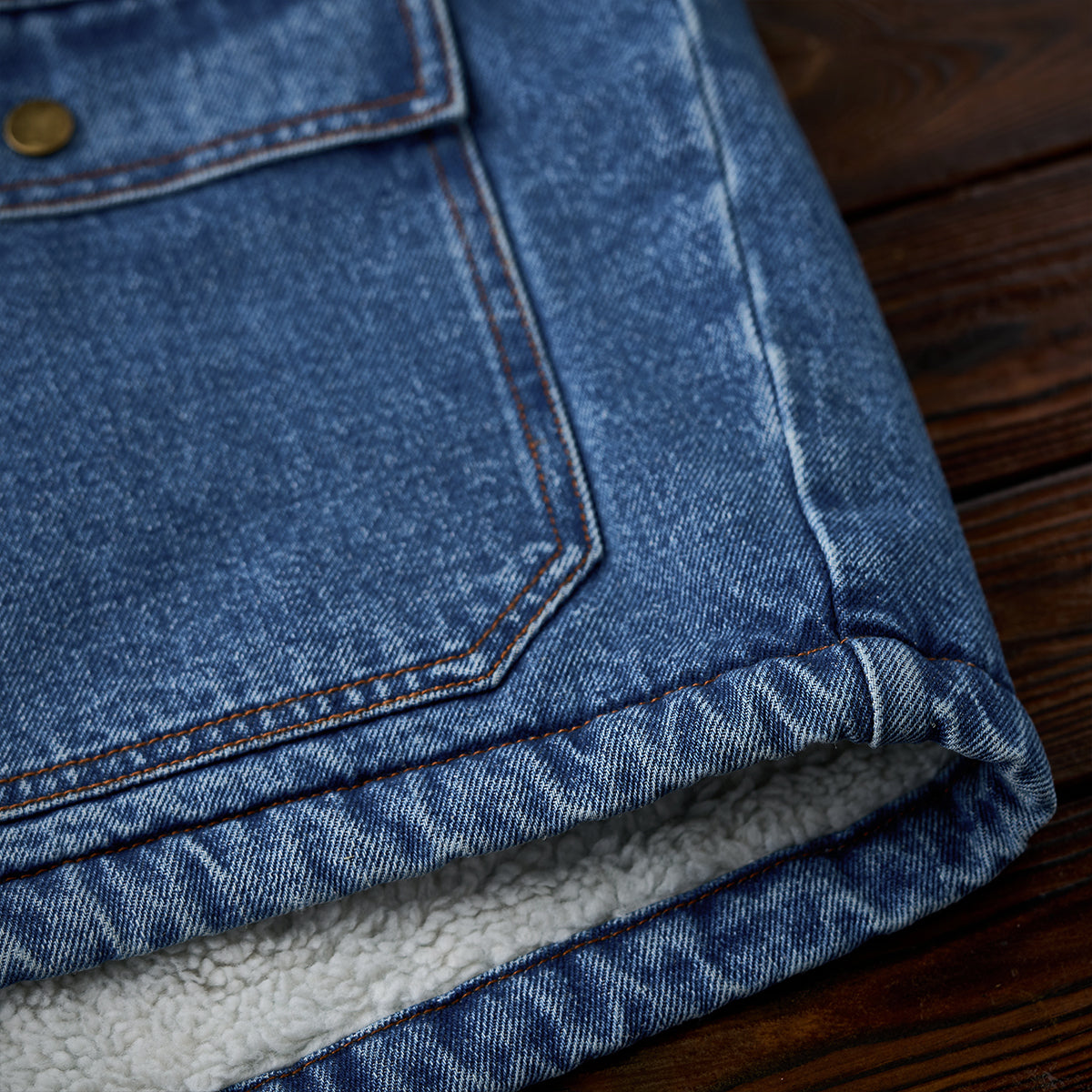 캔버스 칼라 배색 플리스 안감 데님 워크 자켓