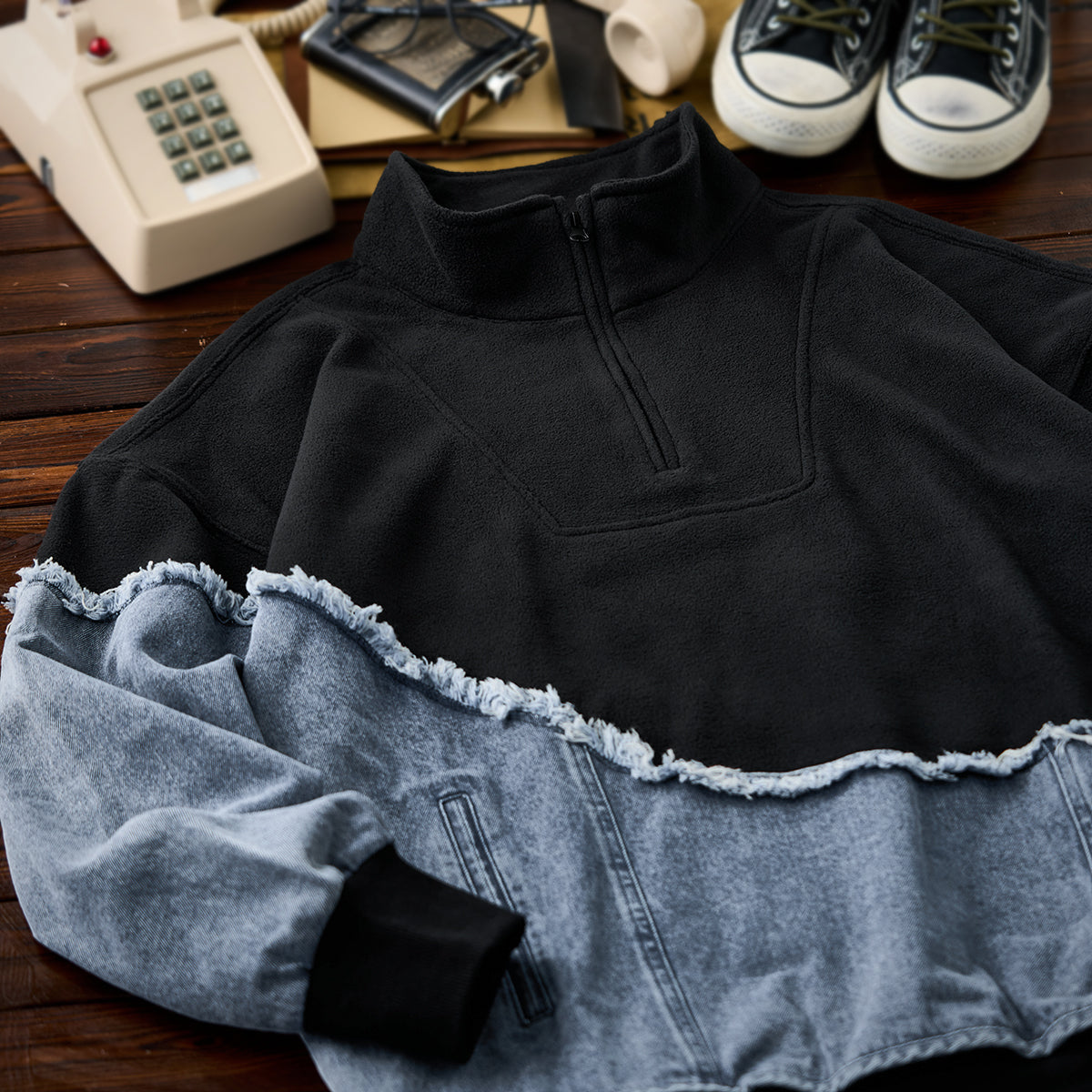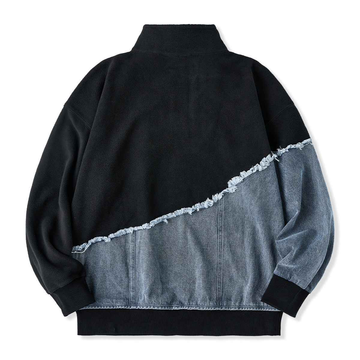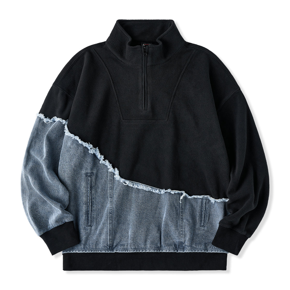 재구성 워싱 데님 배색 하프집업 폴라 플리스 스웨트셔츠