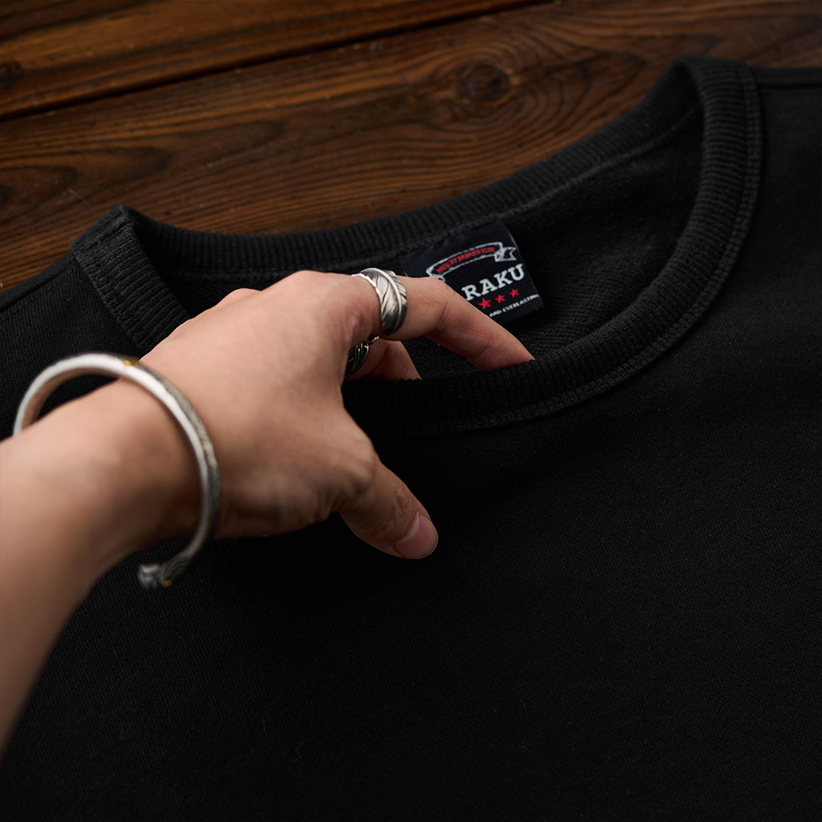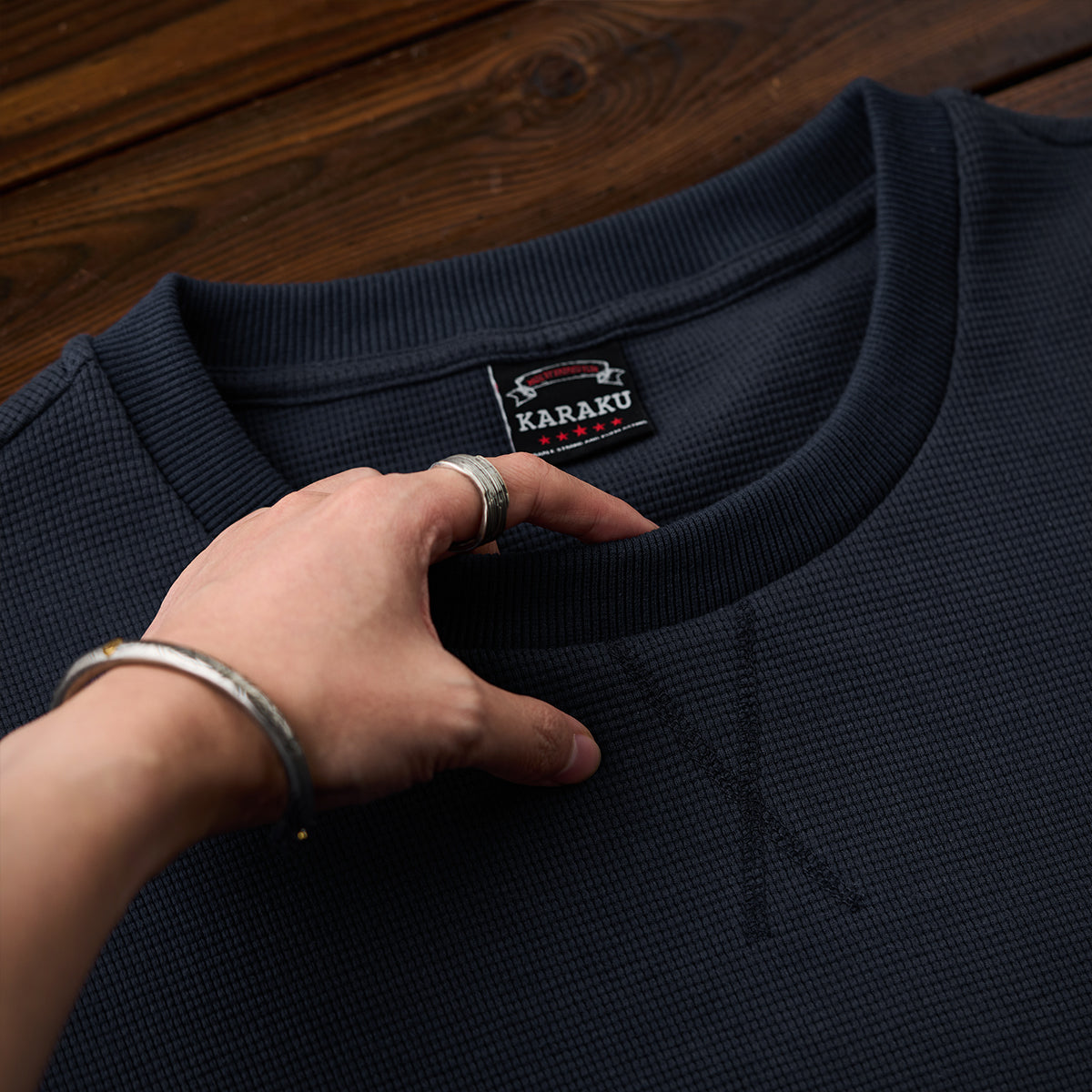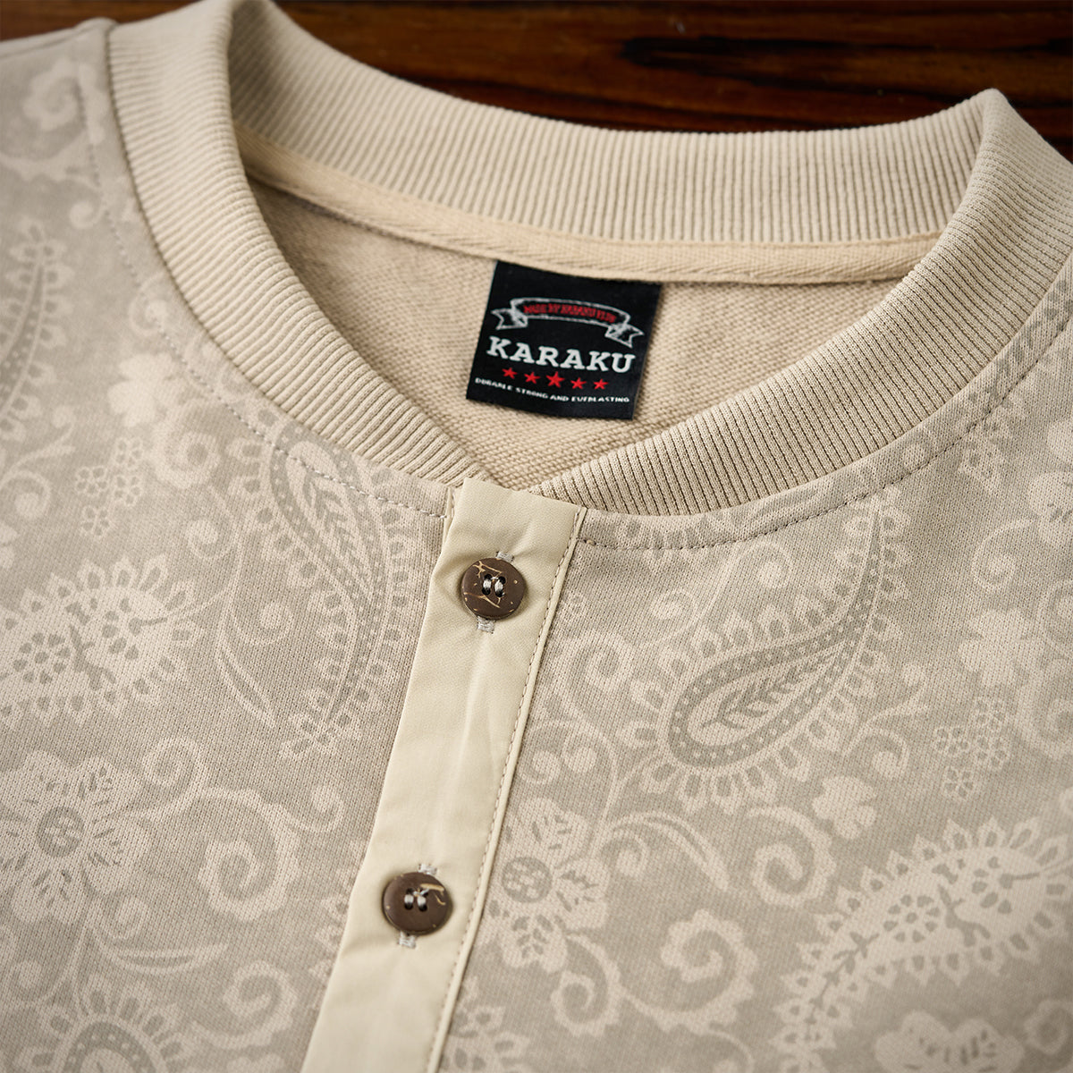 【사전예약】자카드 페이즐리 배색 ‘KaraKu’ 자수 미니 와플 스웨트셔츠