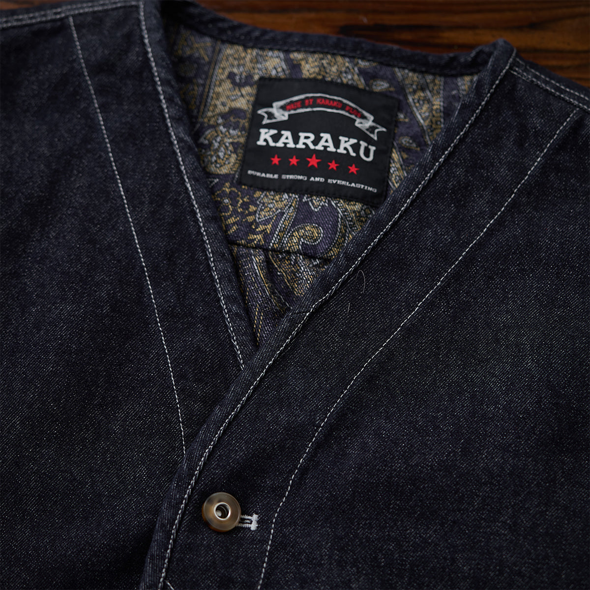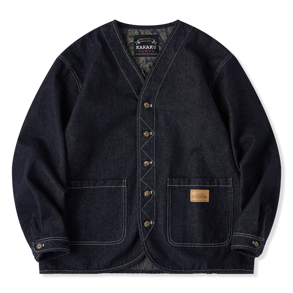 【사전예약】「Karaku」자수 로고 & 에스닉 패턴 안감 후드 데님 자켓