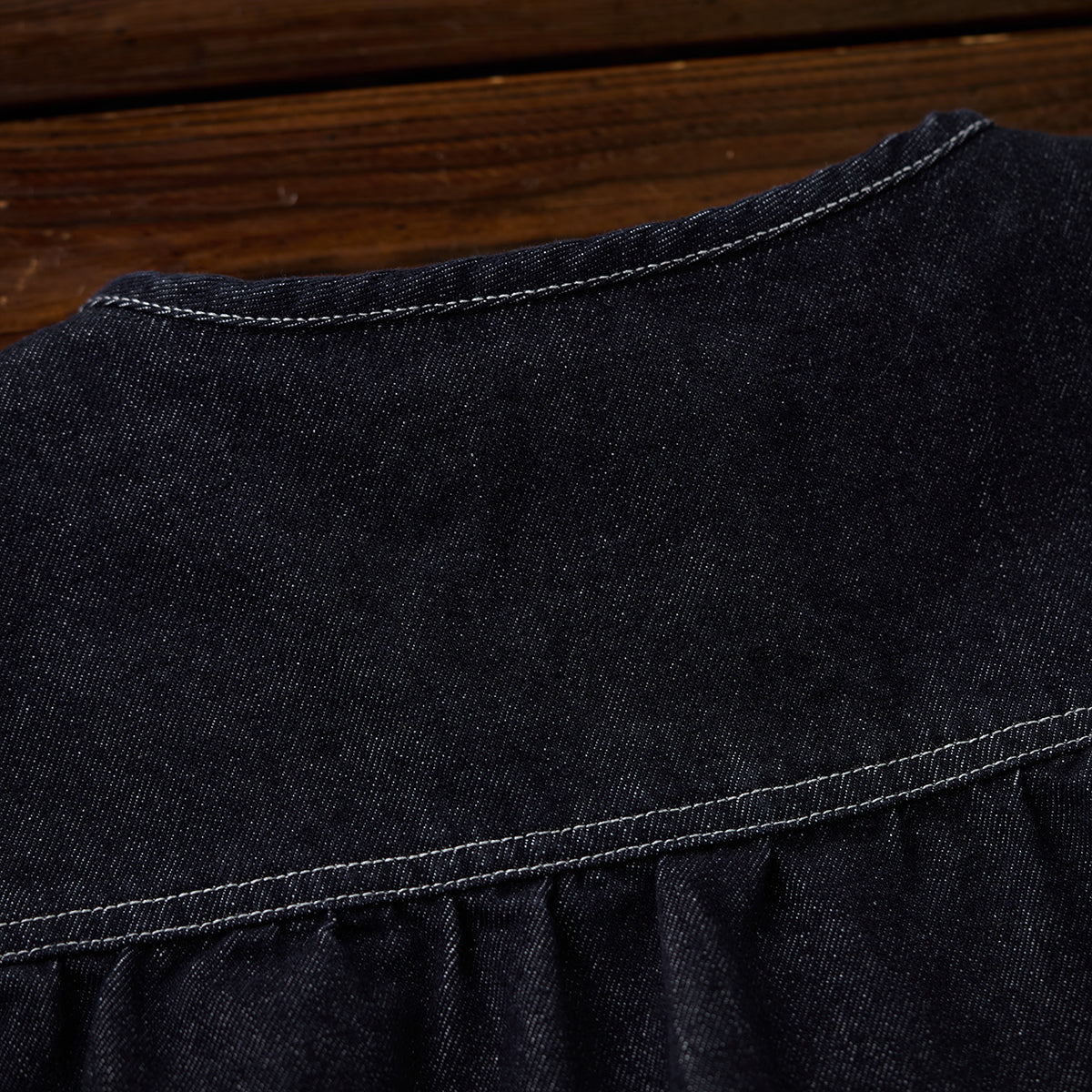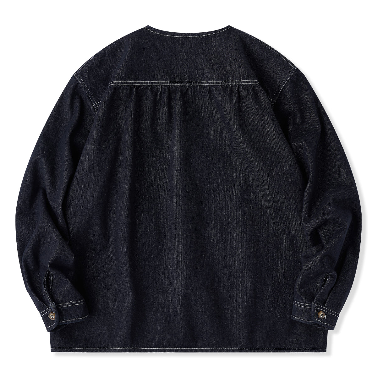 【사전예약】이종 소재 배색 포켓·앞단 데님 헨리넥 스웨트셔츠