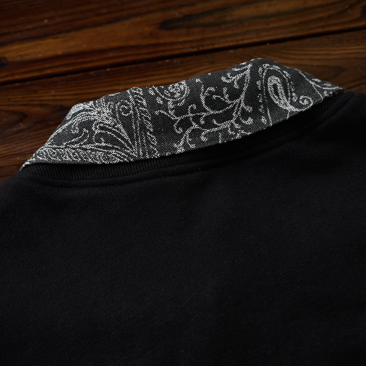 【사전예약】페이즐리 패턴 데님 배색 & 지퍼 디테일 크루넥 풀오버 스웨트셔츠