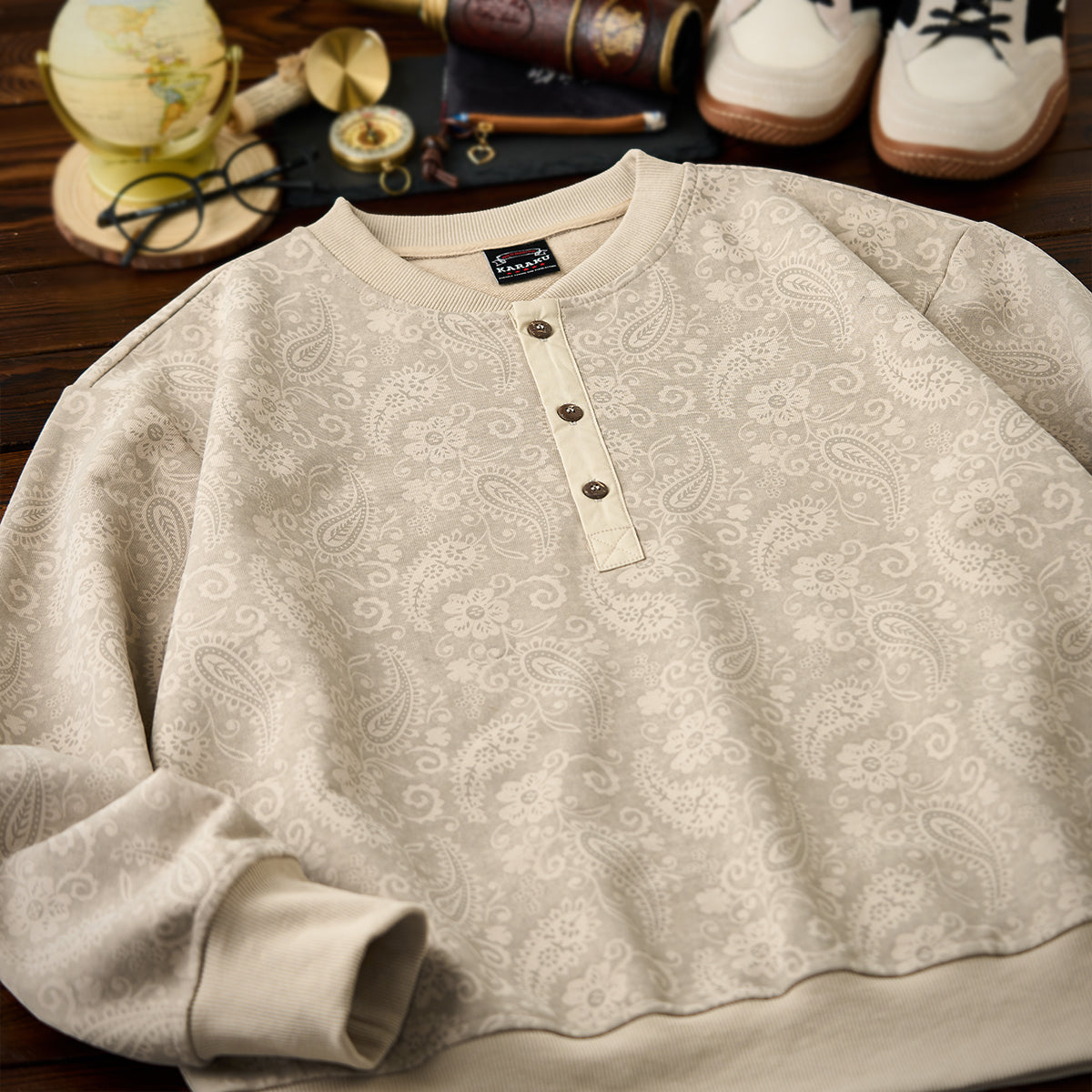 워싱 & 유즈드 가공 페이즐리 올오버 하프 버튼 스웨트
