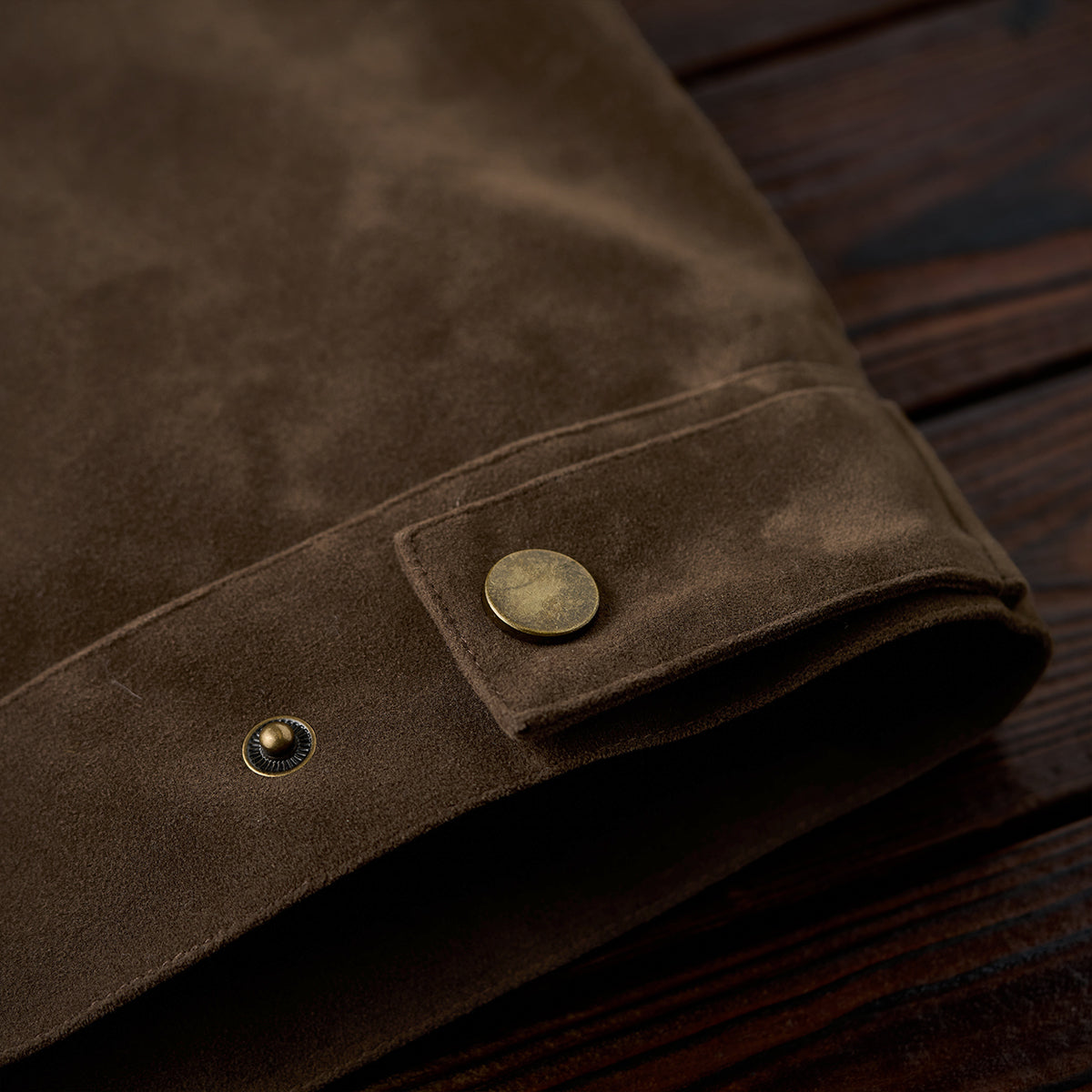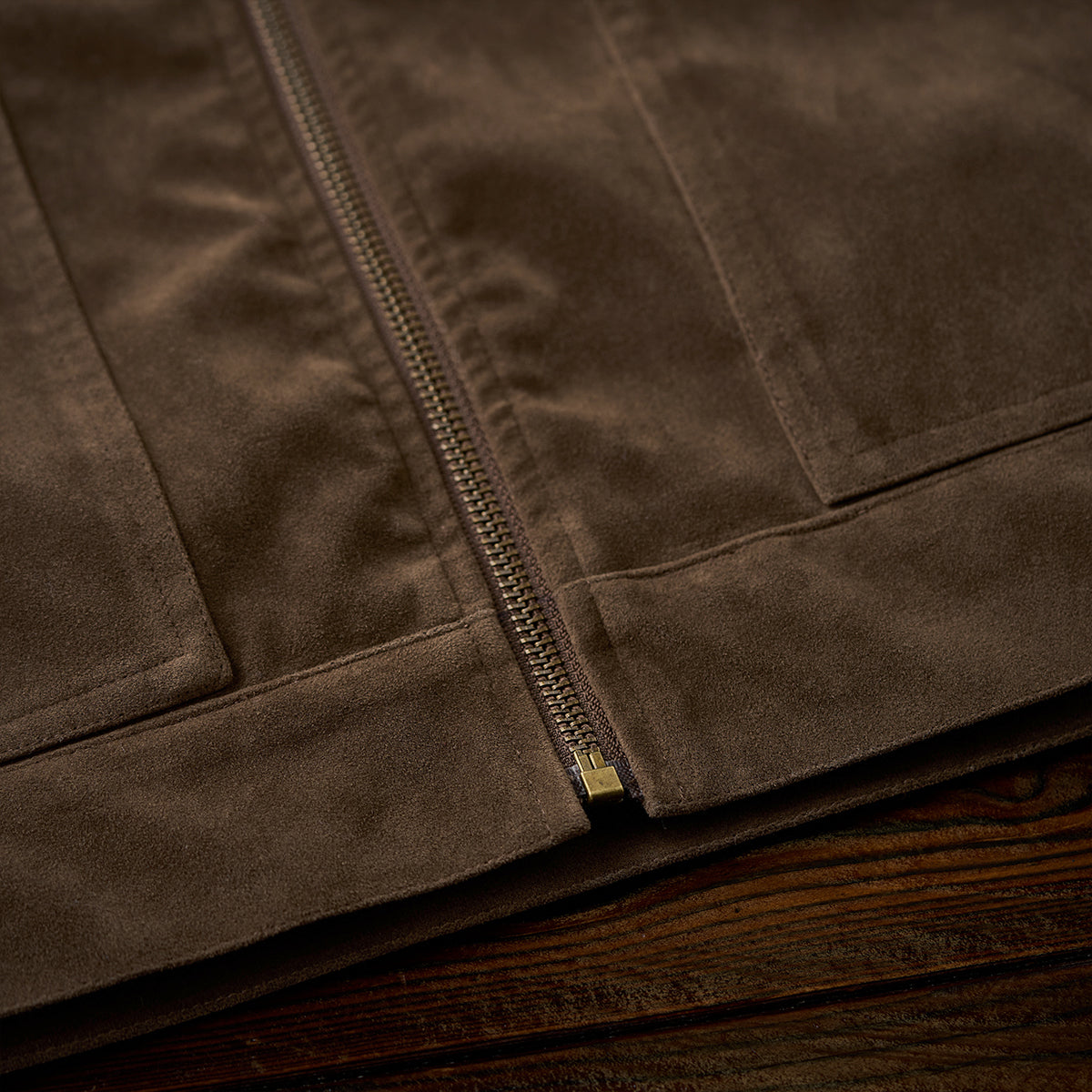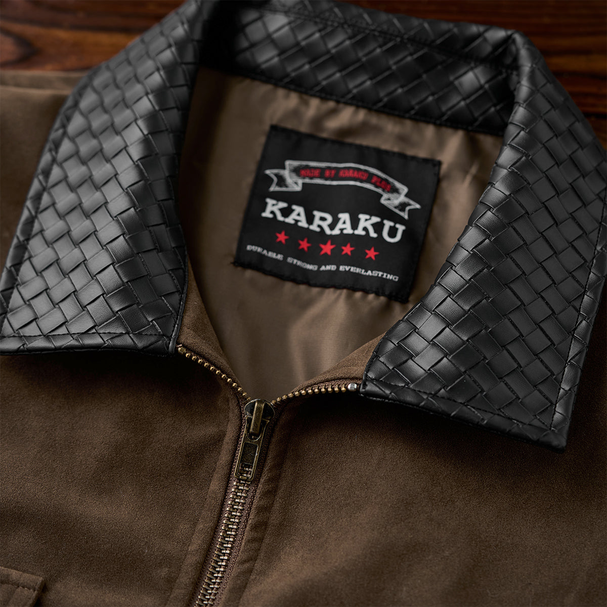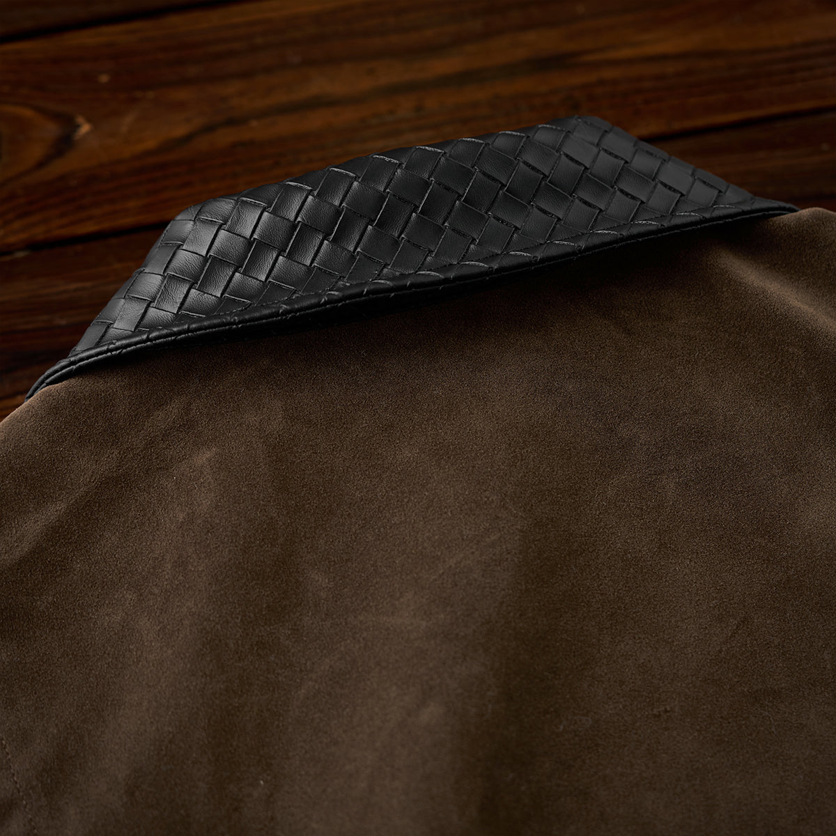 【사전예약】브레이드 가죽 칼라 배색 유니크 포켓 스웨이드 자켓