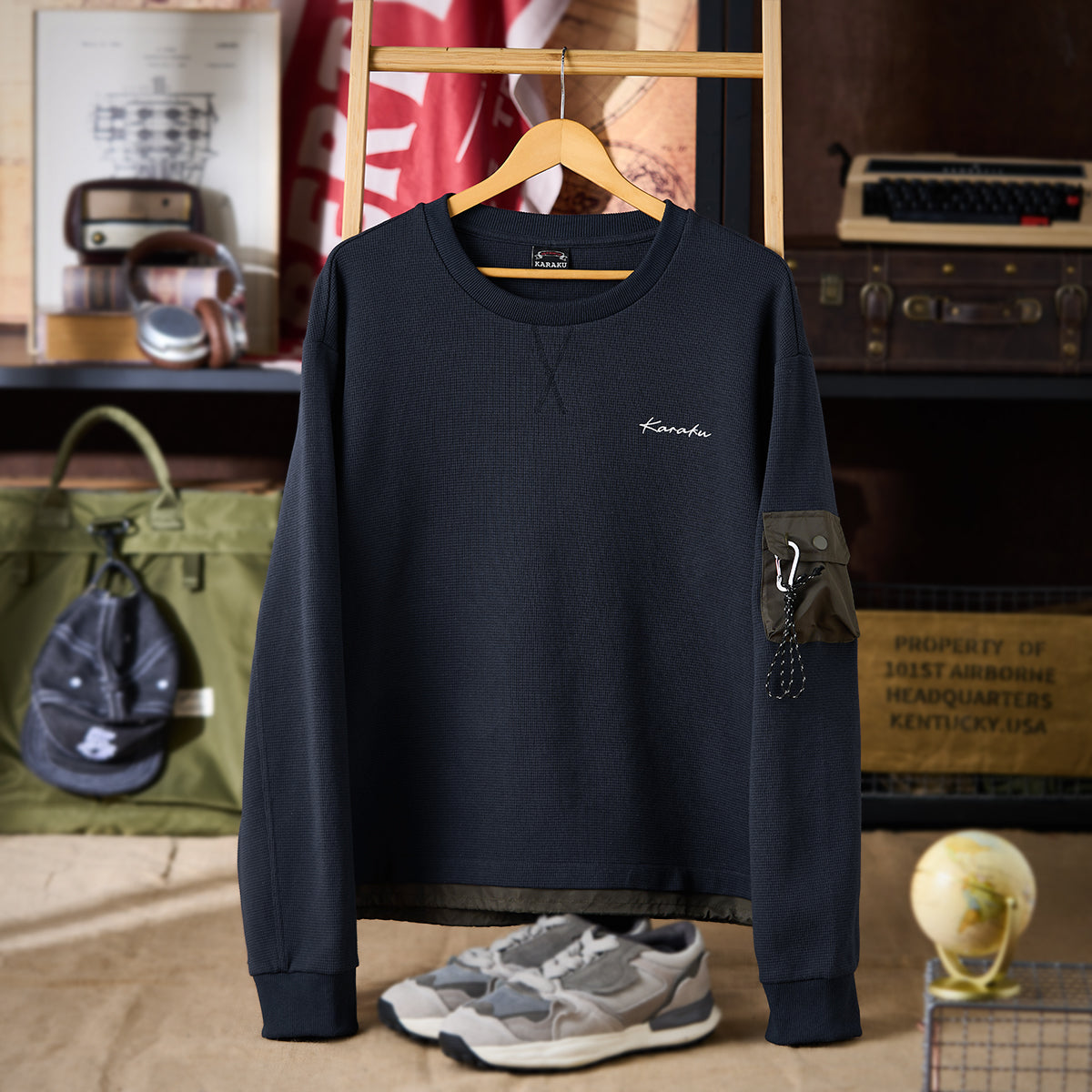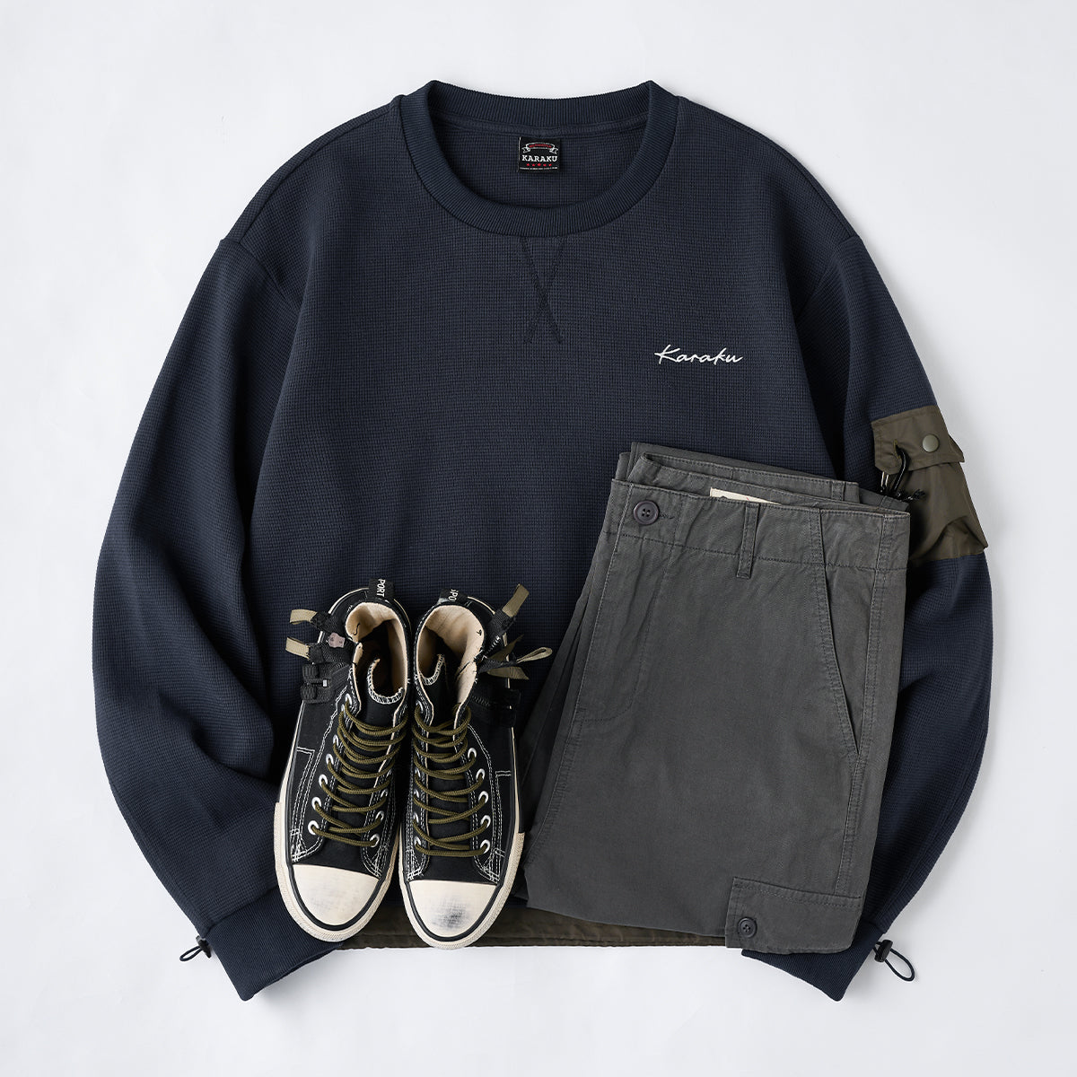 【사전예약】Karaku 자수 밑단 배색 와플 마운틴 스웨트셔츠