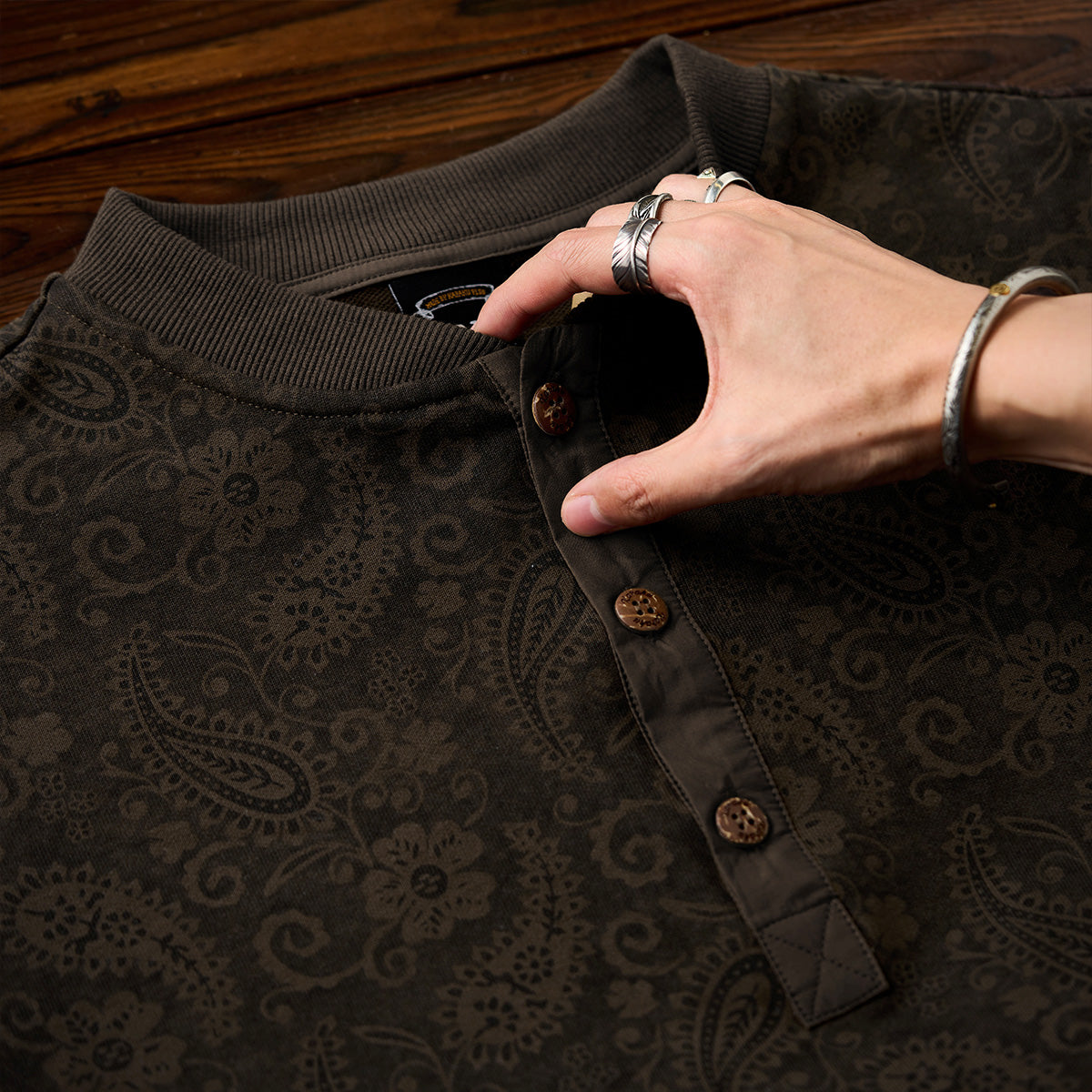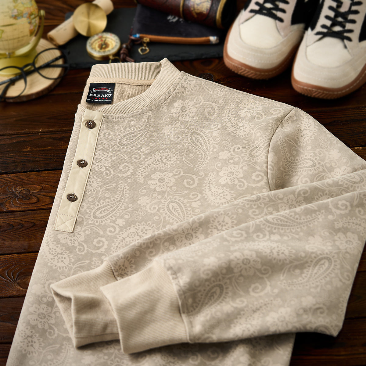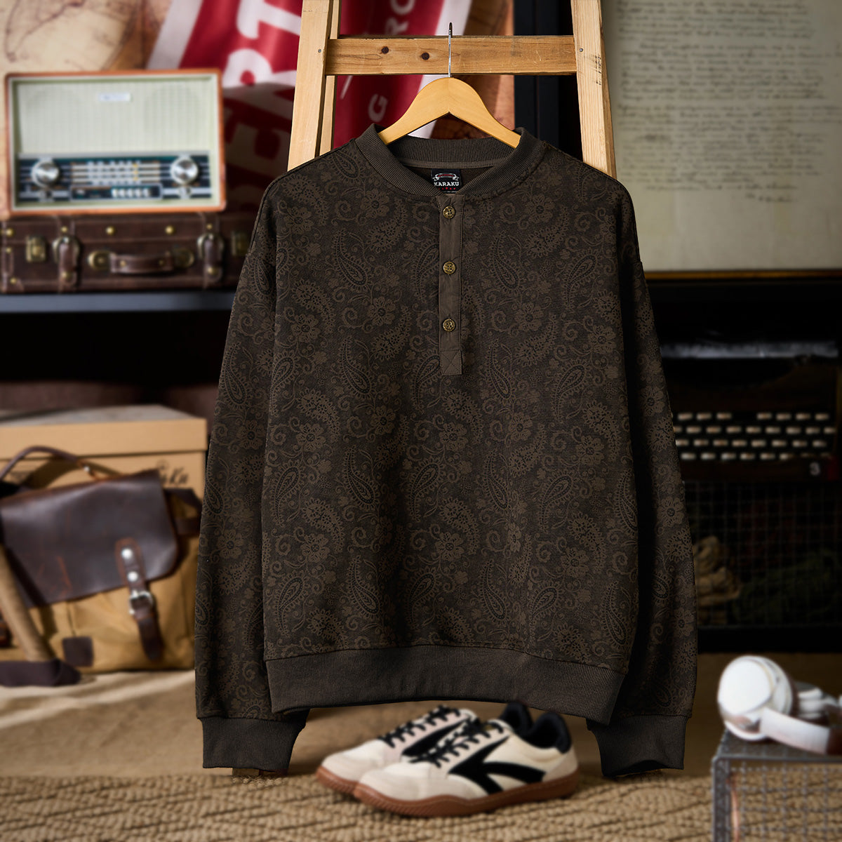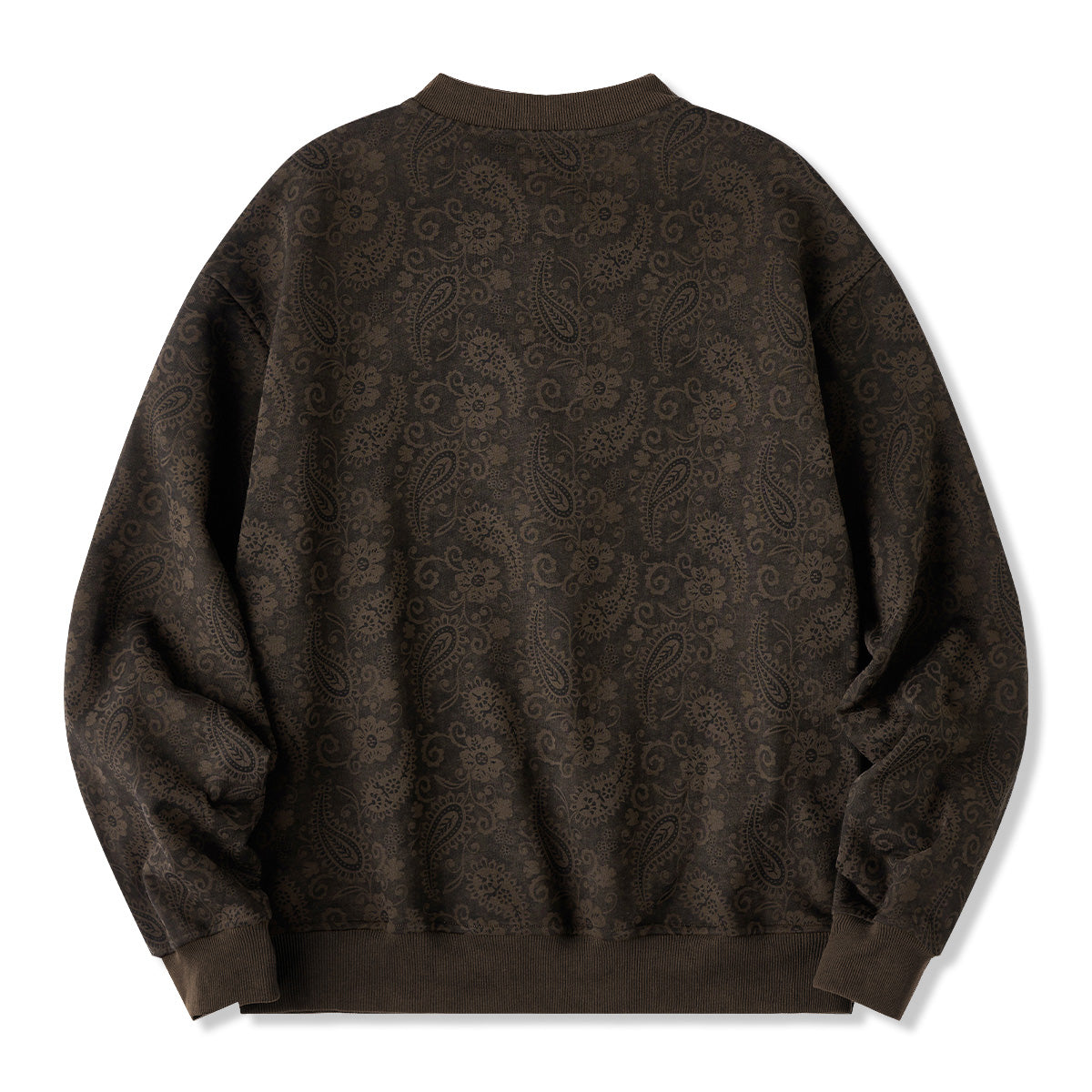 워싱 & 유즈드 가공 페이즐리 올오버 하프 버튼 스웨트