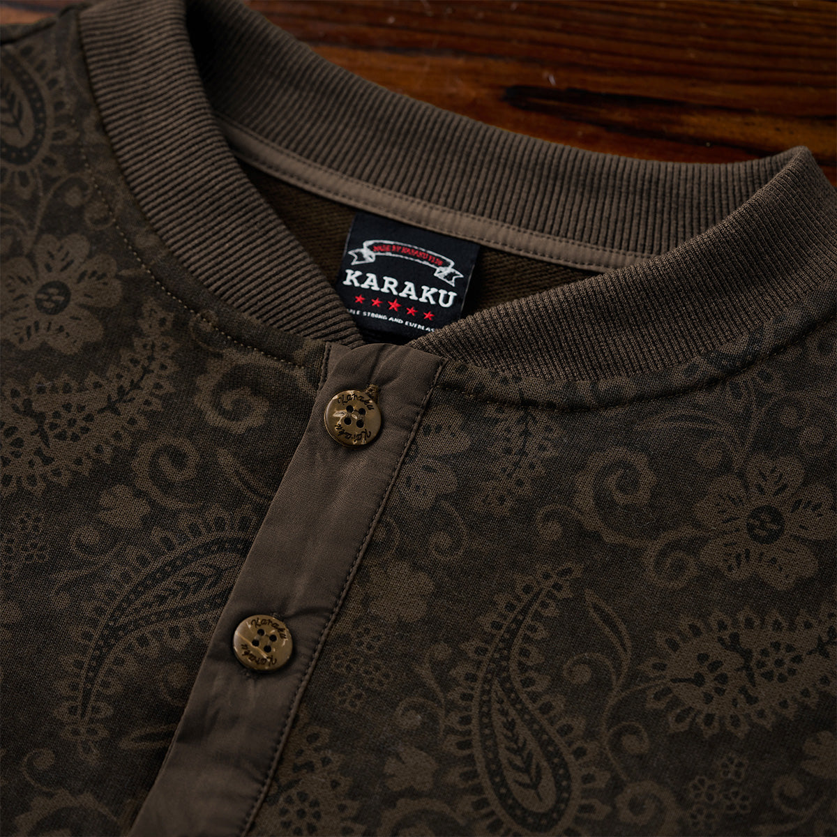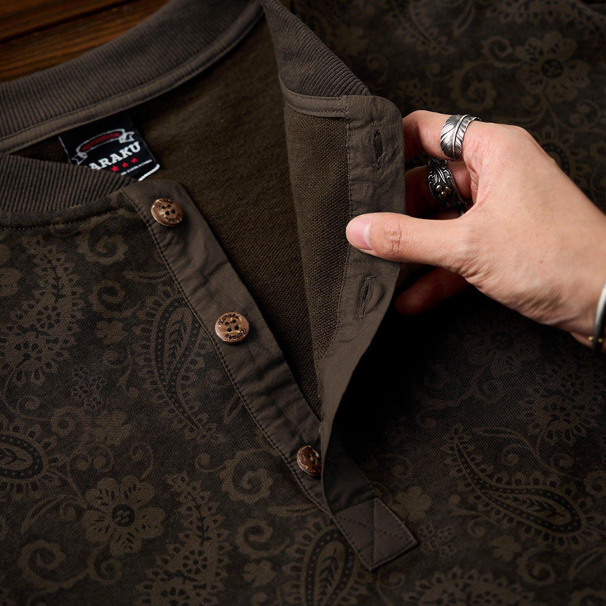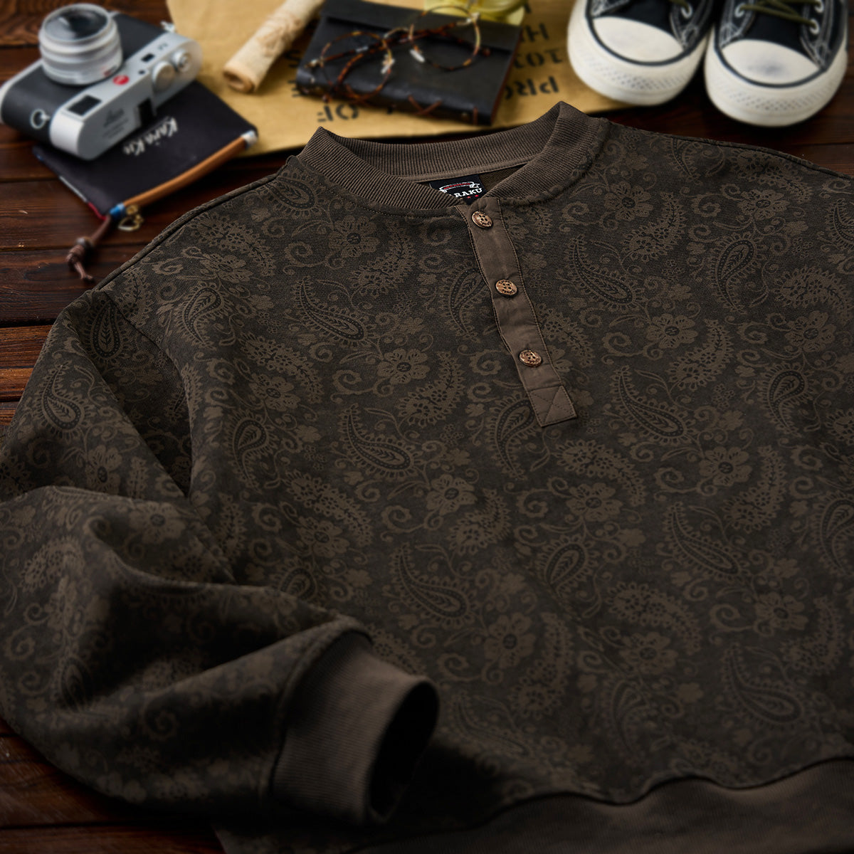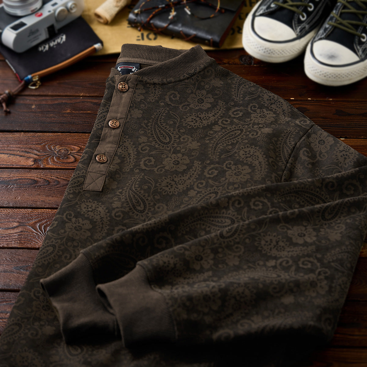 워싱 & 유즈드 가공 페이즐리 올오버 하프 버튼 스웨트