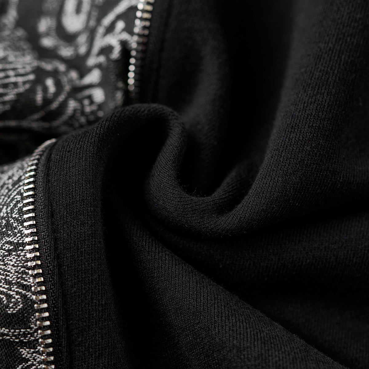 【사전예약】페이즐리 패턴 데님 배색 & 지퍼 디테일 크루넥 풀오버 스웨트셔츠