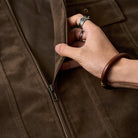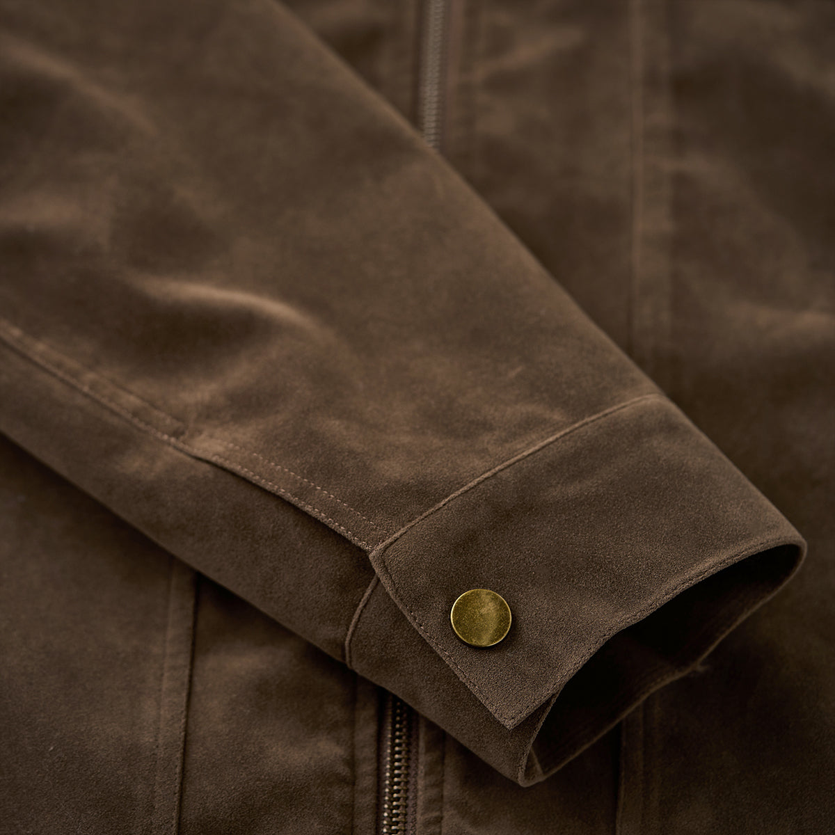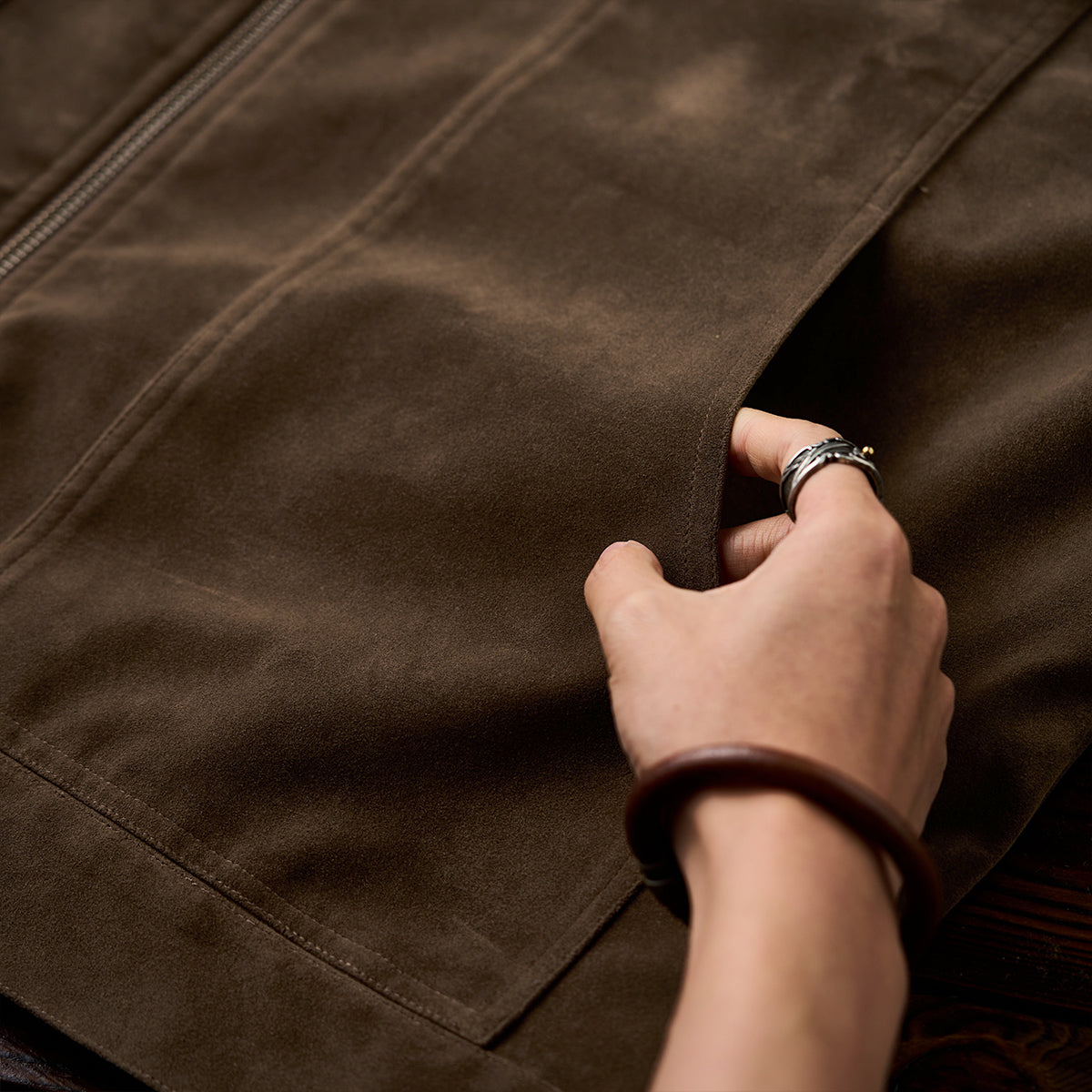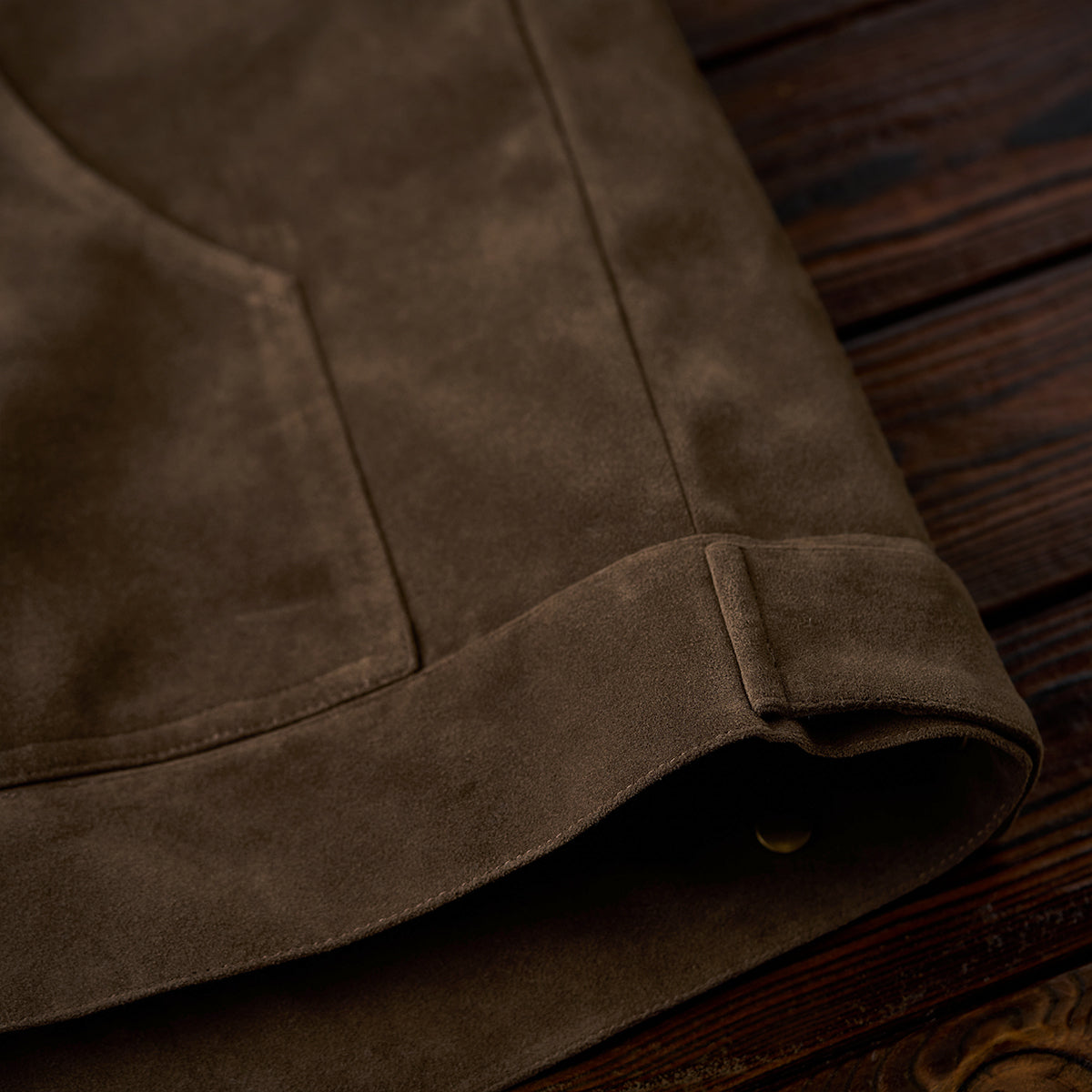 스웨이드 느낌의 가죽으로 부드럽고 고급스러운 마감이 돋보이며, 스웨이드 특유의 기모감은 따뜻한 촉감과 빈티지한 시각적 효과를 제공합니다.