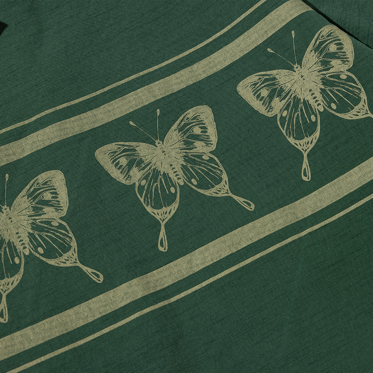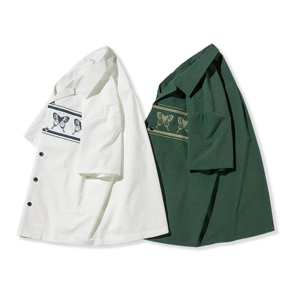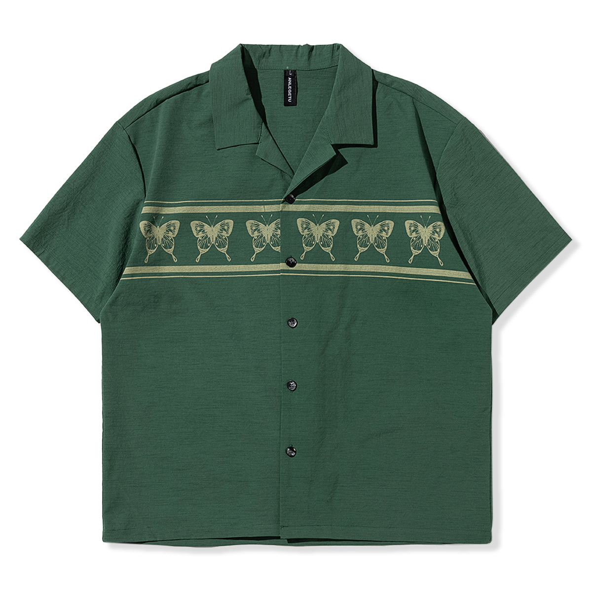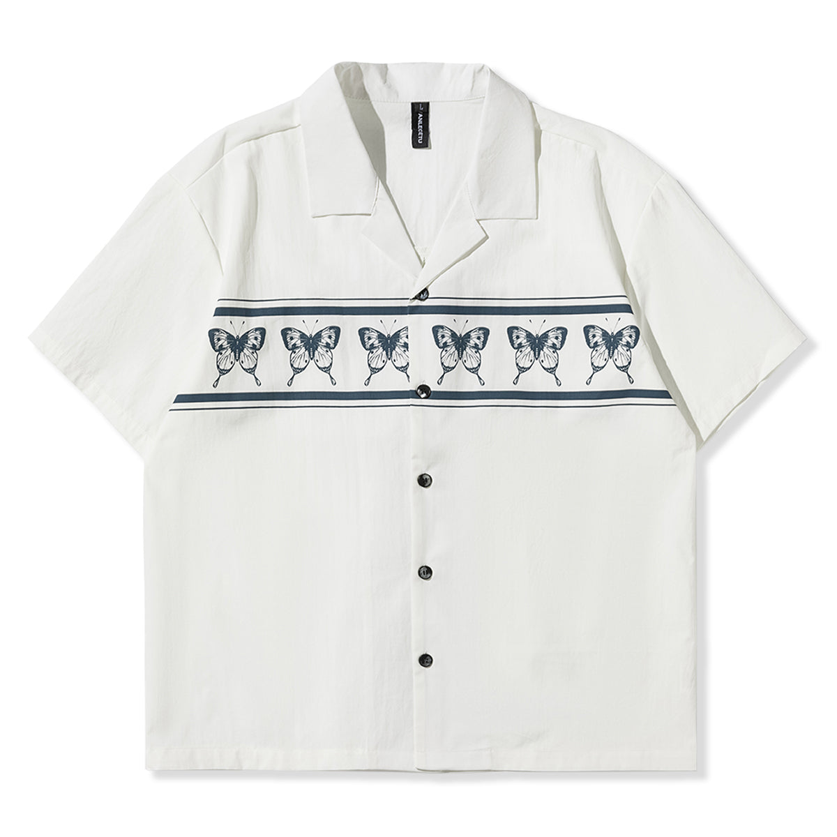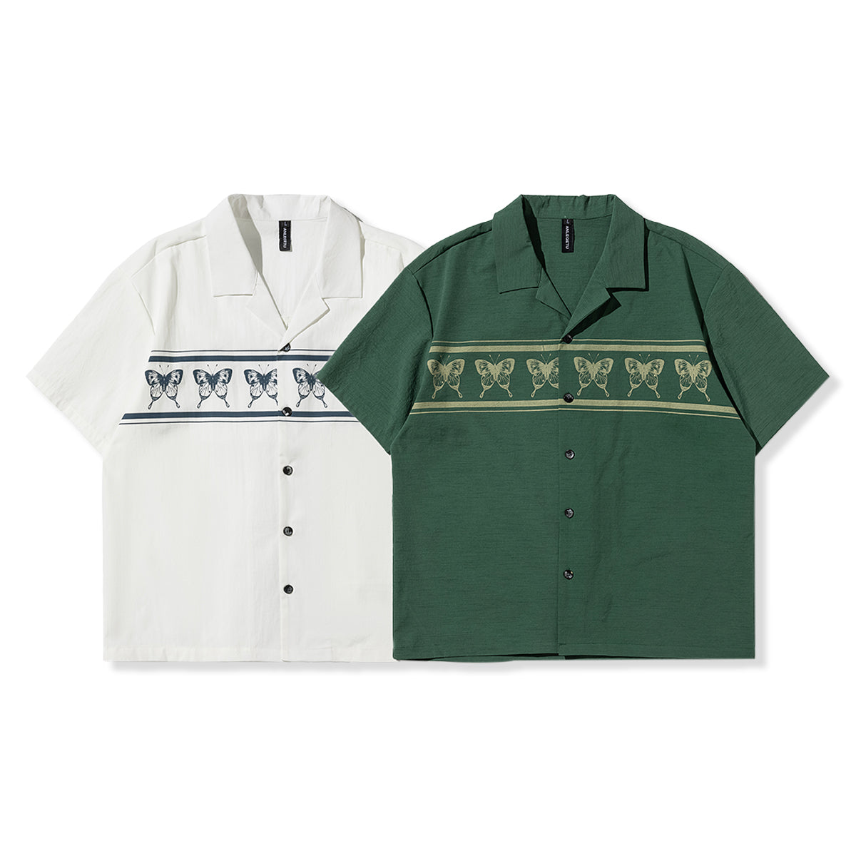 버터플라이 프린트와 빈티지 감성이 돋보이는 큐바 칼라 셔츠. 여유로운 박스 실루엣과 편안한 착용감으로, 감각적인 여름 스타일을 완성해주는 주역 아이템입니다.