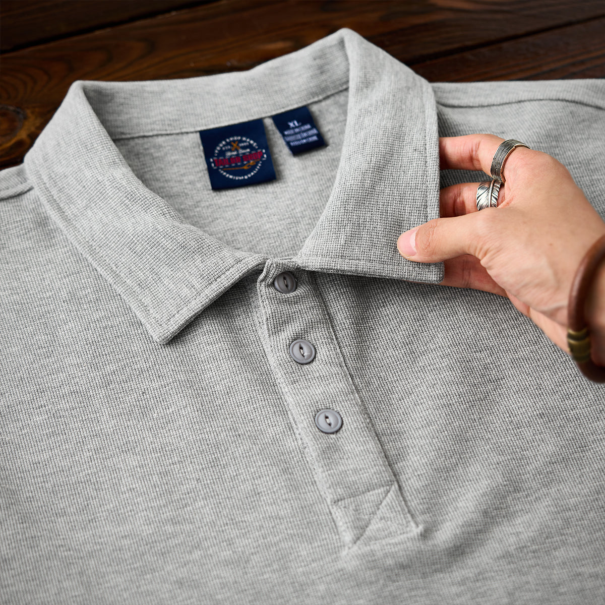 깔끔한 폴로 칼라와 버튼 디테일로 캐주얼하면서도 단정한 무드를 연출하며, 다크 블루·라이트 그레이·커피 3가지 컬러로 다양한 스타일에 쉽게 매치할 수 있는 아이템입니다.