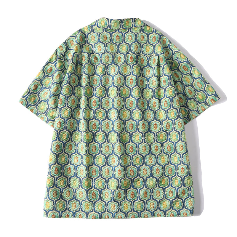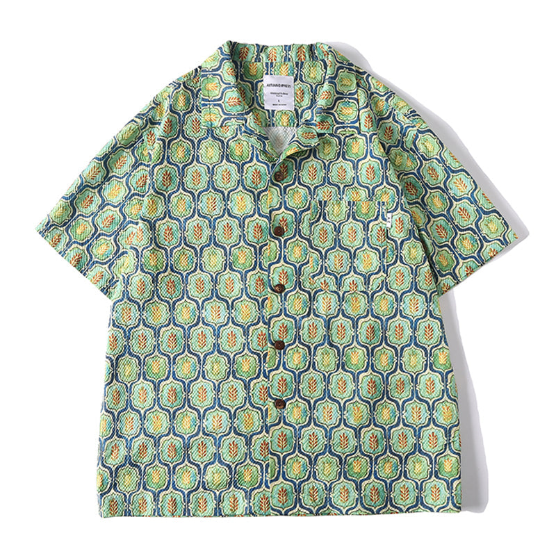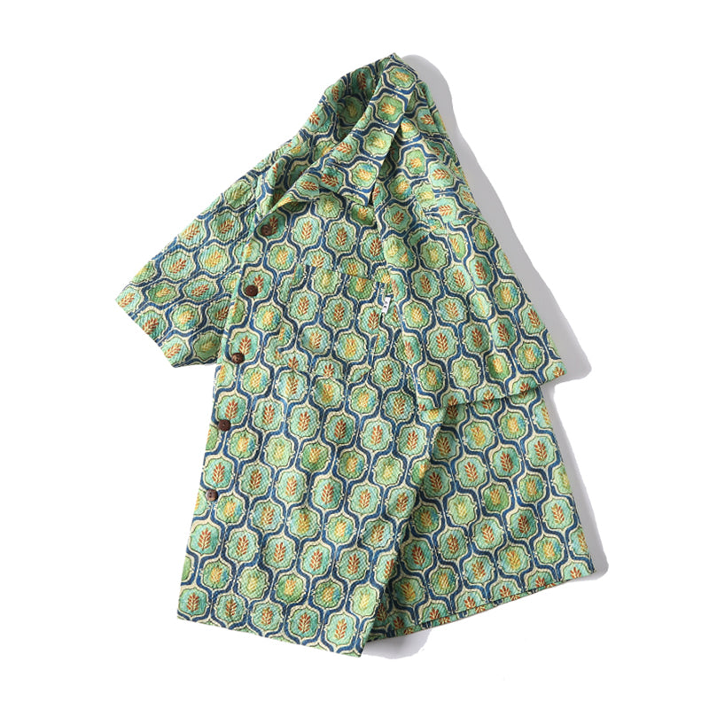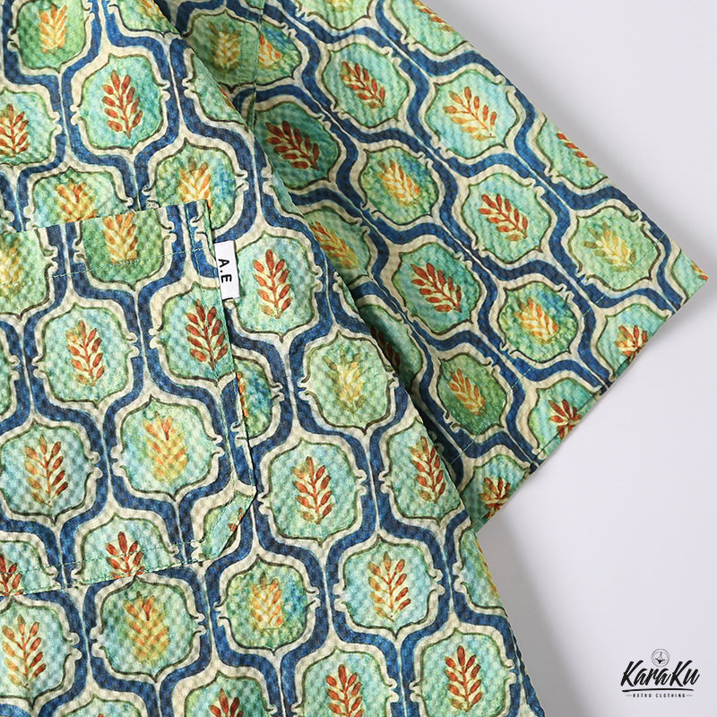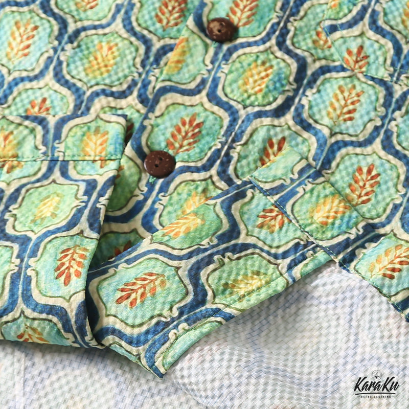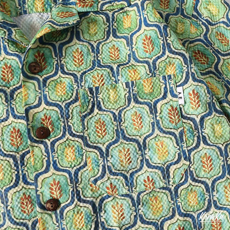 워터컬러 잔잎무늬 시어사커 알로하 셔츠