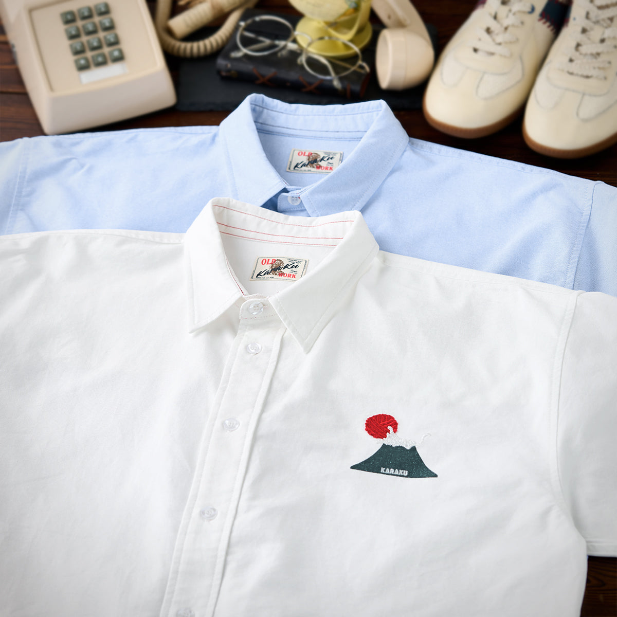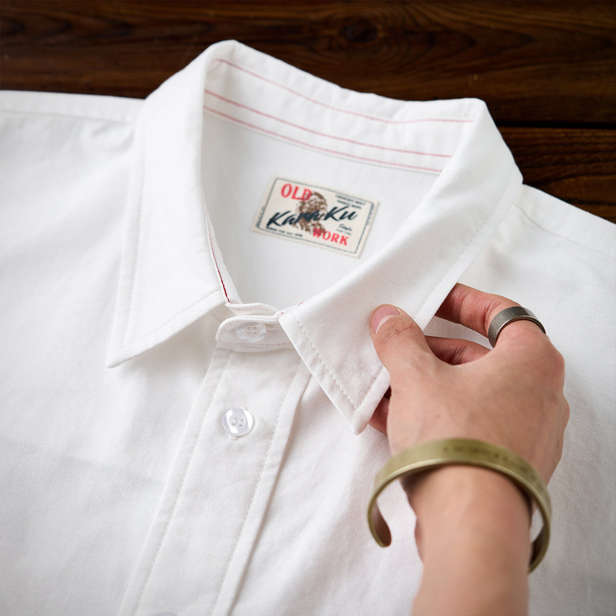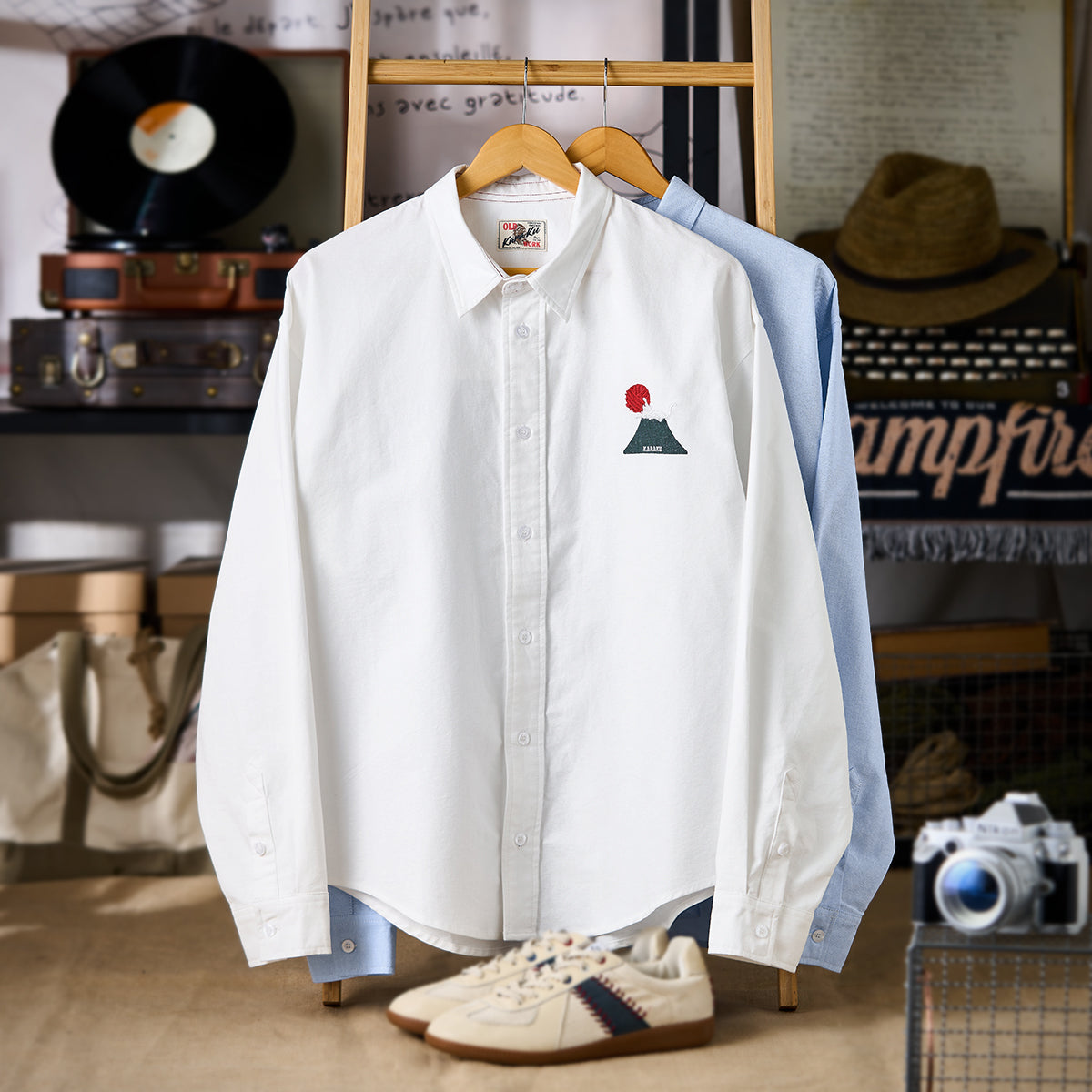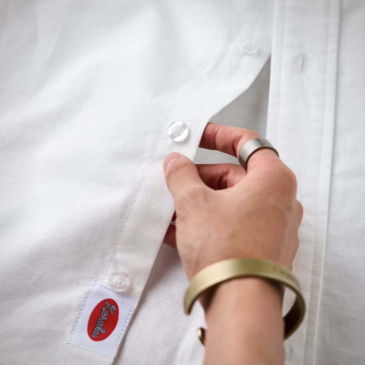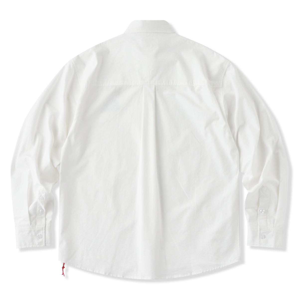 유머러스한 원포인트 자수와 밑단 레드 스트링 디테일로 귀엽고 장난기 있는 포인트를 더한 긴팔 셔츠입니다. 단추를 잠가 깔끔하게 입거나, 아우터처럼 걸쳐 편하게 스타일링할 수 있습니다.