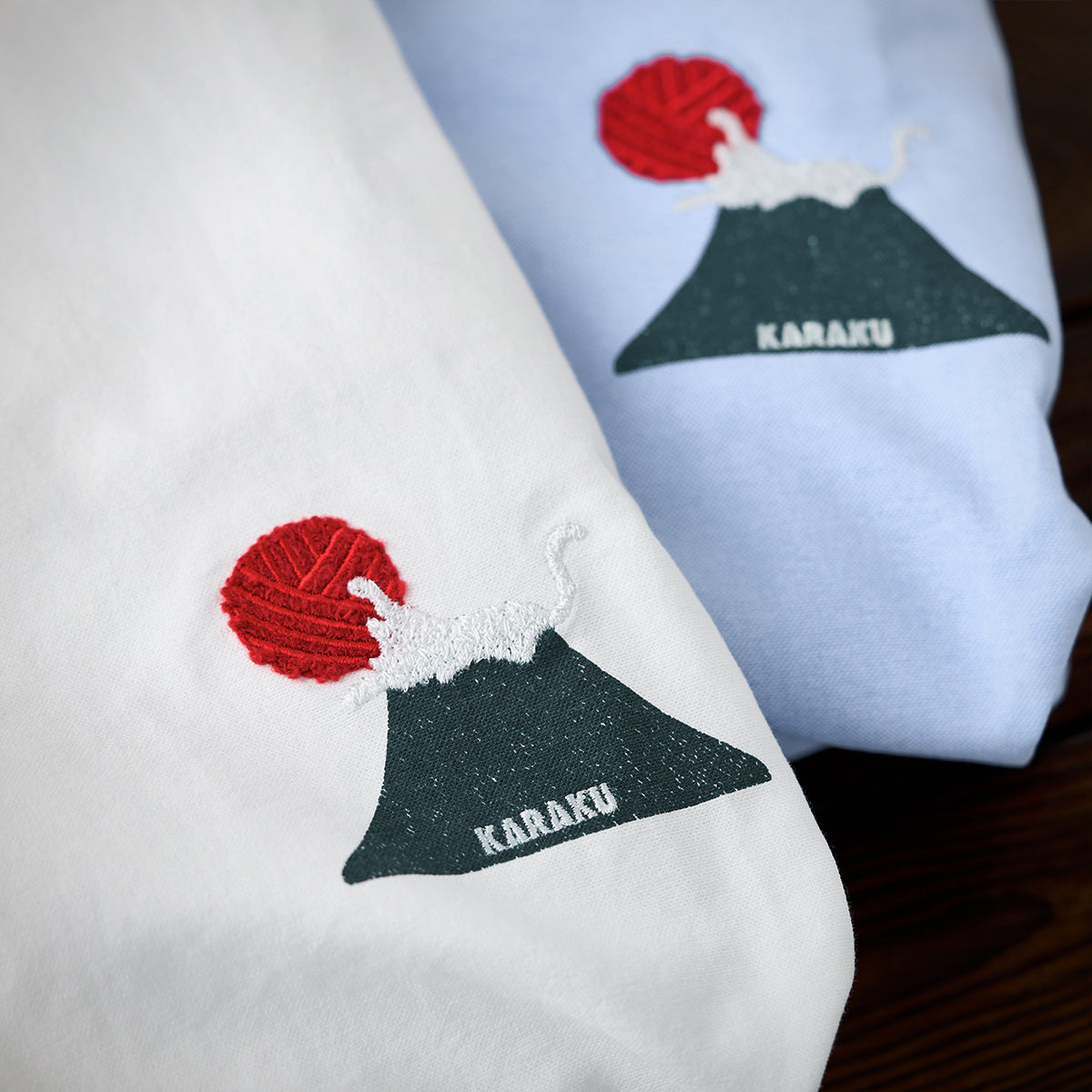 【사전예약】빨간 매듭 끈「후지산 정상의 고양이 놀이」자수 긴팔 셔츠