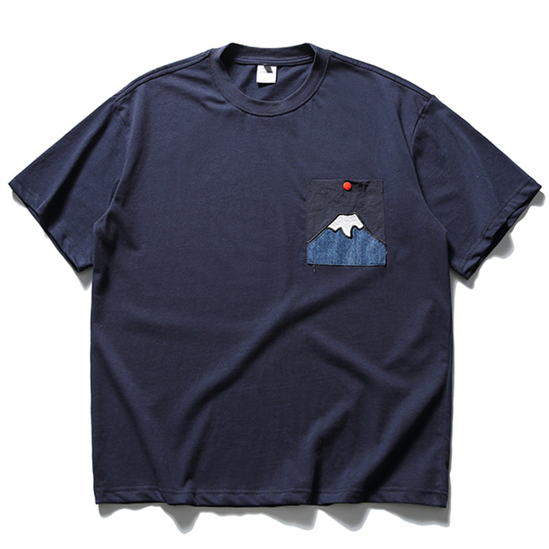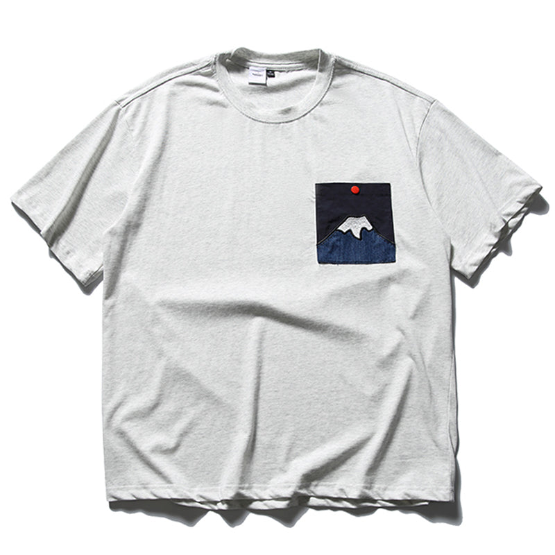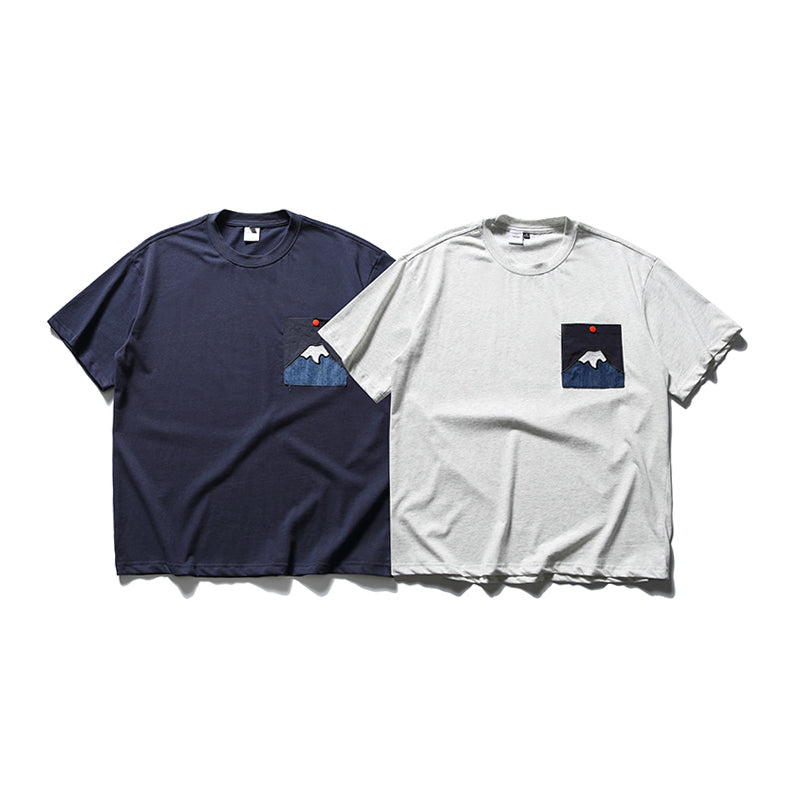 「후지산의 아침 해」패치 포켓 코튼 반팔 Tee