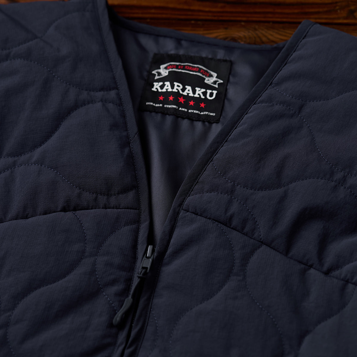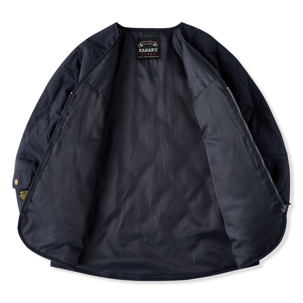「KaraKu」자수 와펜 소매 지퍼 포켓 노카라 자켓