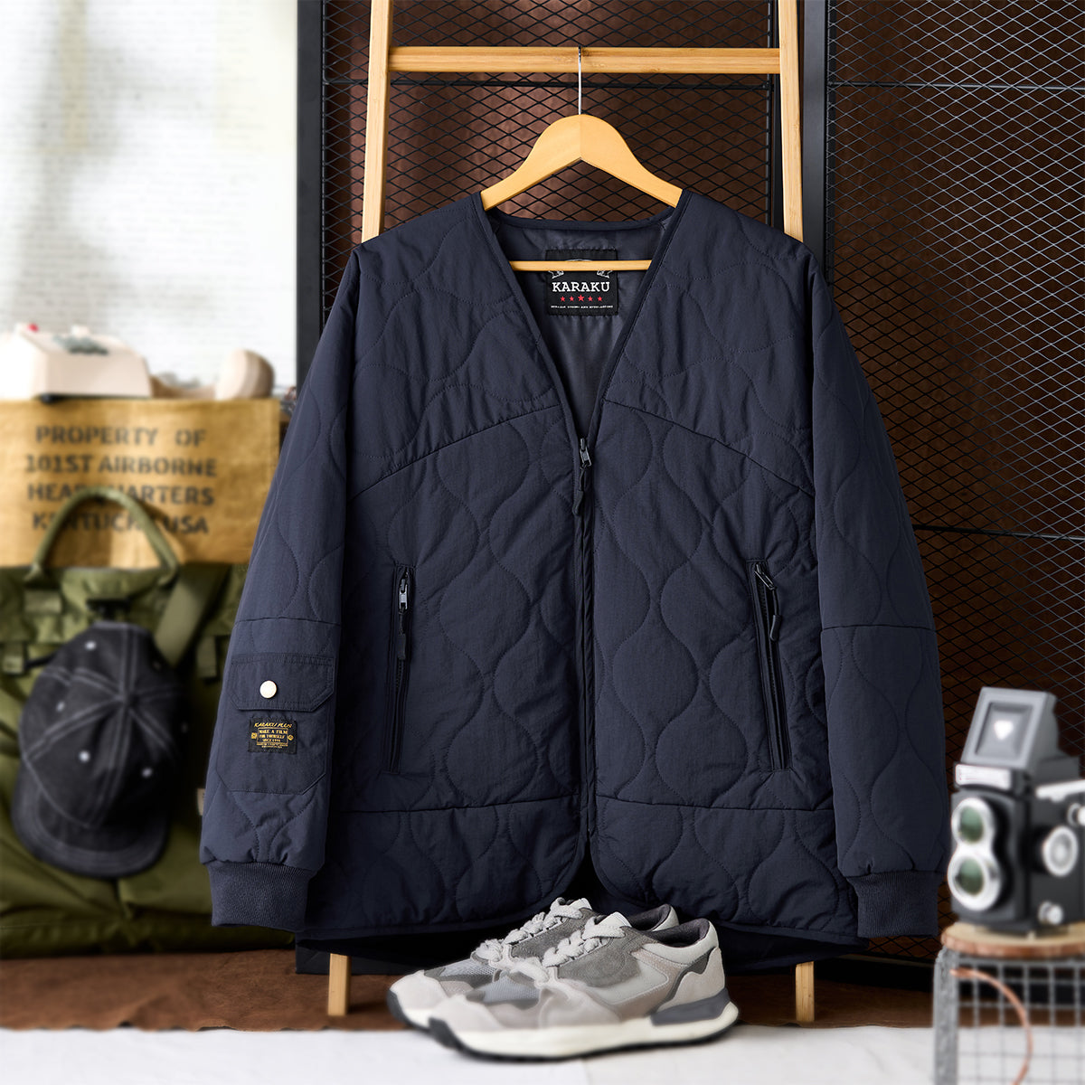 【사전예약】소매 포켓 호리병 퀼팅 솜안감 V넥 자켓