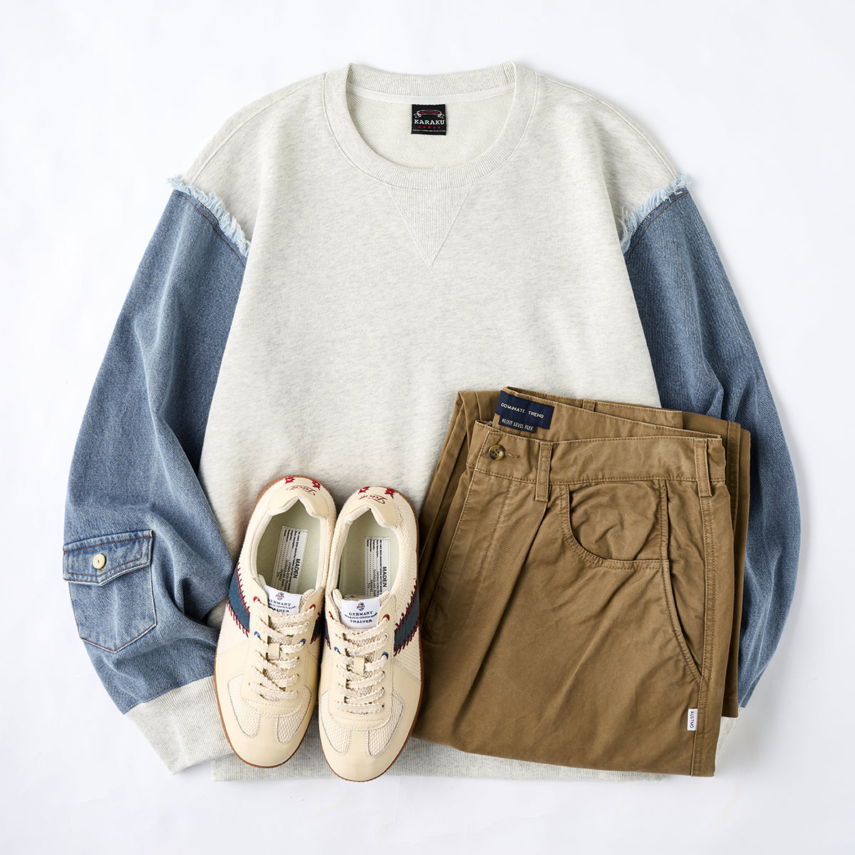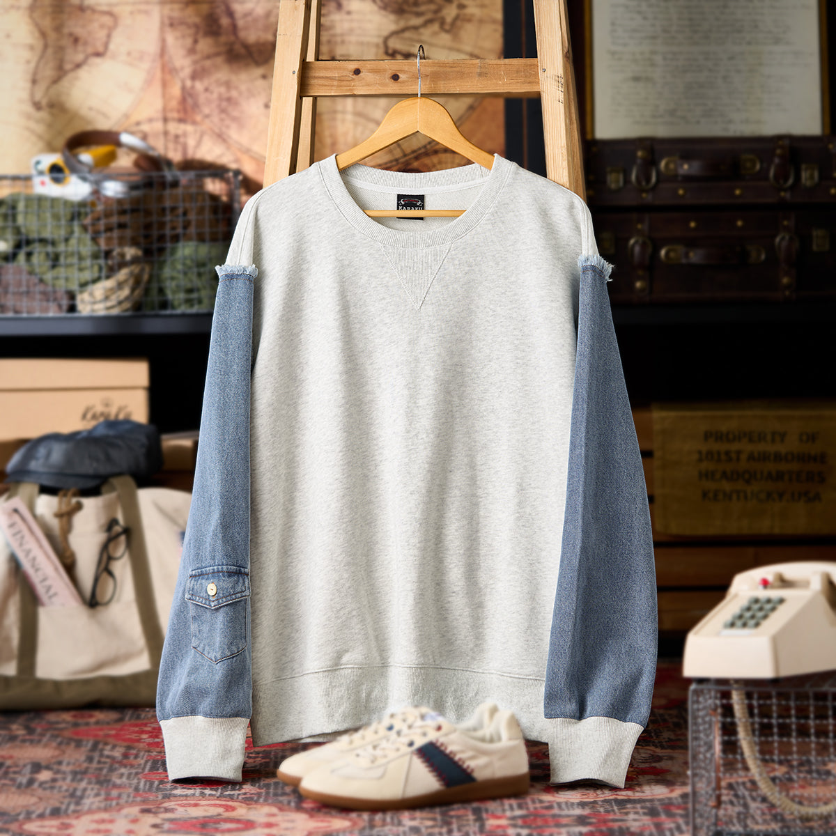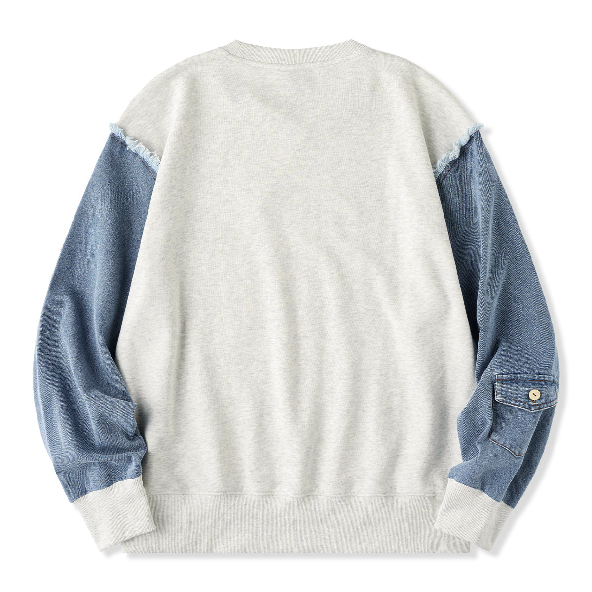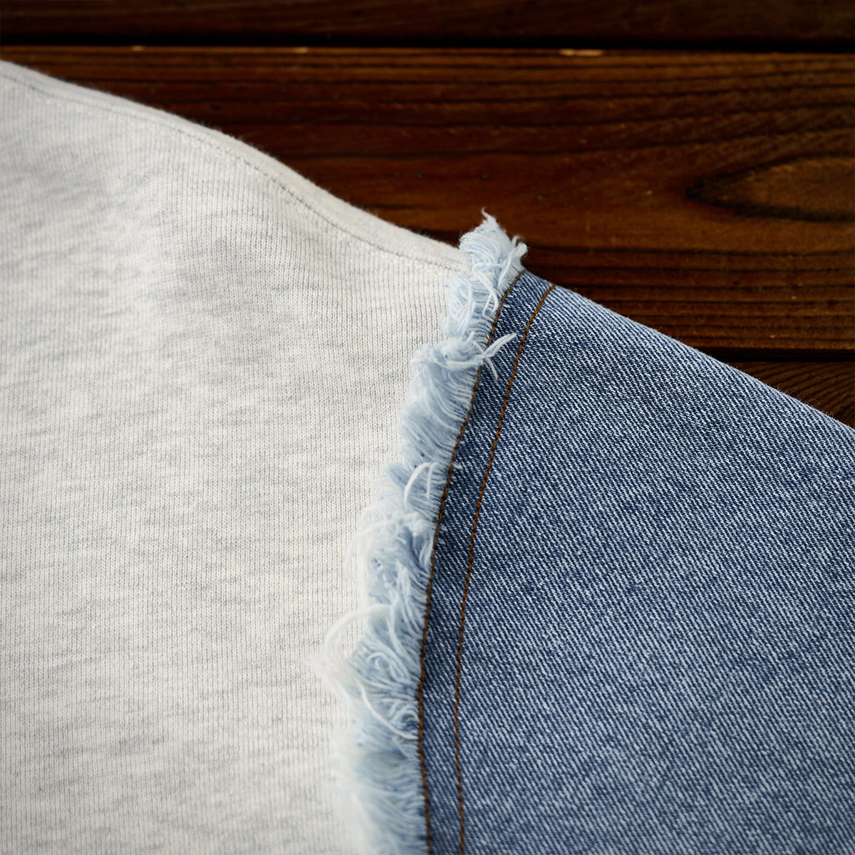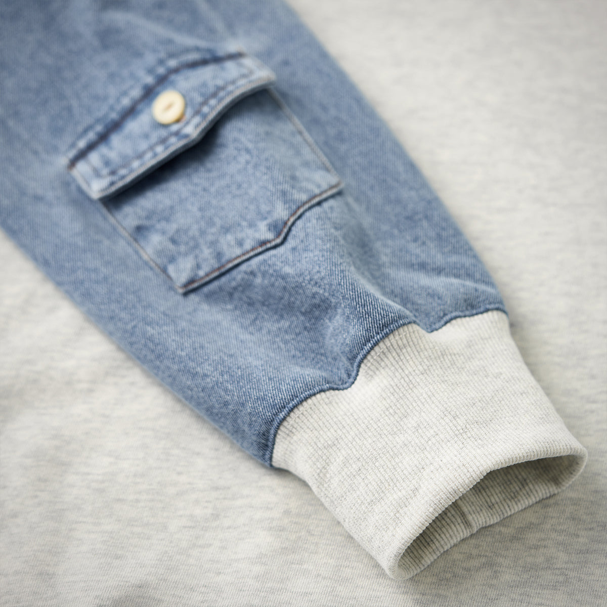【사전예약】소매 포켓 데님 배색 V거셋 스웨트셔츠