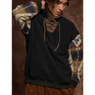 심플한 블랙 바디에 소매 부분은 나바호 패턴으로 장식되어 베이지, 브라운, 네이비, 화이트, 레드 컬러가 조화롭게 어우러져 있습니다.