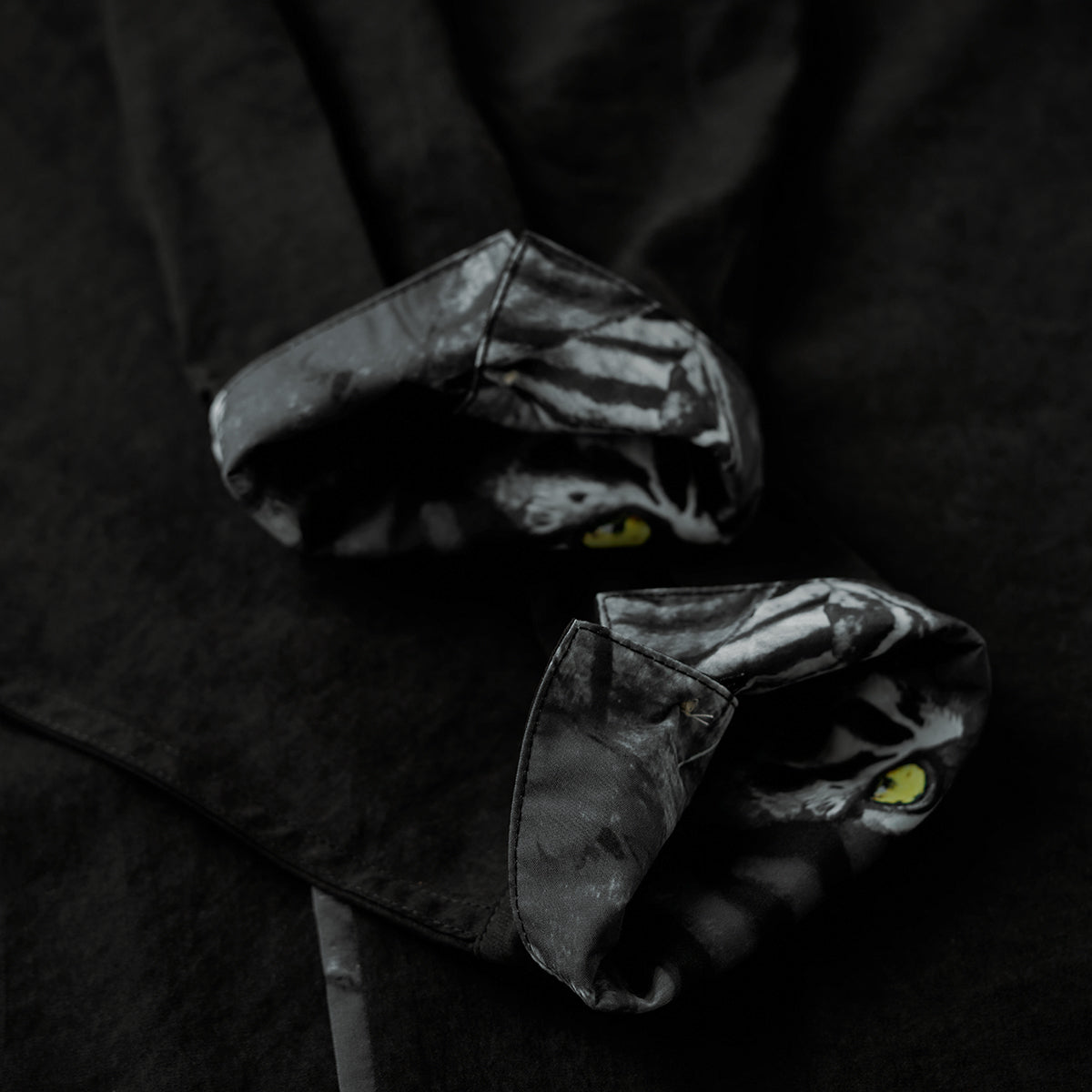 소매, 칼라, 앞단에 날카로운 눈빛의 호랑이를 생생하게 그려, 사실적이고 힘 있는 붓터치로 마치 지금이라도 움직일 듯한 존재감을 선사합니다.