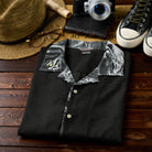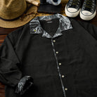 【사전예약】Karaku×川又聡「虎図」프린트 컬러 배색 오픈칼라 셔츠