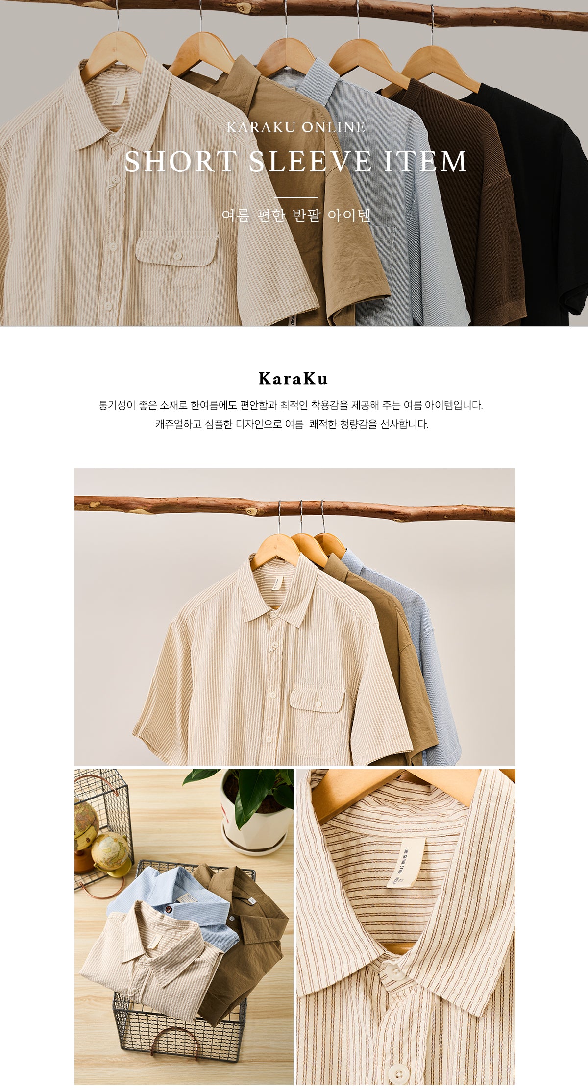 「Special Summer」시어서커 원단 멀티 스트라이프 무늬 쿠바 셔츠