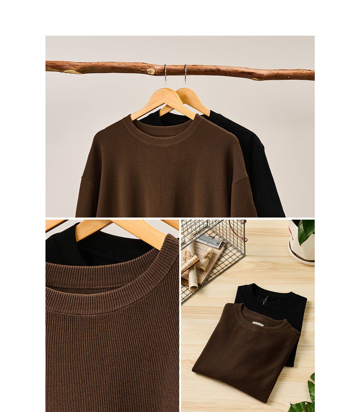 워싱가공 헤비웨이트 반팔 헨리 티셔츠