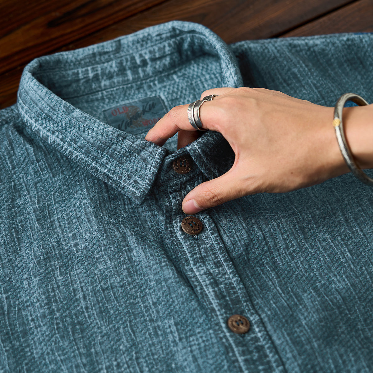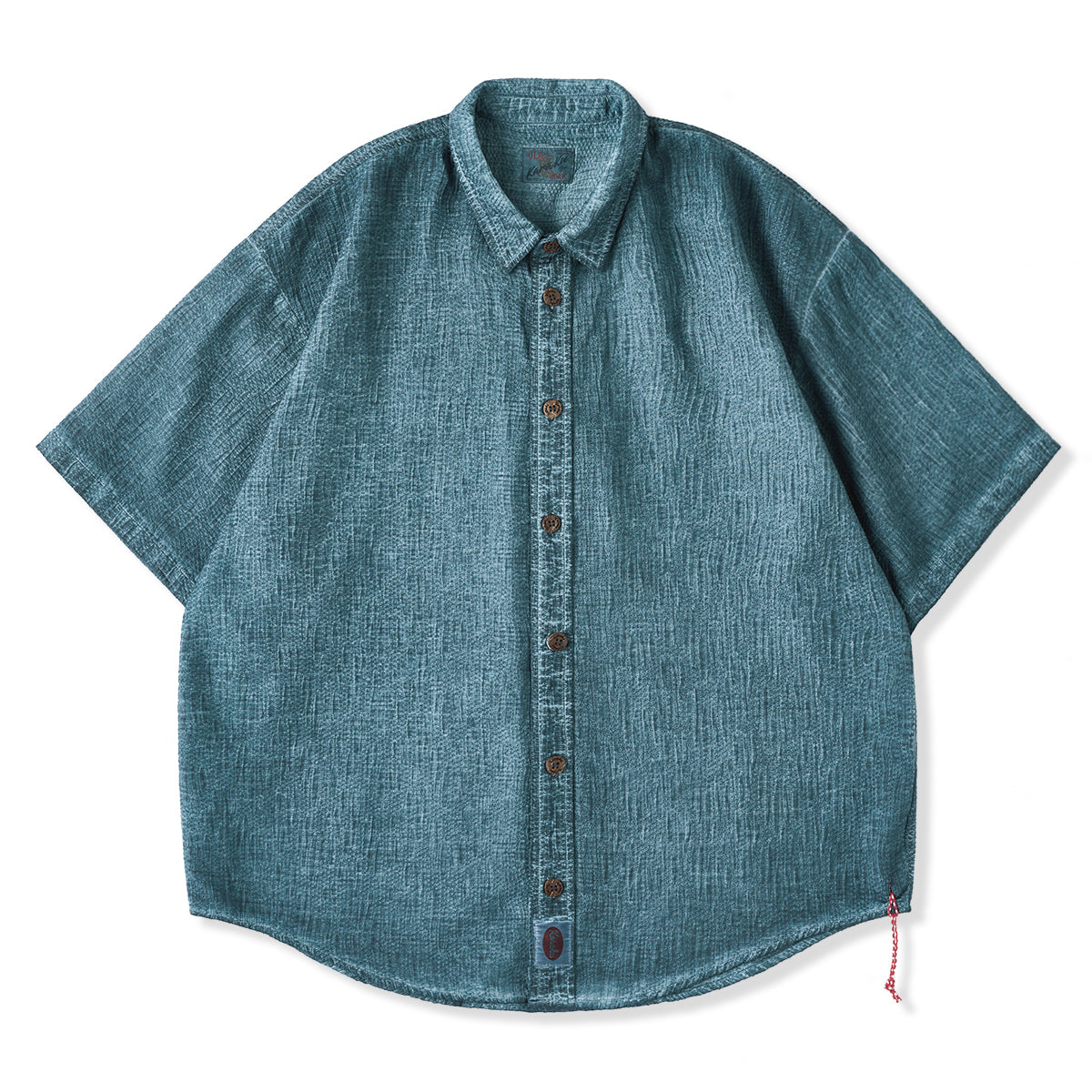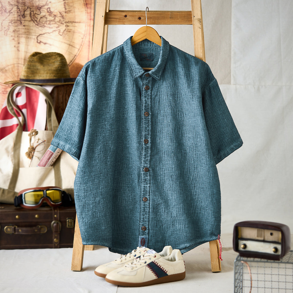 아이조메(藍染)드롭숄더 면마 쿠바 셔츠