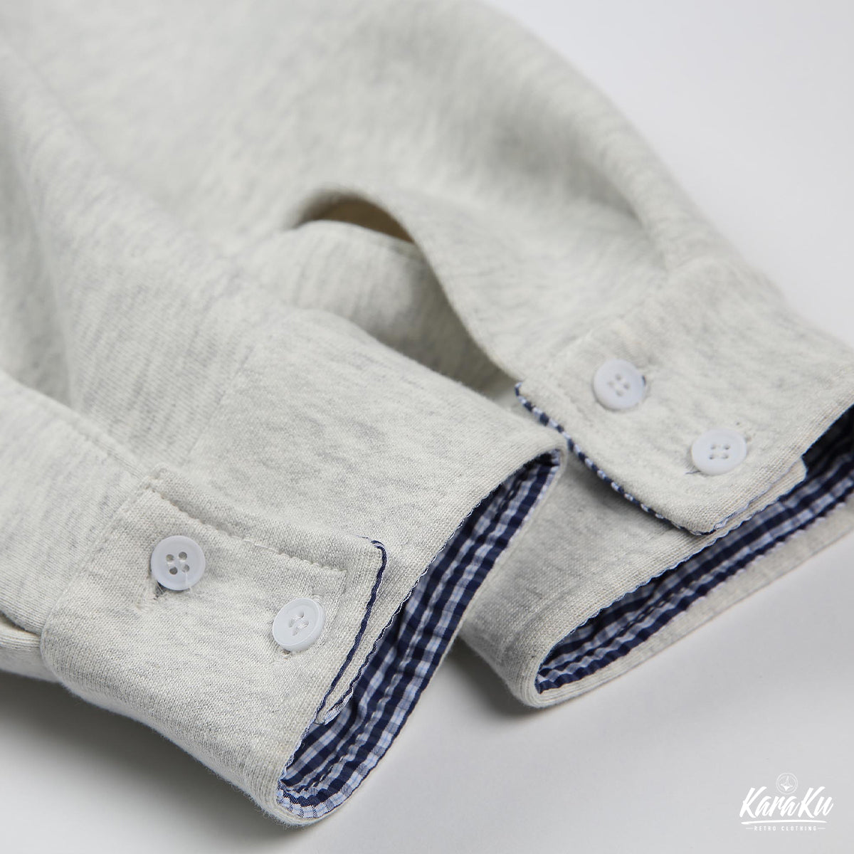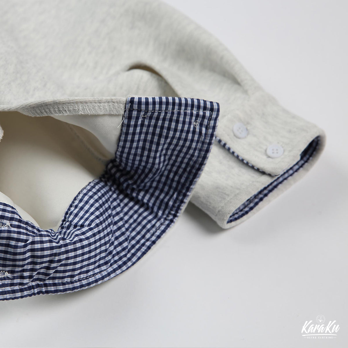 소매 끝에는 체크 패턴 배색을 더해 심플하면서도 포인트가 되는 디테일을 완성했습니다.