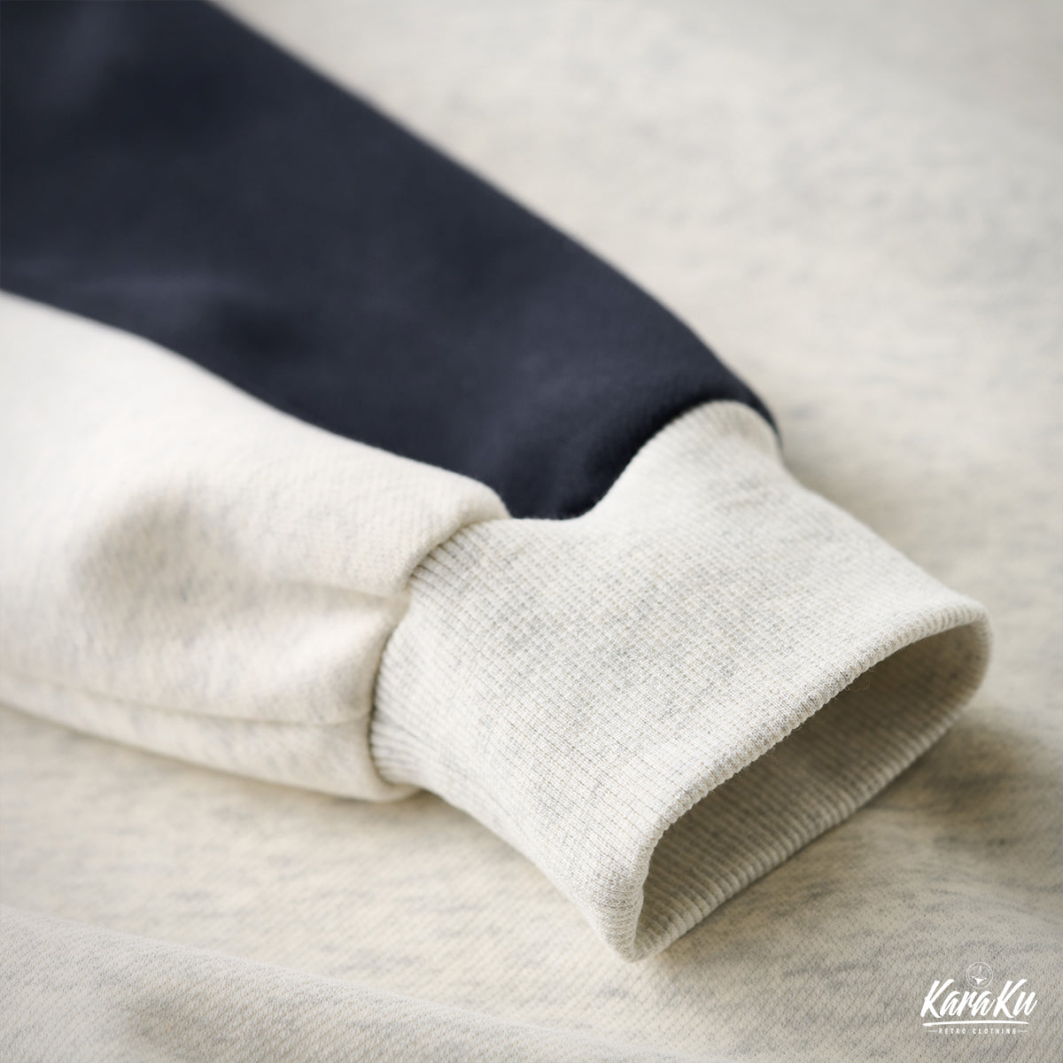 스포츠웨어 디자인에서 자주 활용되는 컬러 배색으로 레트로한 무드와 스포티한 감성을 더한 제품입니다.