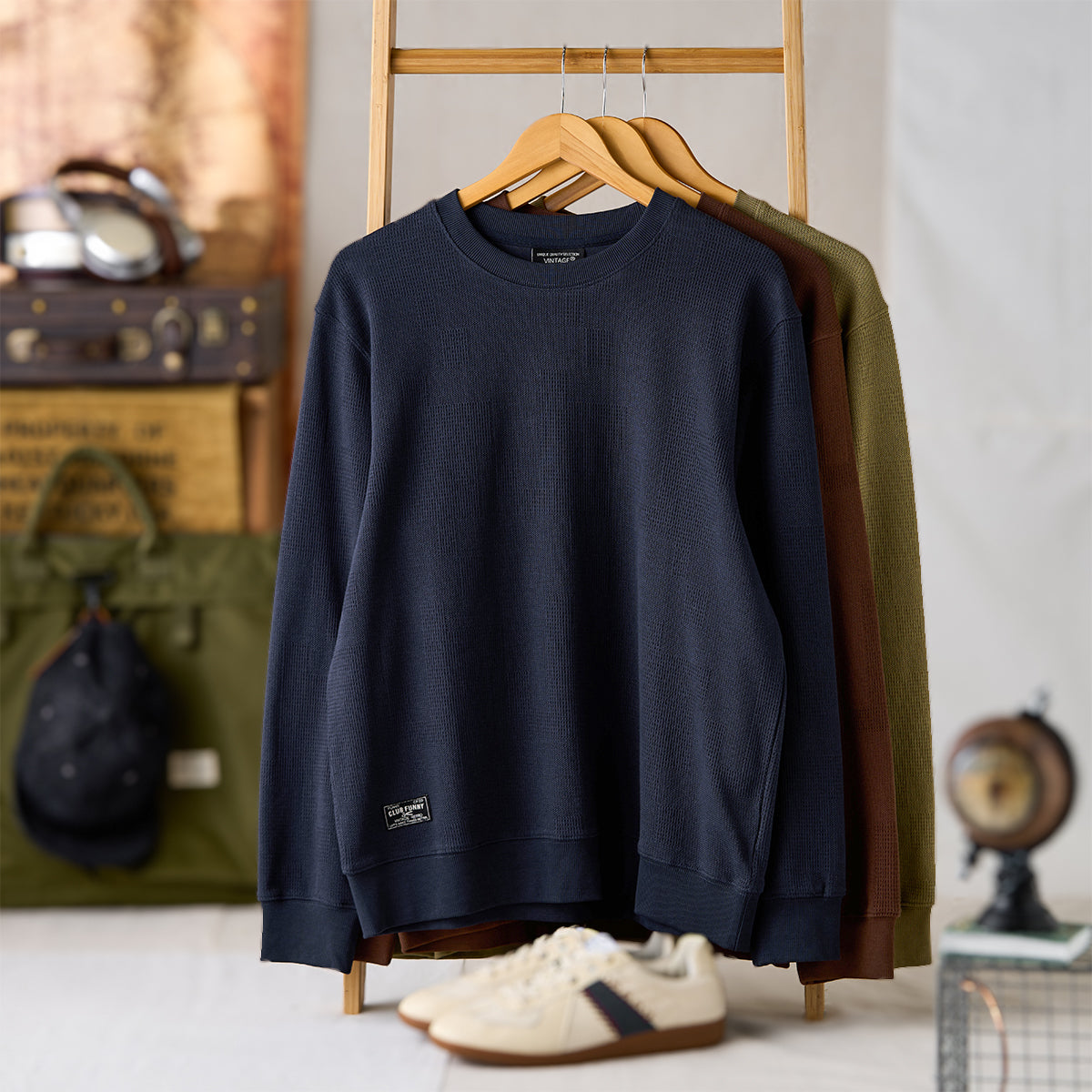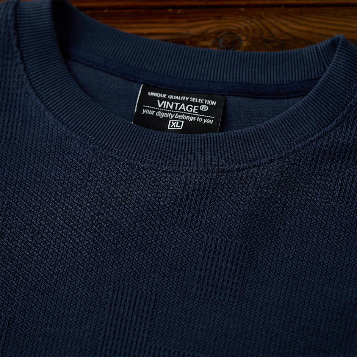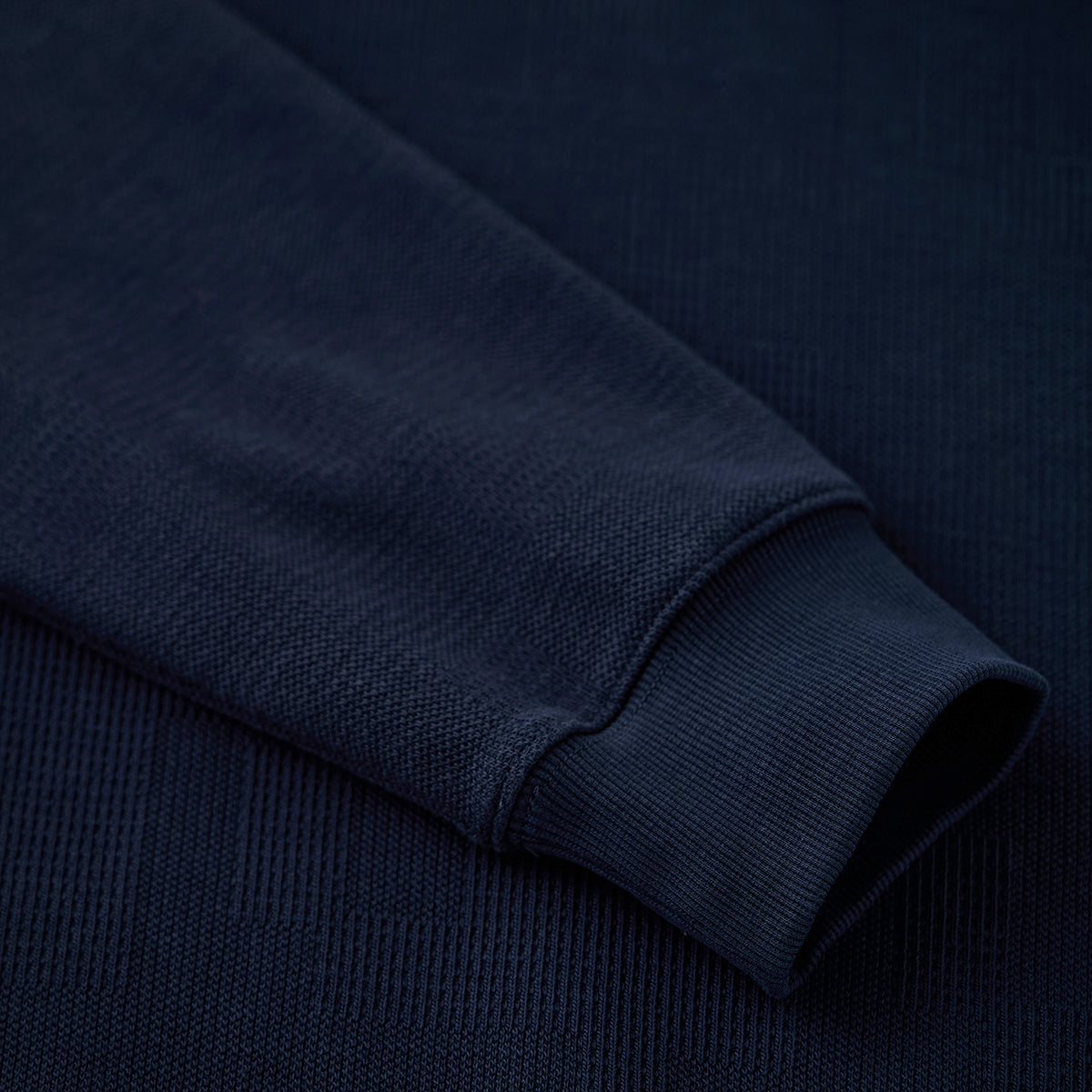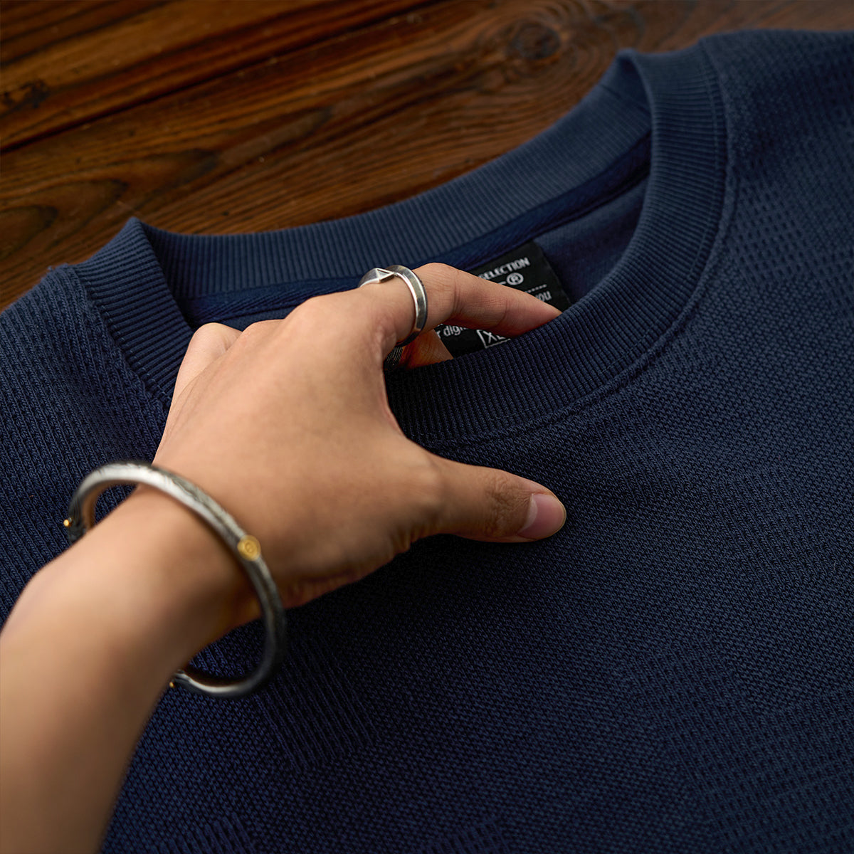 크루넥과 리브 소매·밑단으로 편안하고 깔끔한 핏을 완성하며, 심플한 디자인과 입체감 있는 짜임 원단이 고급스러운 분위기를 더하는 스웨트셔츠.