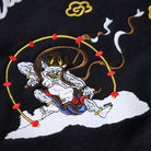 뒷면에 풍신과 뇌신의 표정, 근육, 의복 움직임을 정교하게 자수로 표현했으며, 입체감 있는 디테일과 구름·금색·검정 장식으로 리듬감을 더했습니다.