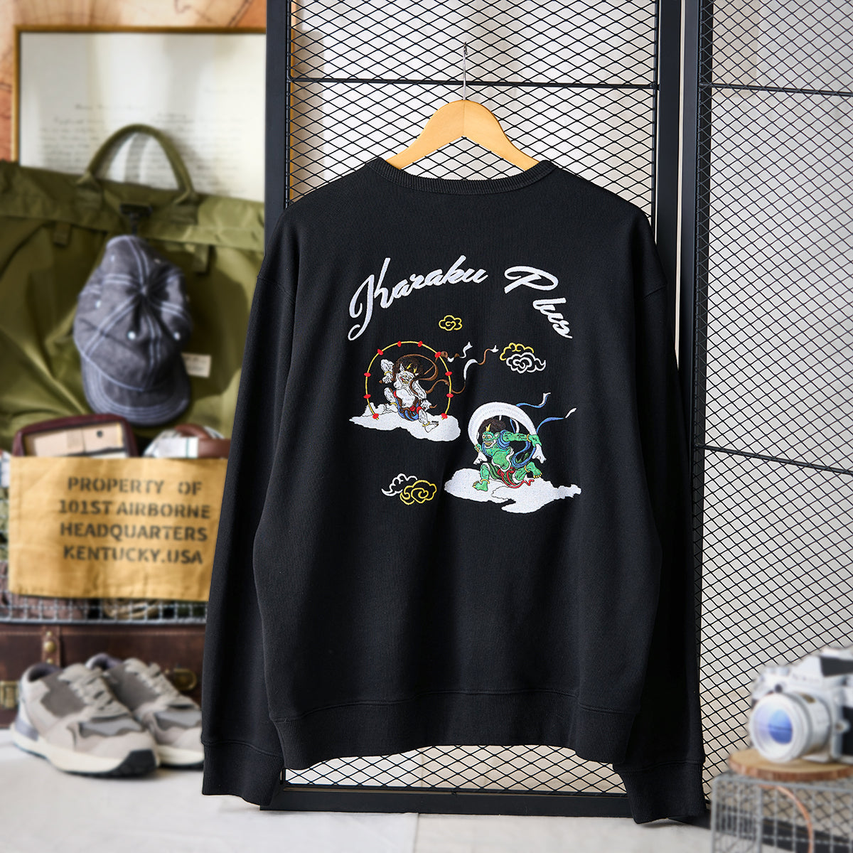 俵屋宗達「풍신뇌신도」ⅹ「KaraKu」자수 로고 코튼 스웨트셔츠