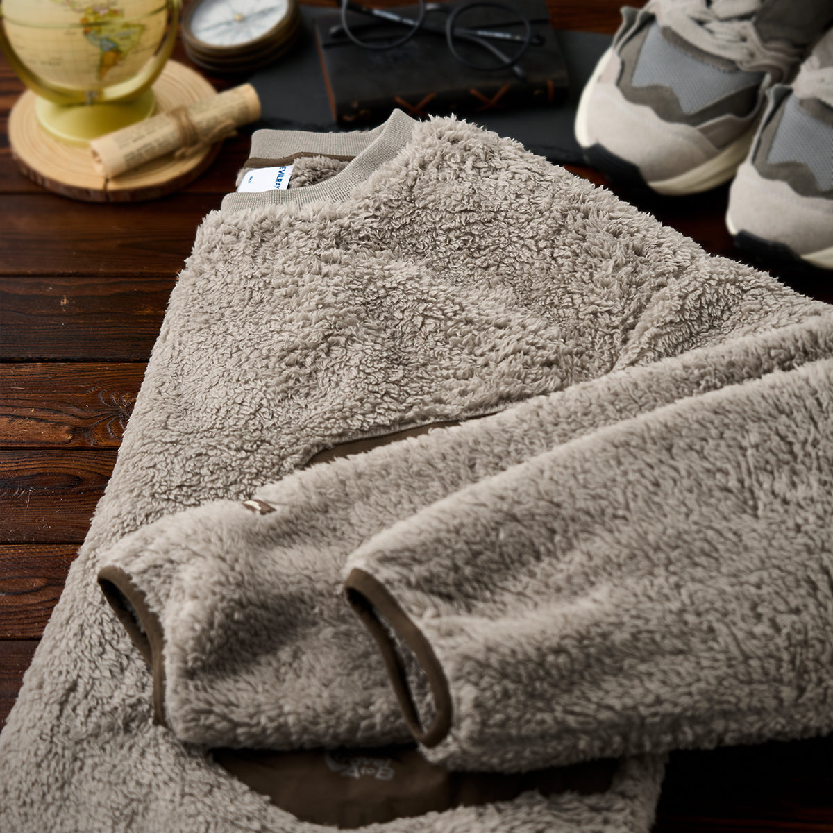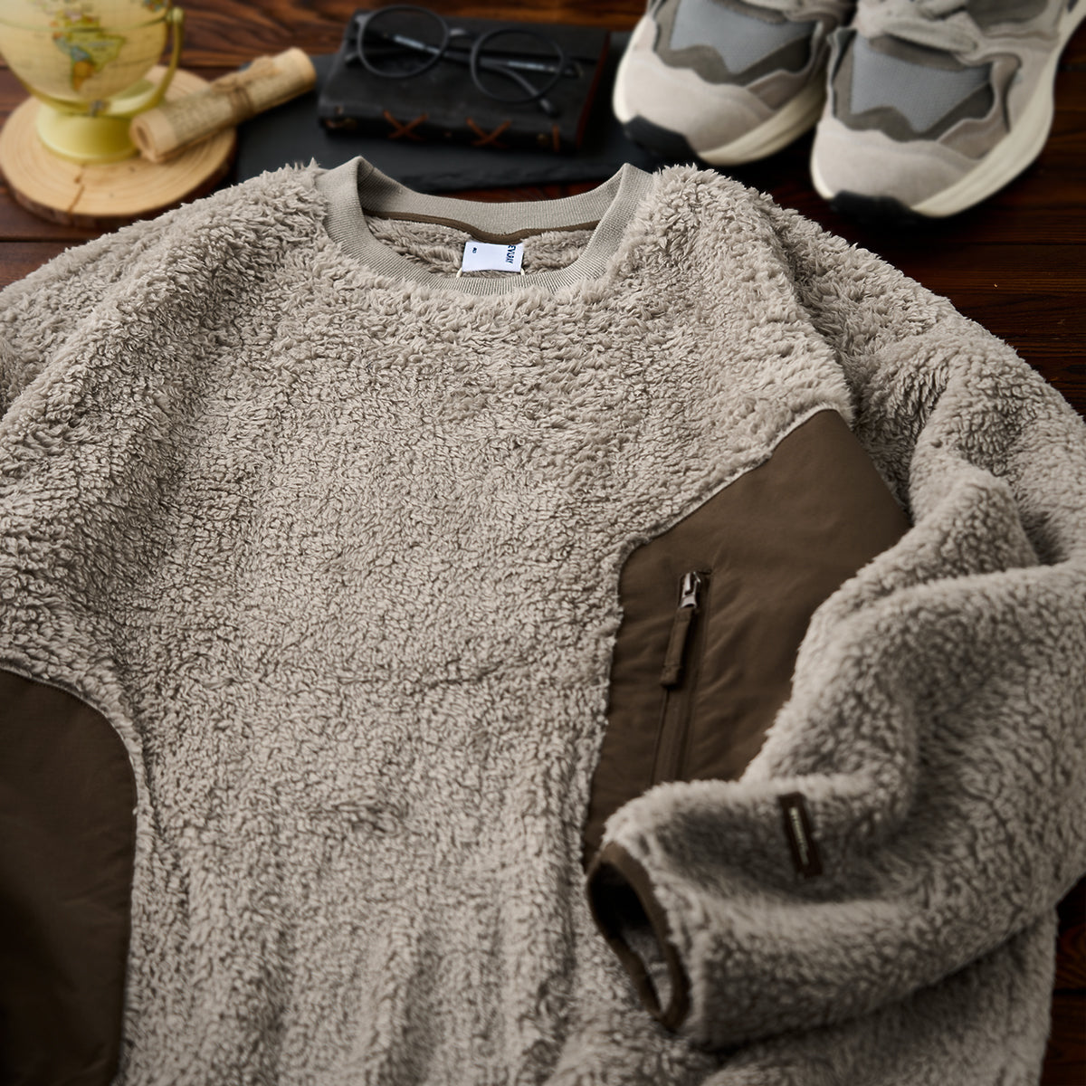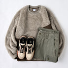 사선 지퍼 포켓과 부드러운 보아 소재, 차분한 컬러 조합이 돋보이는 스웨트입니다.