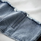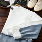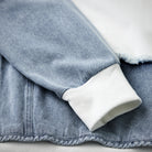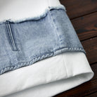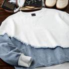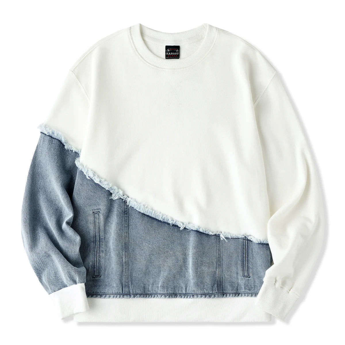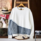 재구성 워시드 데님 배색 V 가셋 코튼 크루넥 스웨트셔츠