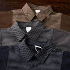 섬세한 체크 패턴과 무지 배색이 돋보이는 디자인 워크 셔츠로, 적당한 여유 있는 실루엣과 3가지 컬러 구성으로 다양한 스타일과 시즌에 활용 가능한 아이템입니다.
