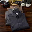 3컬러 무지 배색 체크 패턴 워크 긴팔 셔츠