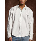 빨간 매듭「골프 스윙 목이 떨어진 해골」자수 옥스포드 긴팔 셔츠