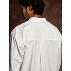왼쪽 가슴에는 '골프 스윙 목이 떨어진 해골' 자수 디자인이 되어 있습니다. 해골은 골프 클럽을 잡고 스윙을 하고 있는 모습이 그려져 스윙의 폼과 움직임을 포착하고 있습니다. 해골의 목이 몸에서 떨어진 상태로 그려져 있으며, 다크하고 유머러스한 요소가 더했습니다. 밑단의 빨간 매듭이 장난기가 넘치면서 독특한 디자인이 됩니다. 밑단은 앞뒤 길이가 다른 헴라인이 특징으로 레이어드감과 범용성, 캐주얼한 스타일링을 연출하고 있습니다.