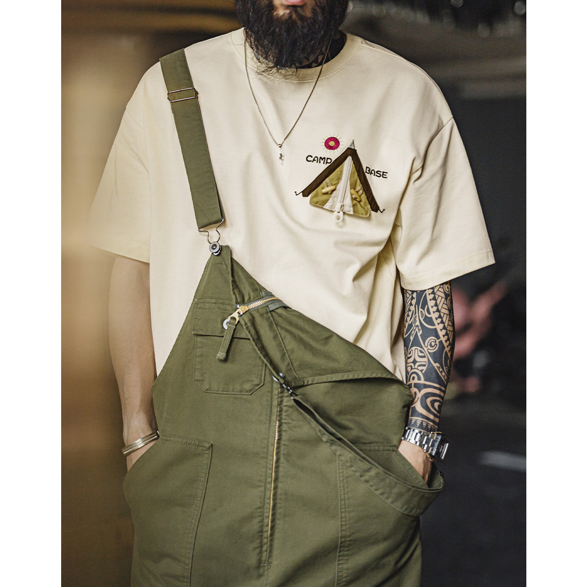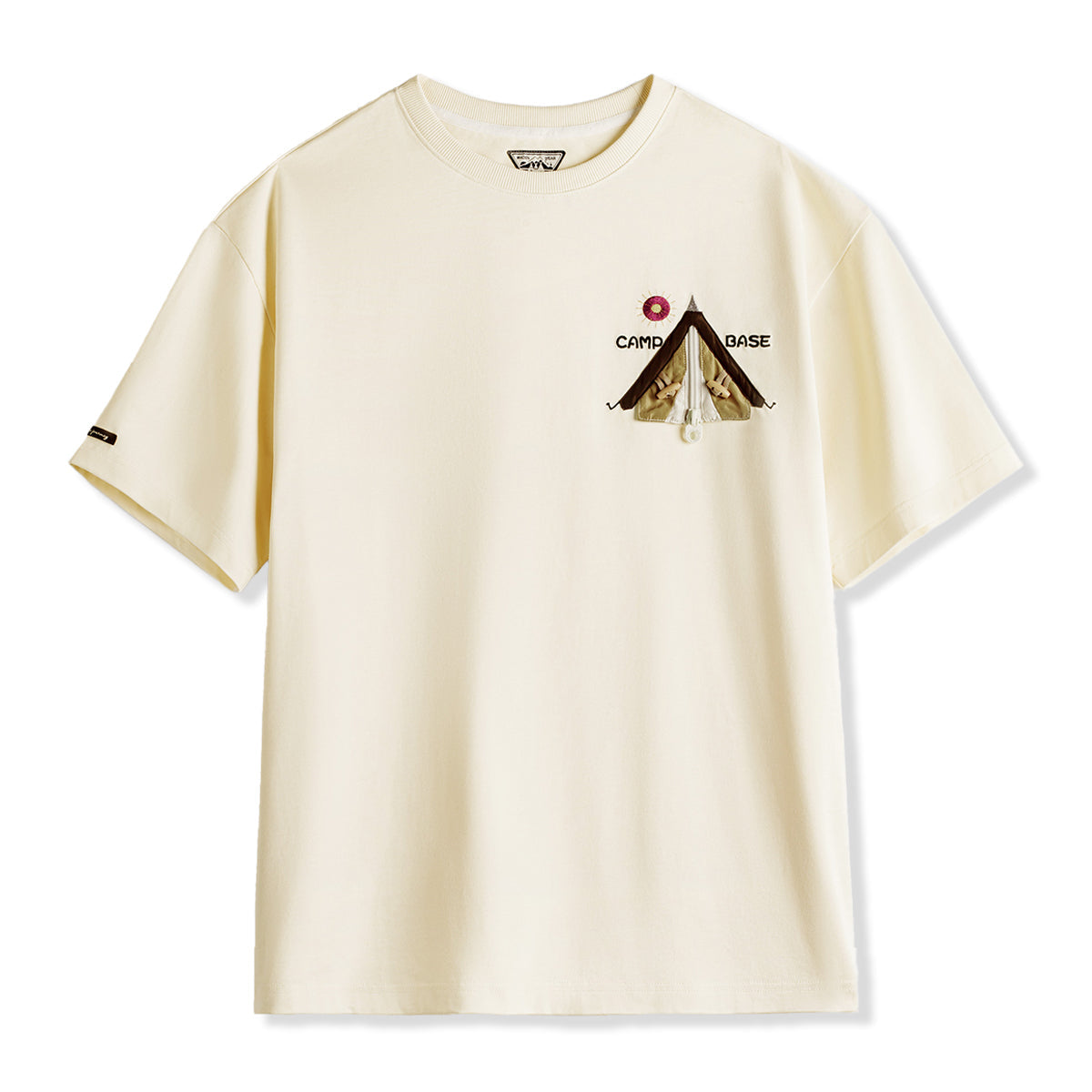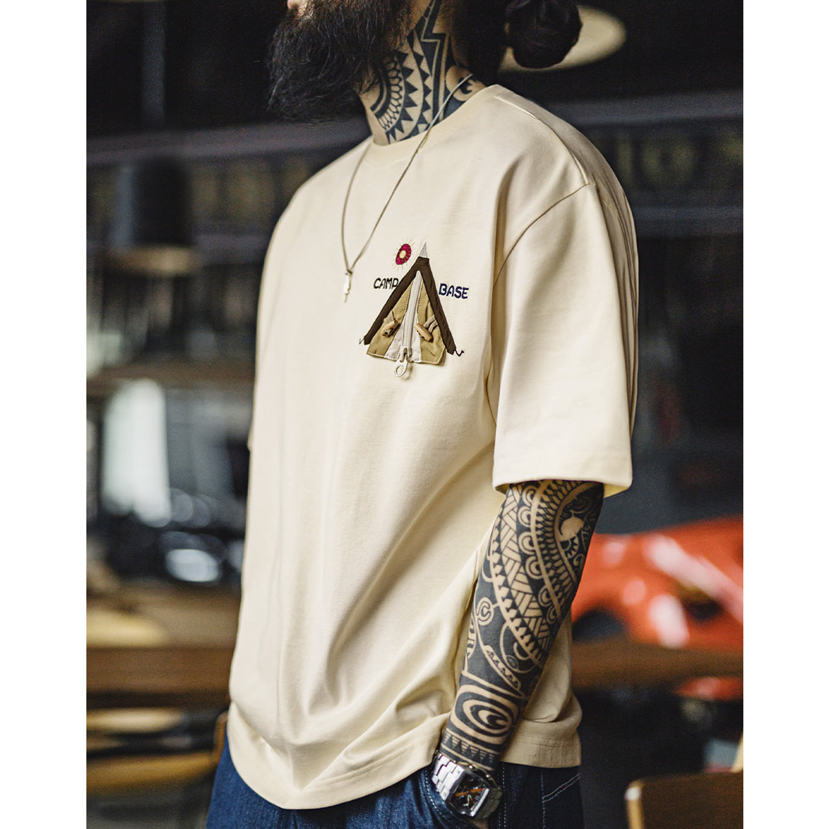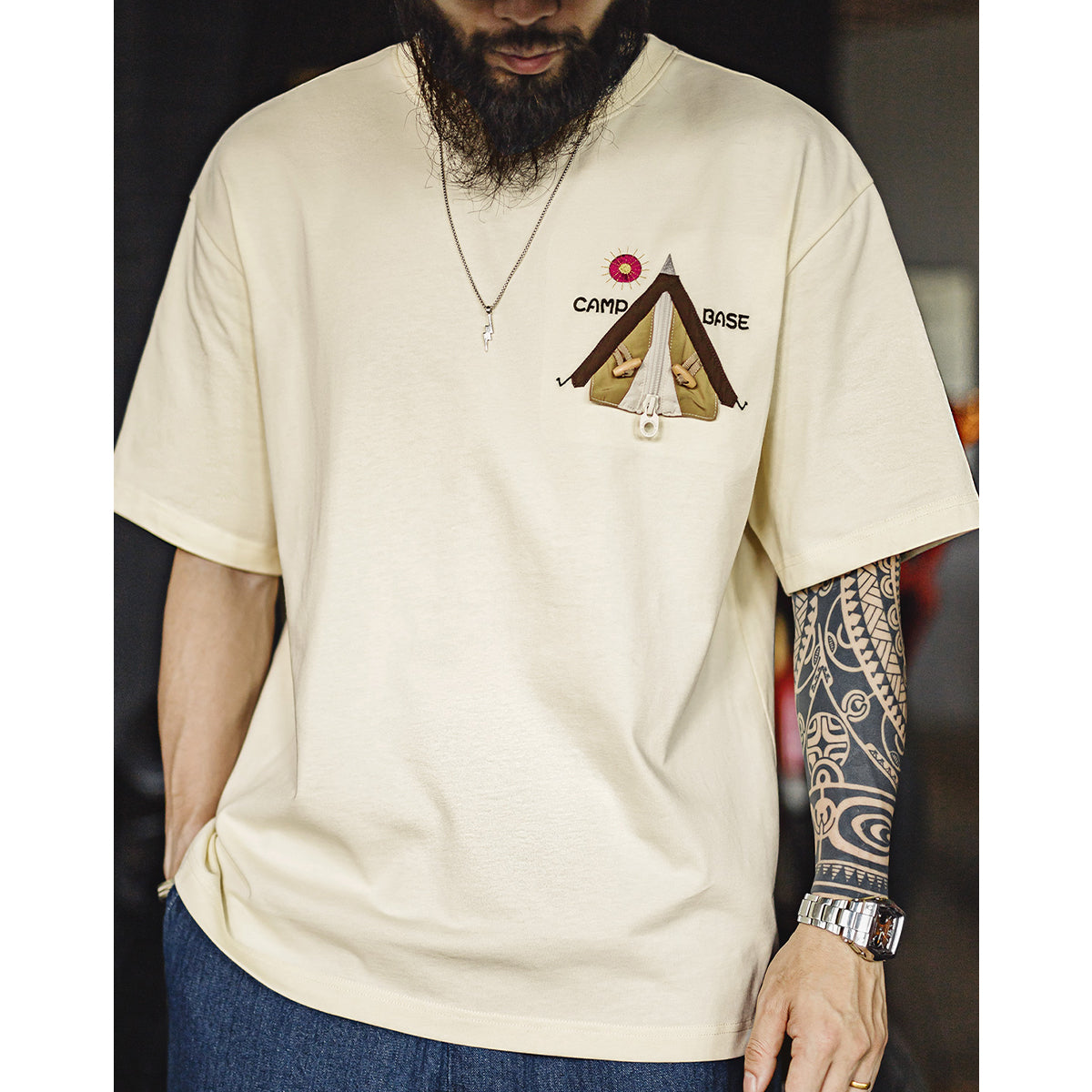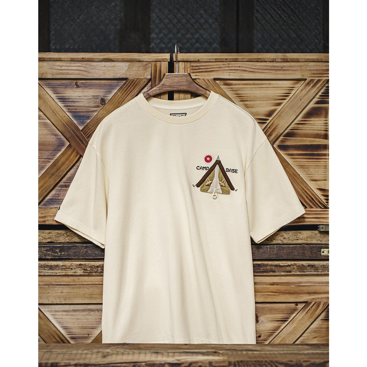 「CAMP BASE・지퍼 텐트」 자수 헤비웨이트 코튼 티셔츠