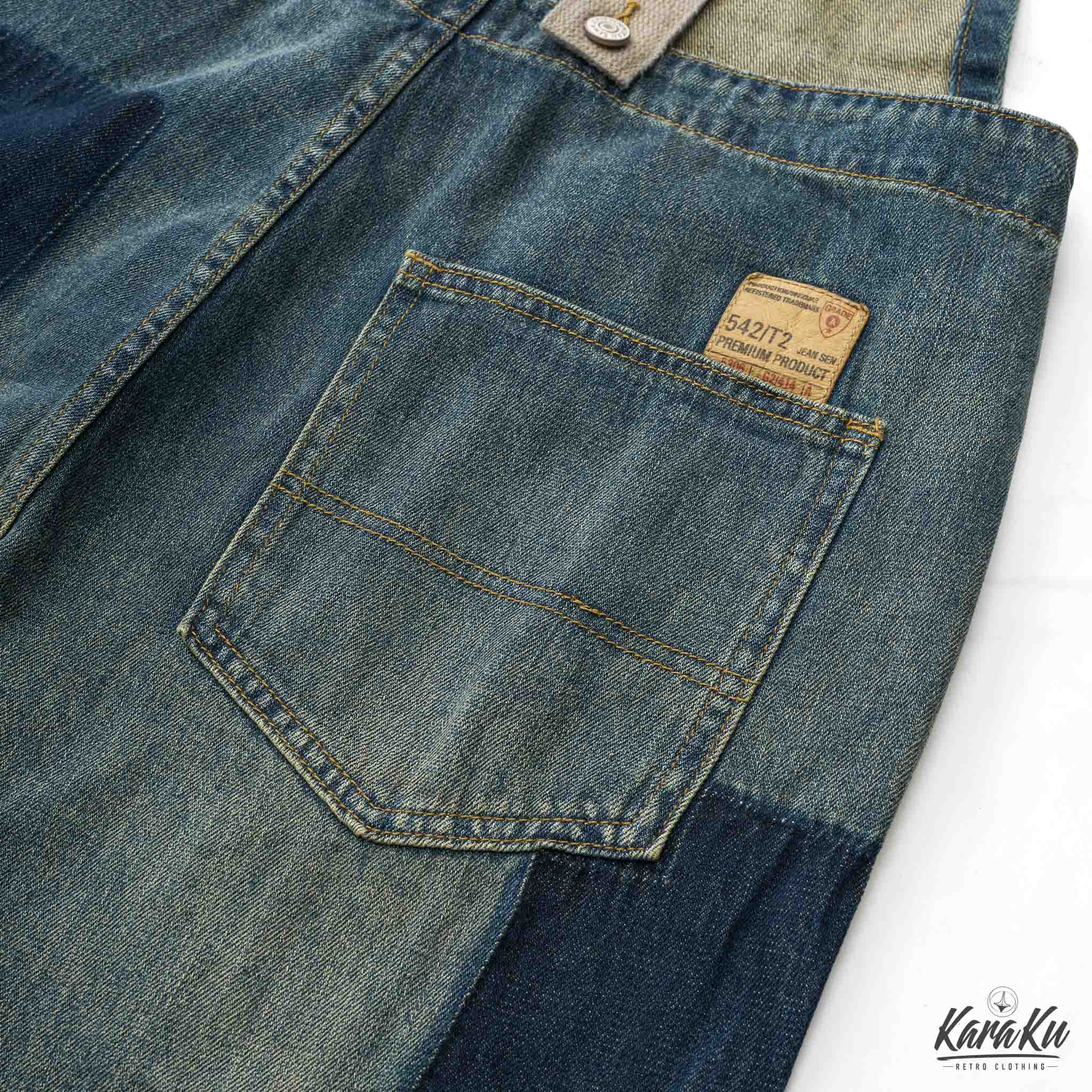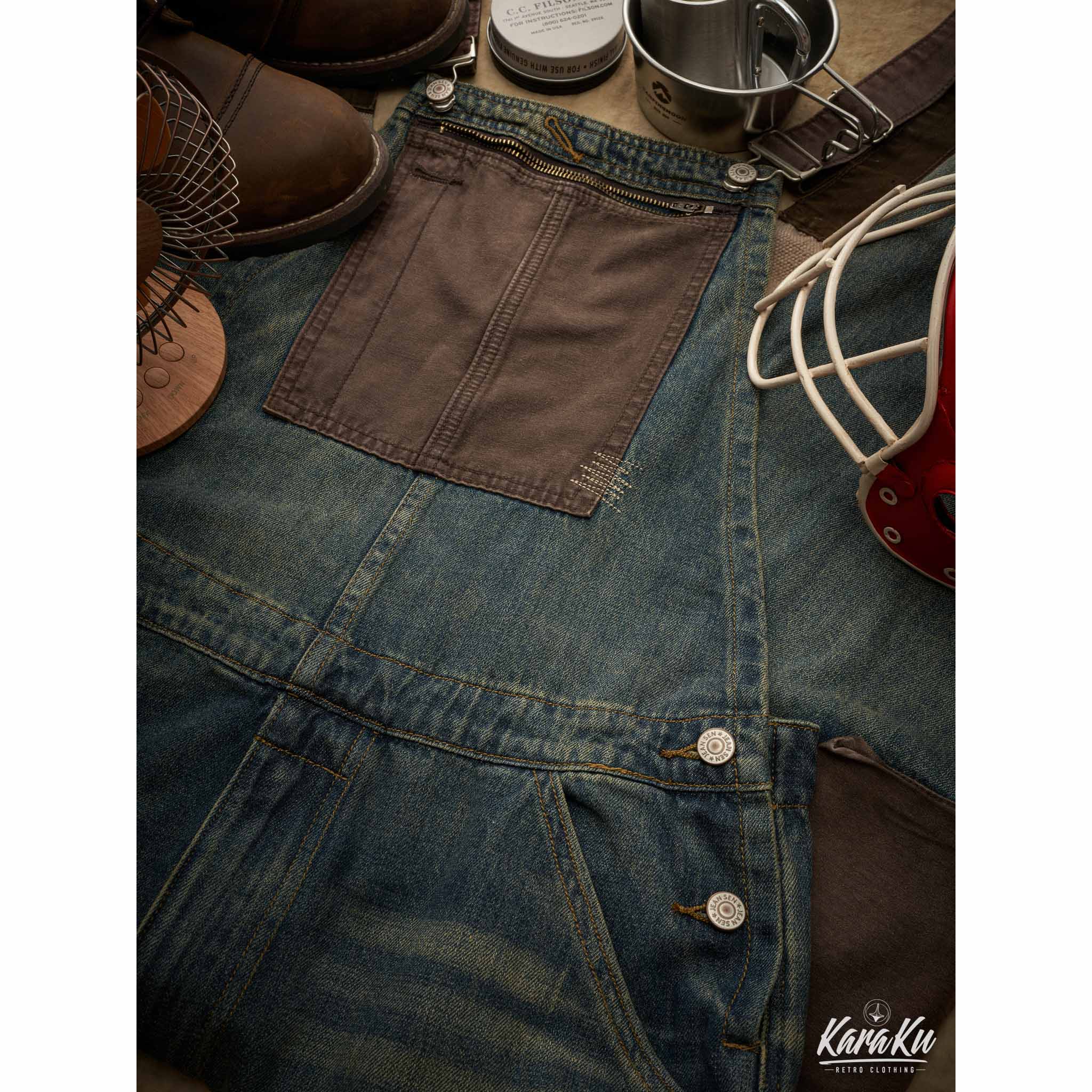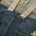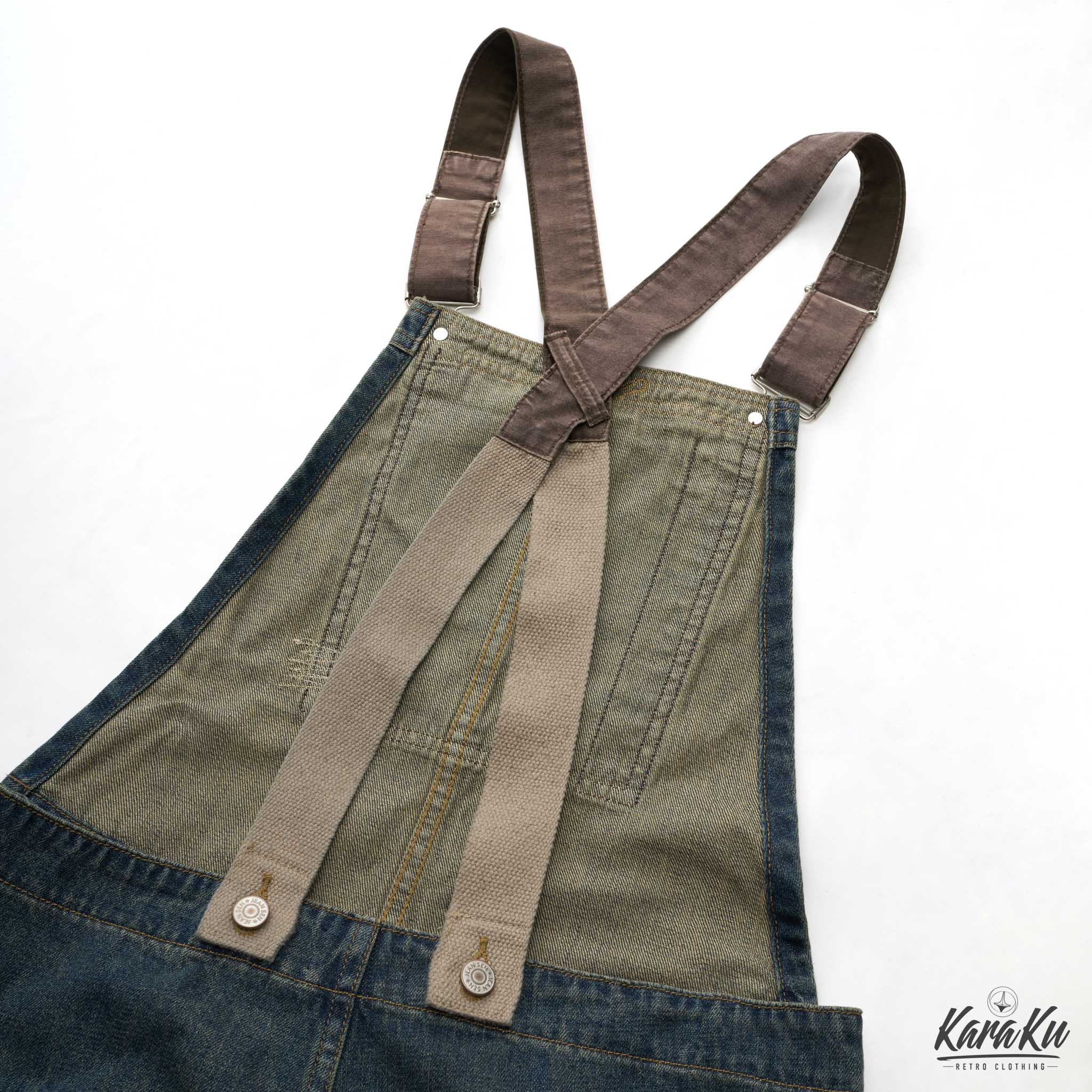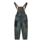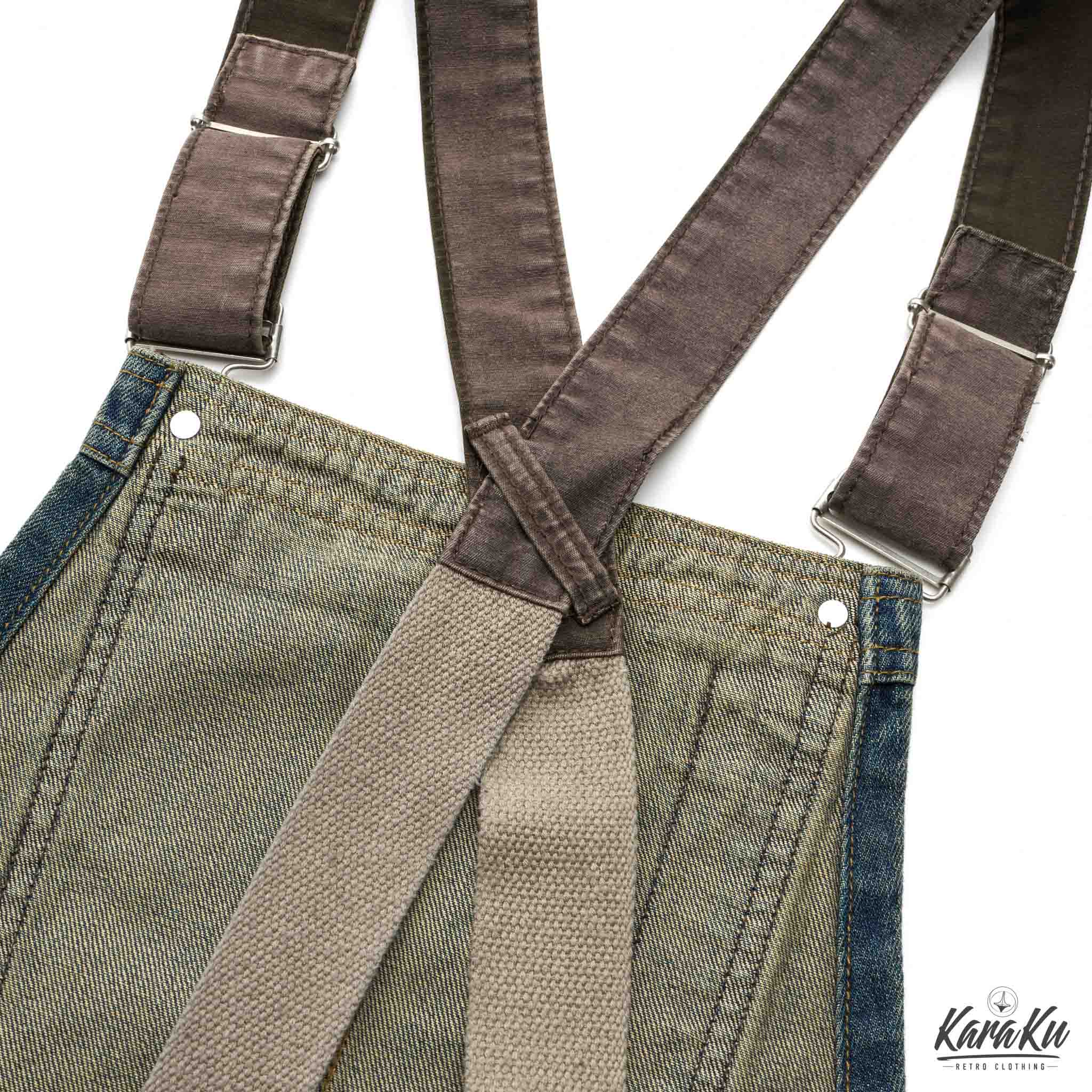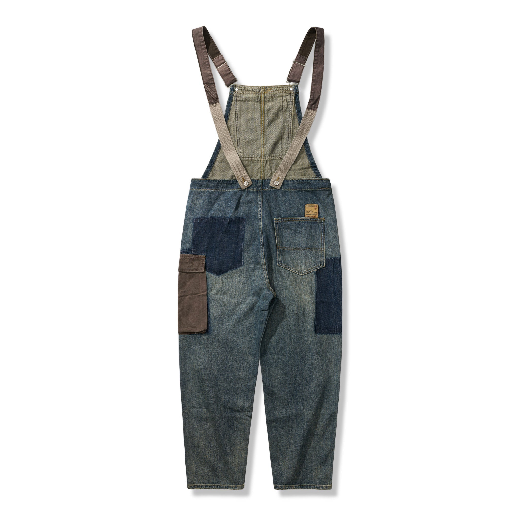 데미지 가공 배색 포켓 콤비 멜빵 바지