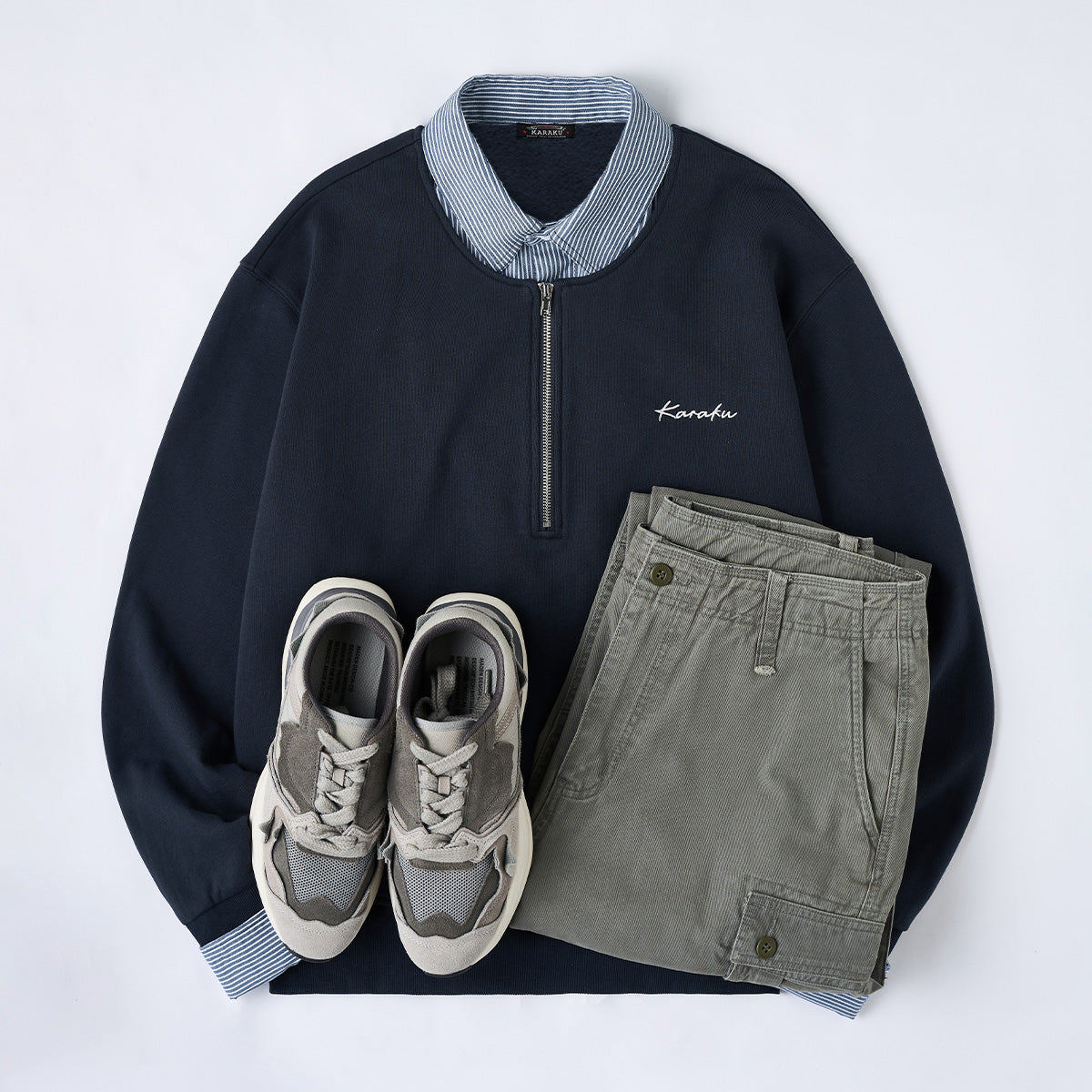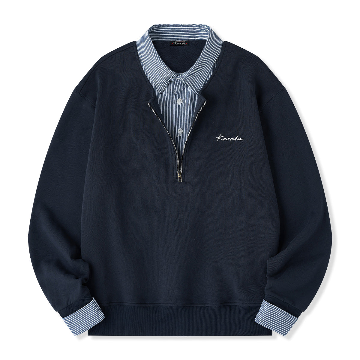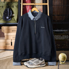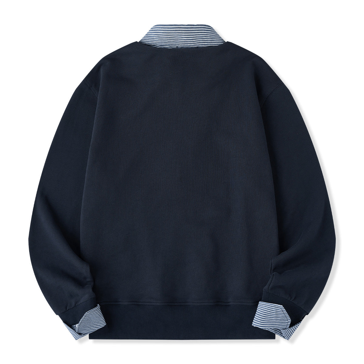 【사전예약】페이크 레이어드 스트라이프 셔츠 & 하프 집업 풀오버 스웨트셔츠