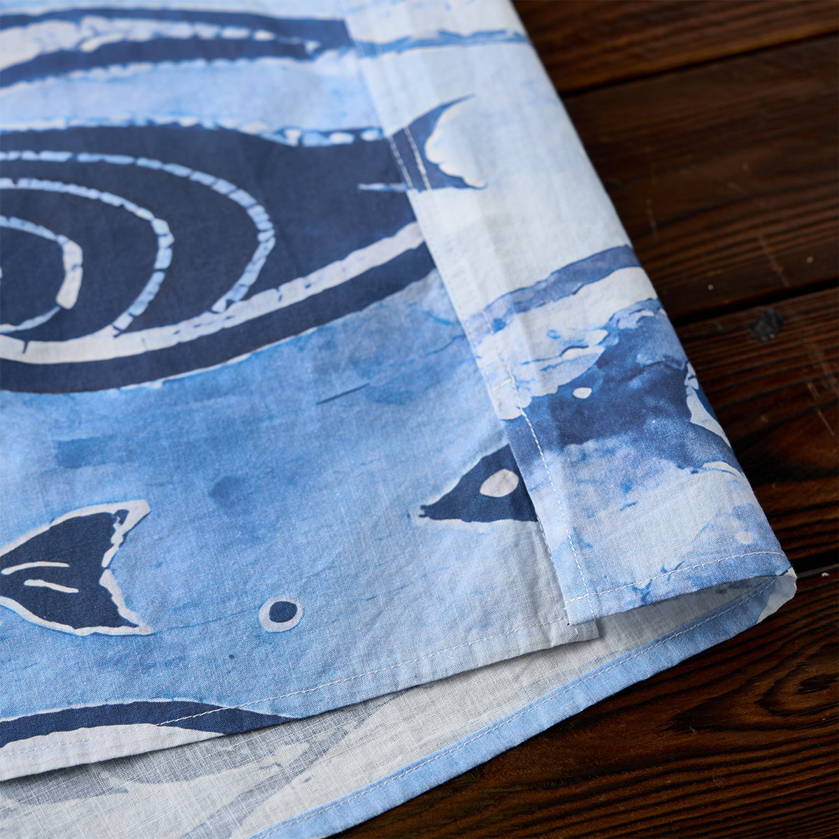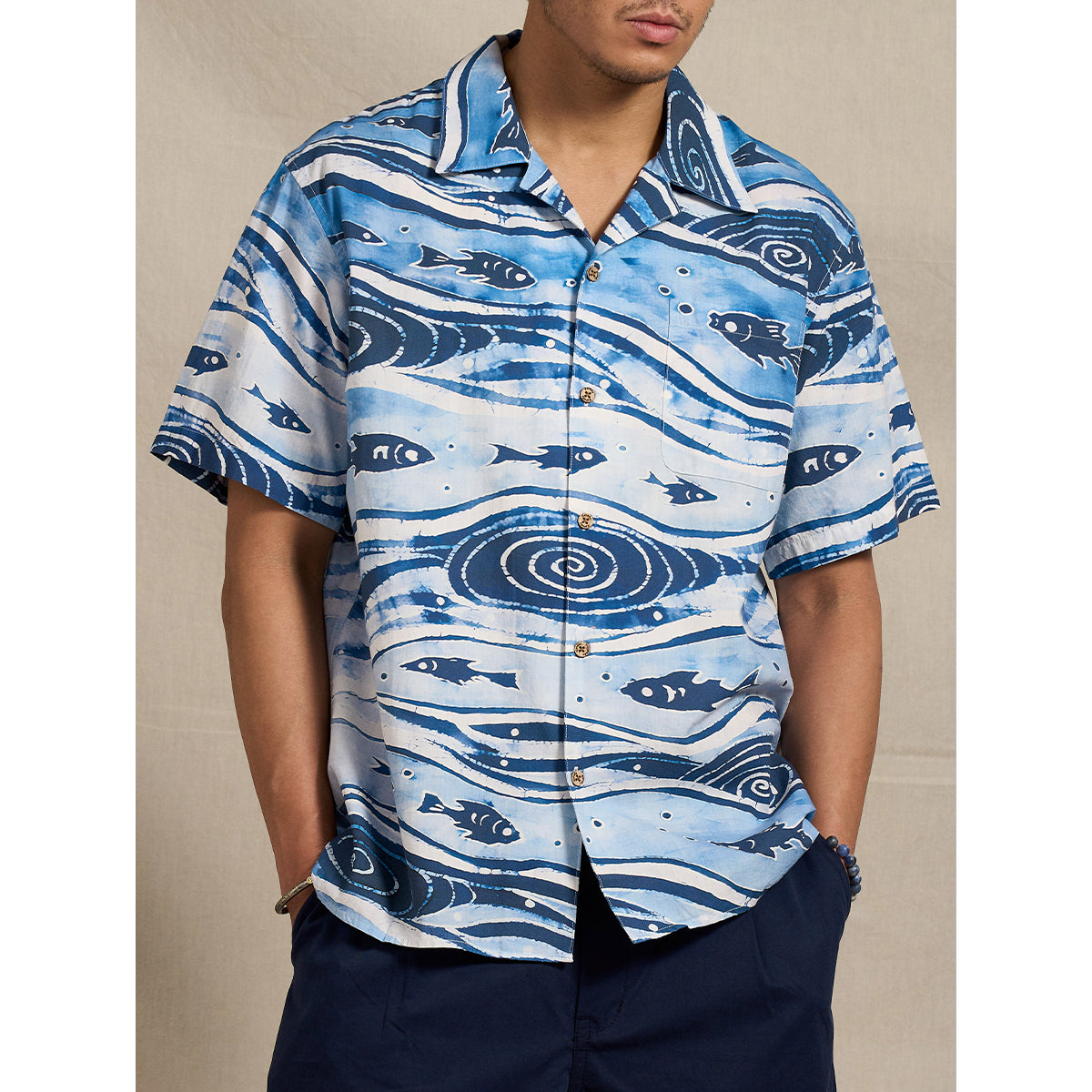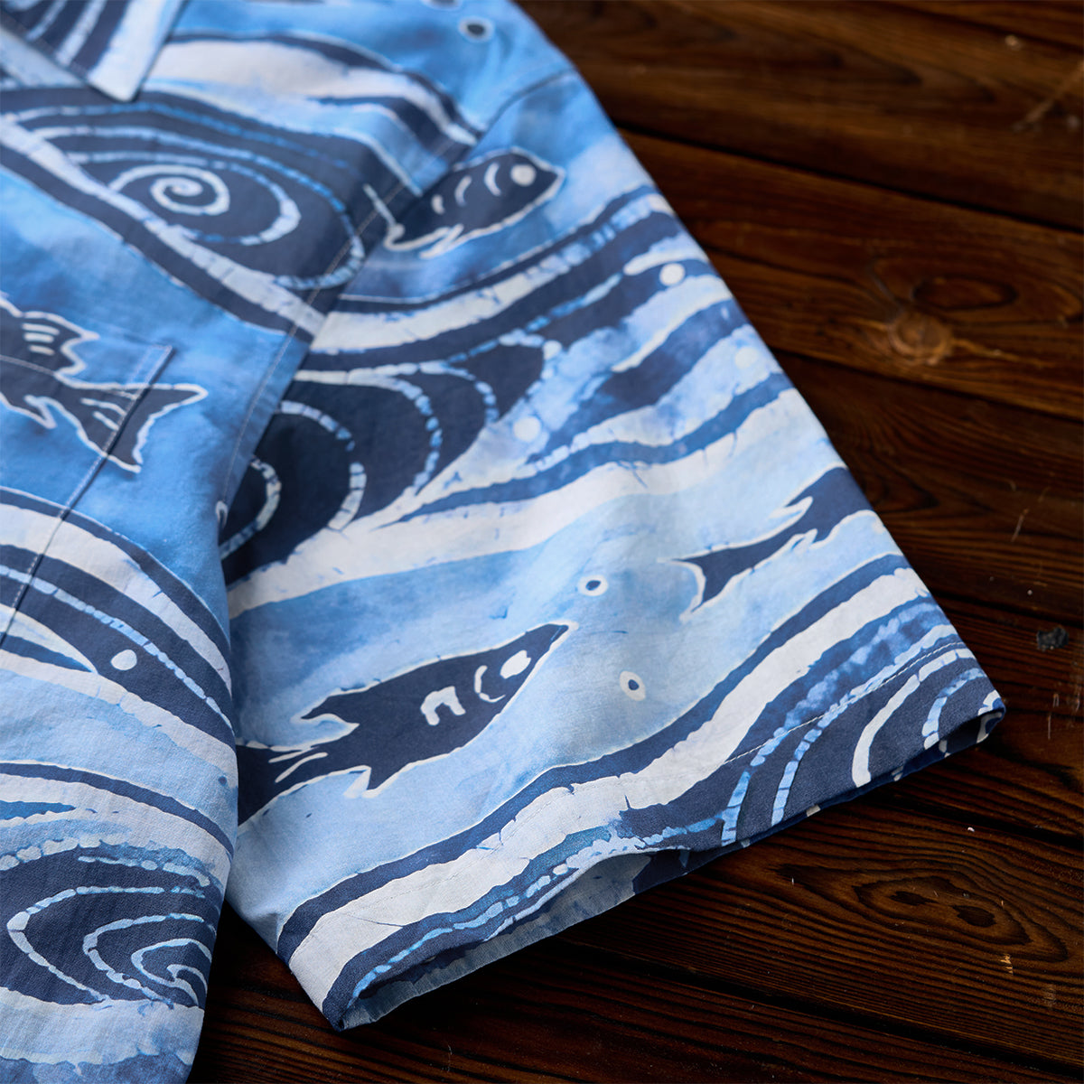 「소용돌이치는 바다 속을 유영하는 회유어 떼」코튼 알로하 셔츠